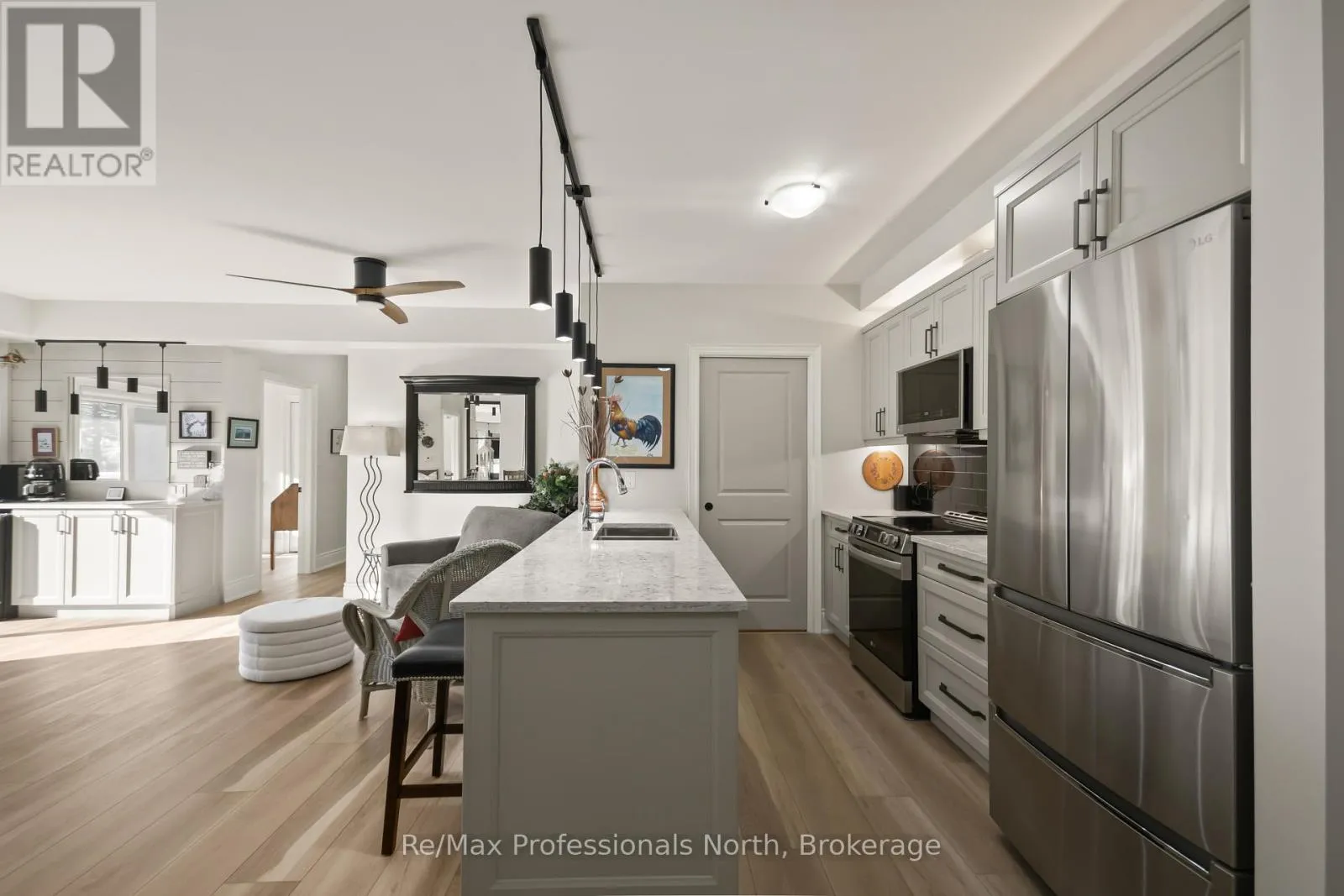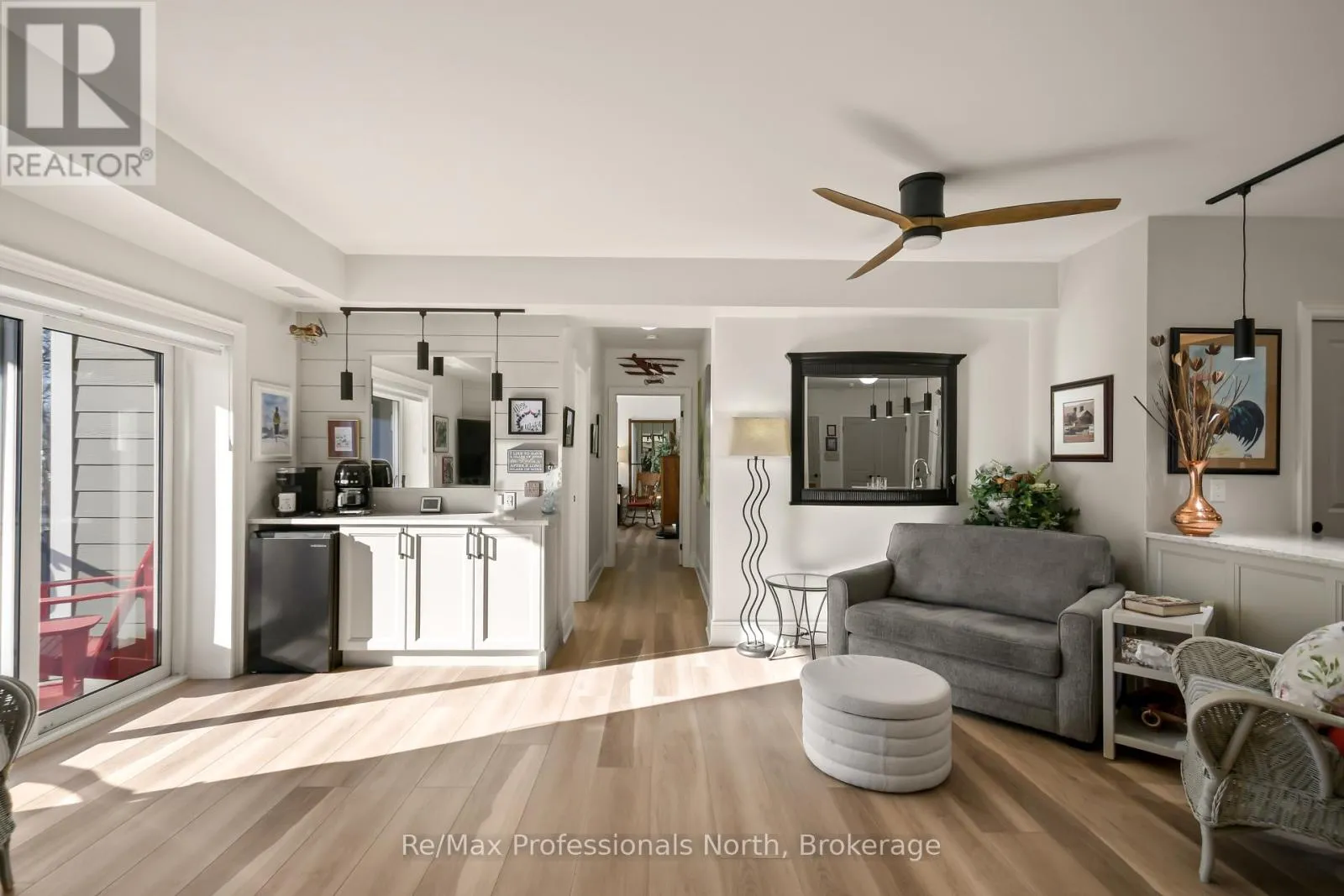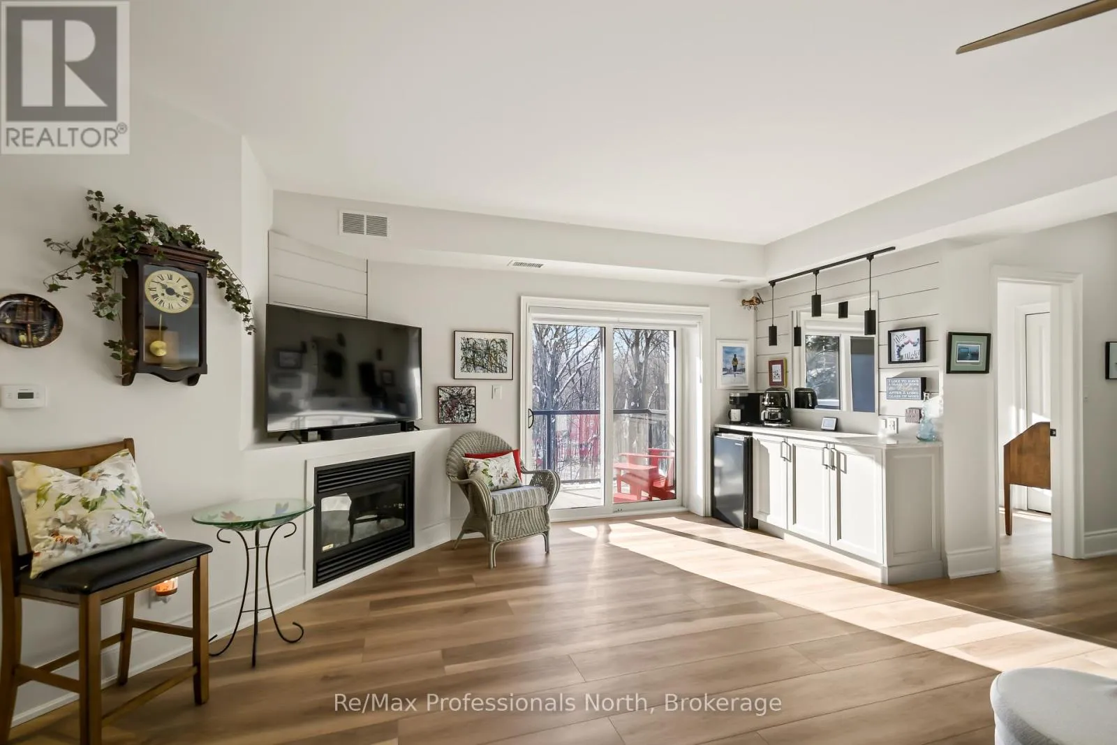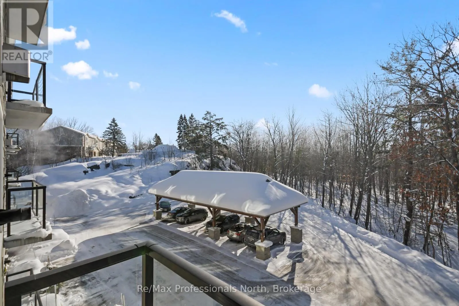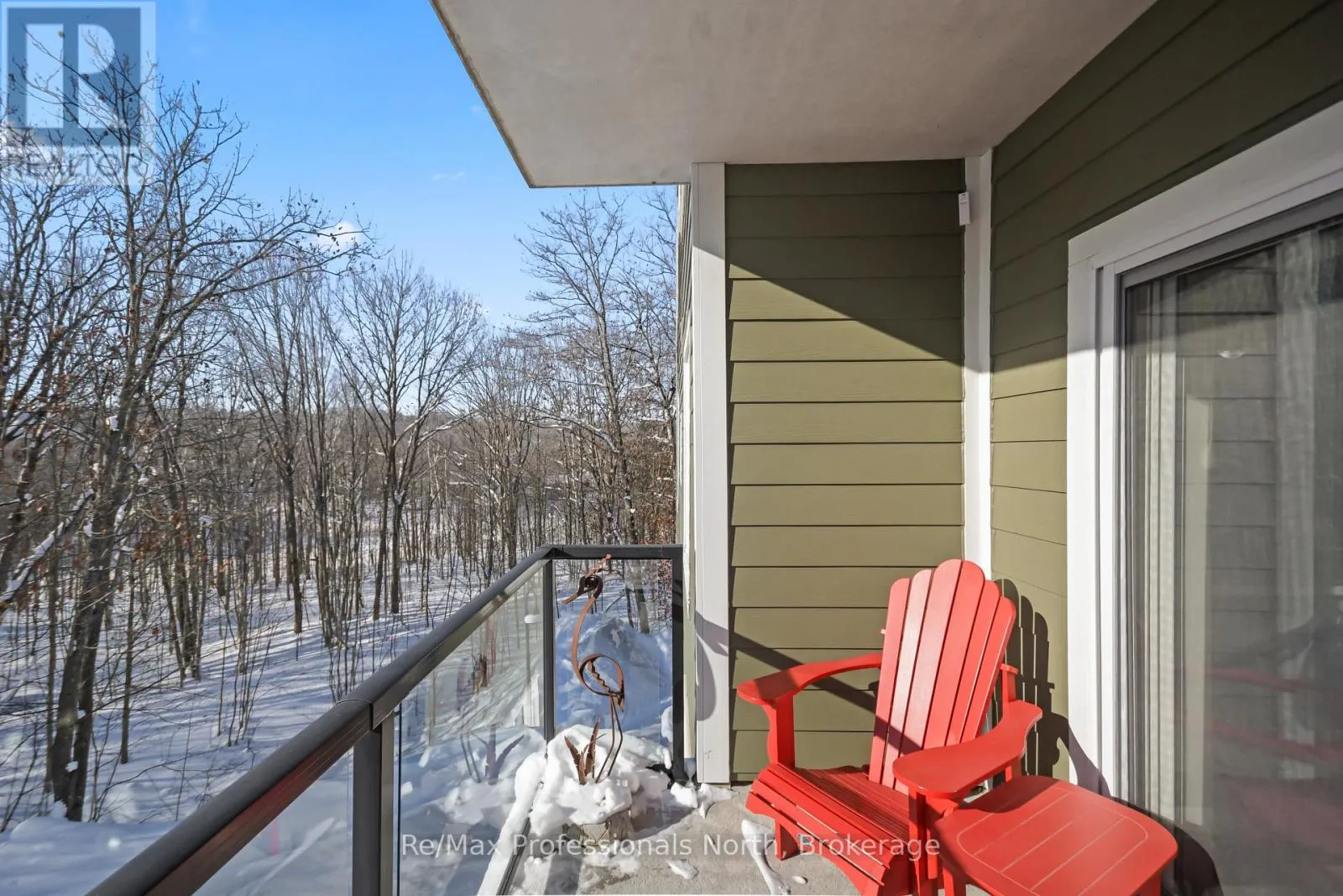 Cross Streets: James and Muskoka Road South. ** Directions: : James and Muskoka Road South. Welcome to this bright, immaculate 3 bedroom, 2 bathroom condo in Granite Trail, one of Gravenhurst's most desirable and well-constructed condo buildings. Built in 2008 with full ICF construction, this exceptionally quiet, well-managed building is the only condominium in Gravenhurst with underground parking and includes handicap accessible features throughout. The open-concept living, dining, and kitchen area is filled with natural light from large South facing windows and glass doors leading to a private, covered terrace, perfect for enjoying peaceful elevated forest views. The unit has been beautifully renovated, featuring new flooring, kitchen, bathroom vanities, fresh paint, modern light fixtures, electronic window coverings, and upgraded appliances, it is truly a move-in ready unit. The thoughtfully designed layout is separated into two private wings. The primary wing offers a spacious primary bedroom overlooking the forest, a 4-Pc primary bath with jet tub, a walk-in closet with pocket door, and an additional room ideal for a guest bedroom or private office. The second wing features a large guest bedroom with forest views and a close by updated 3-Pc bathroom, providing excellent privacy for visitors. Included are one exclusive underground parking space (#21), one exclusive same-floor storage locker (#2), and additional above grade public parking spaces. Residents enjoy manicured grounds and worry-free living with all exterior maintenance, groundskeeping, common elements, and water/sewer covered by the condo corporation. Condo fees are $730/month uniquely the same across all unit owners, no rentals, HWT on demand with a ventilator provides very low heating costs. An exceptional opportunity to own a bright, spotless, pride-of-ownership home offering comfort, privacy, and low-maintenance Muskoka living. (id:27476)
