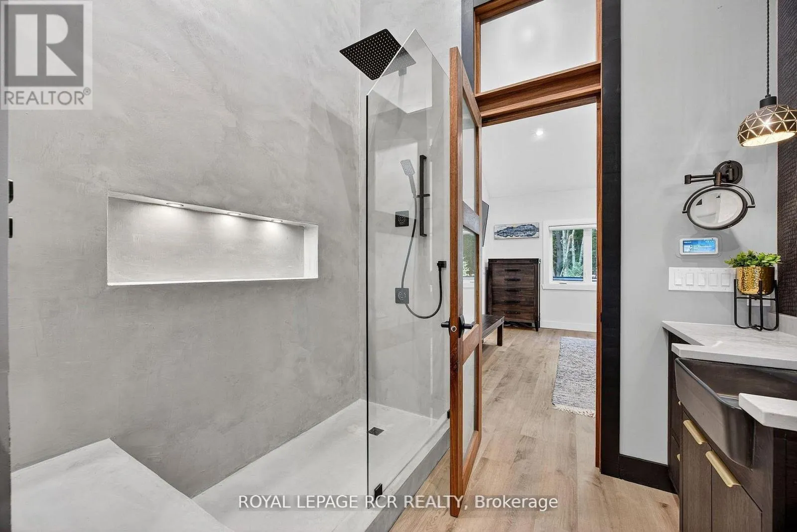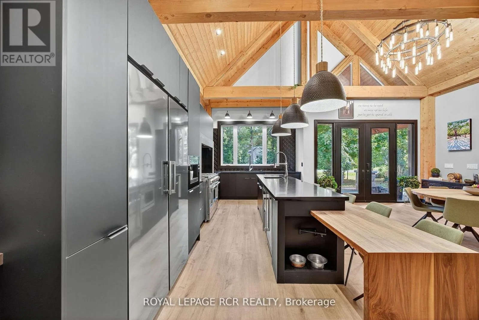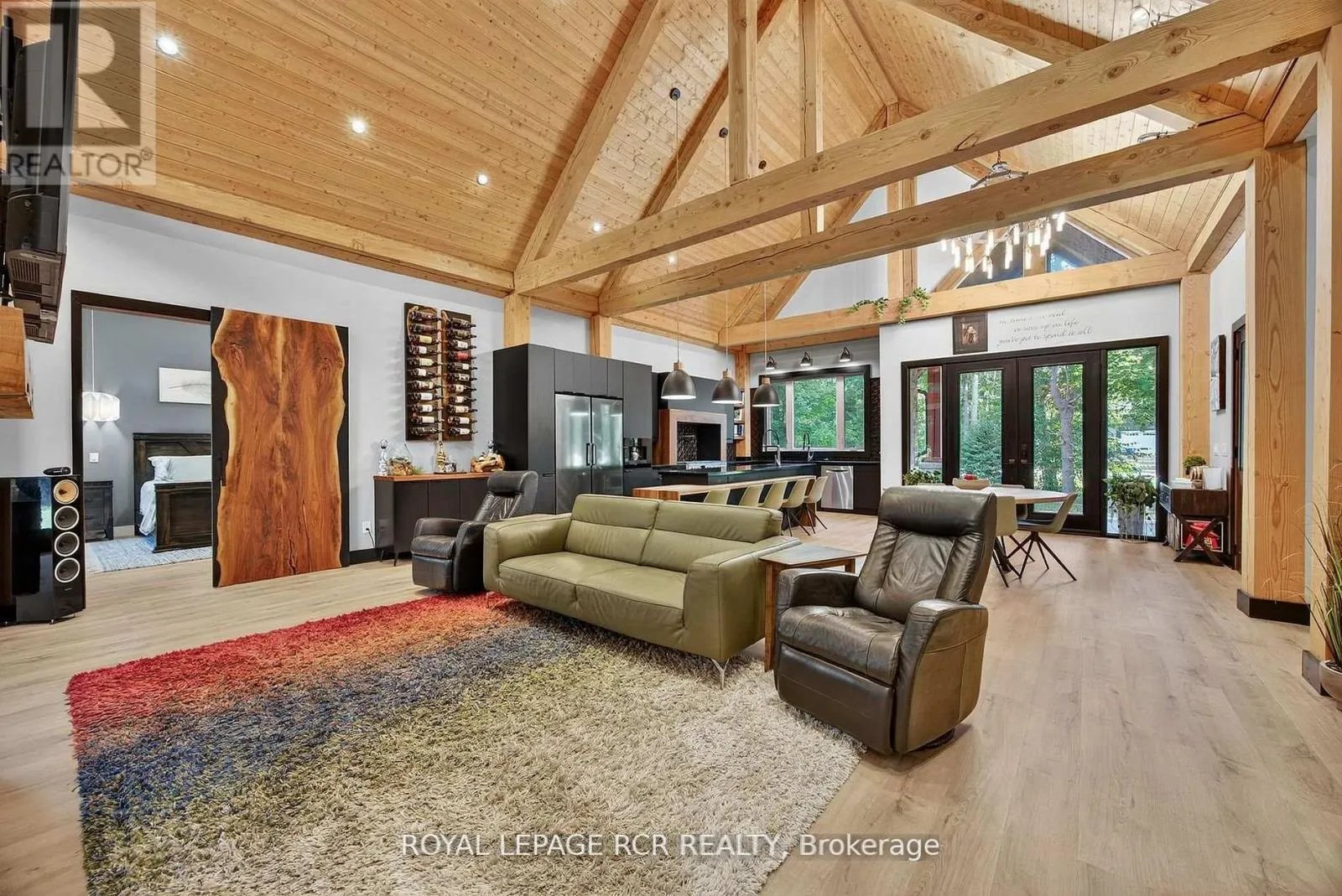 Xavier St. and Kilworthy Rd. Welcome to this stunning 2022 custom-built post & beam home, nestled on over an acre of privacy at the end of a quiet cul-de-sac, surrounded by green space. Every inch of this home is fully customized-nothing is builder grade-with design and craftsmanship that set it apart. Step inside the spectacular 25' vaulted great room, where soaring beams, a floor-to-ceiling double-sided stone fireplace, and radiant heated floors set the tone for comfort and style. The chef's kitchen is a true showpiece with solid walnut accents, a Fulgor Milano 48" propane range with double ovens, built-in coffee maker, wine fridge, and oversized fridge/freezer-perfect for entertaining. The primary bedroom offers 14' ceilings, a walk-in closet with library ladder, custom storage, a spa-inspired ensuite with rain shower & body jets, a private fireplace. With 3 bedrooms plus a loft and the option for a separate in-law suite, this home is ideal for families or hosting guests. Smart home technology elevates daily living with voice-activated control of lighting, blinds, fireplace, security, HVAC, and media throughout. Outside, enjoy a fenced backyard with gardens, a firepit, a Hydropool hot tub, and a full outdoor kitchen & bar-your private Muskoka resort. The property also boasts an incredible 50' x 50' detached workshop/garage, fully insulated with radiant in-floor heating, HVAC, water, washroom, compressed air lines, and oversized doors-perfect for hobbies, storage, or business needs. From spray foam insulation and 50-year shingles to custom walnut doors and chandeliers, this home blends efficiency, luxury, and craftsmanship at every turn. 10 minute drive to Bracebridge, 23 minute drive to Orillia. You will never see a house like this one with every inch of this home upgraded, your Muskoka dream home awaits. (id:27476)