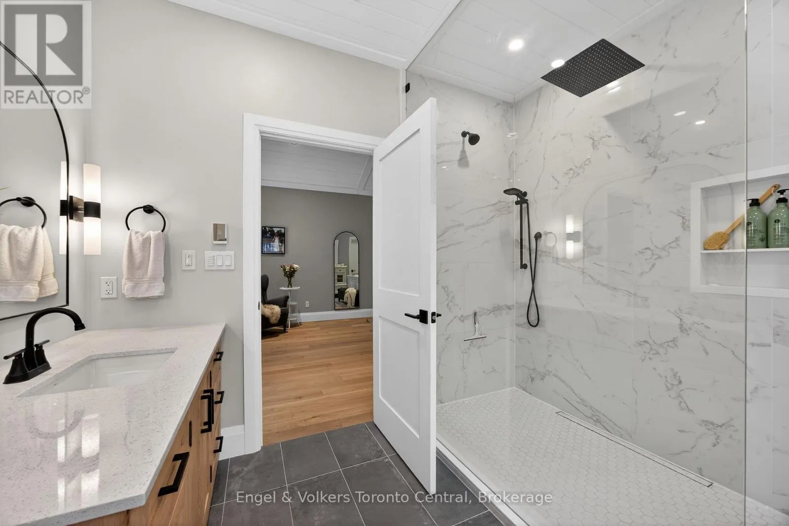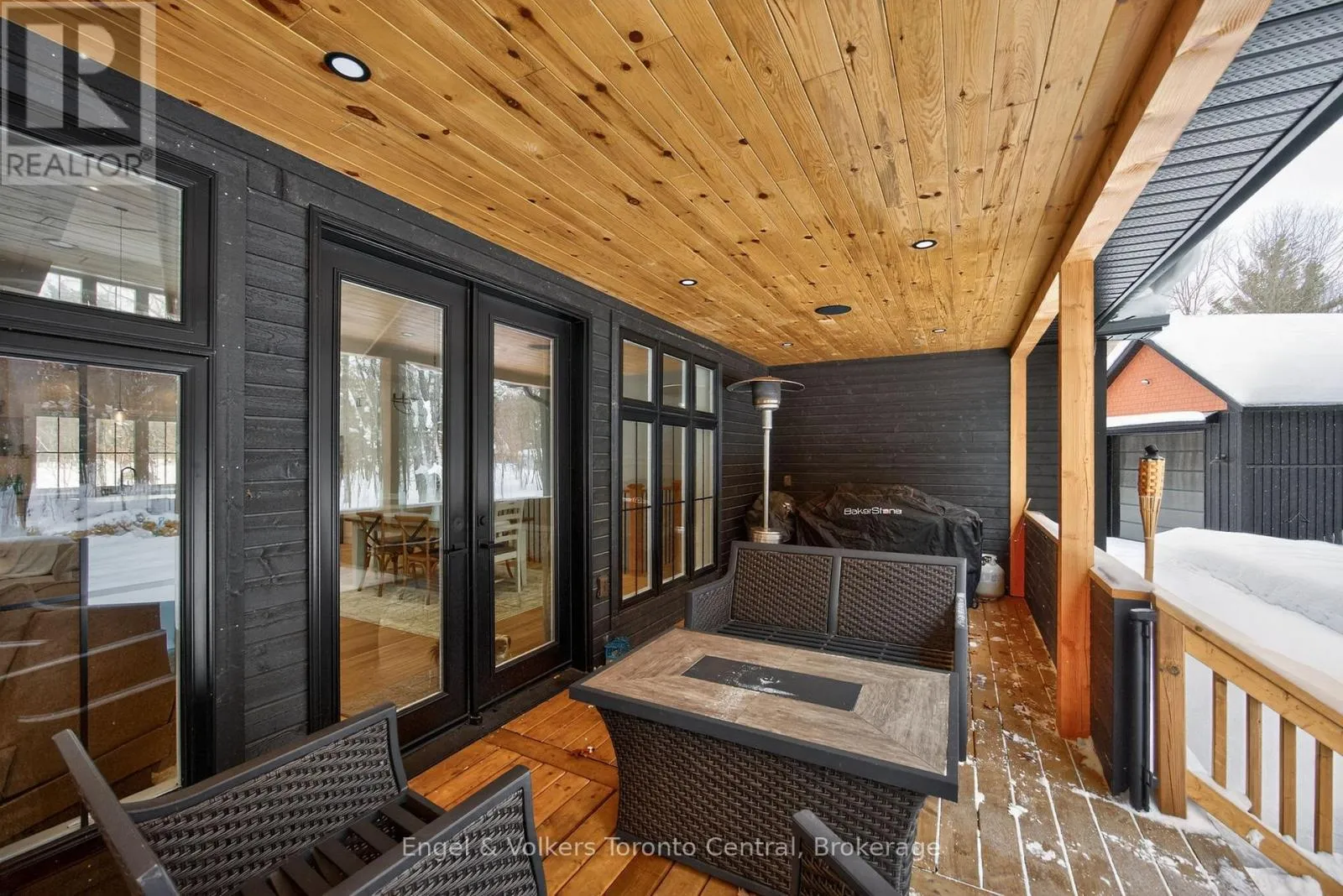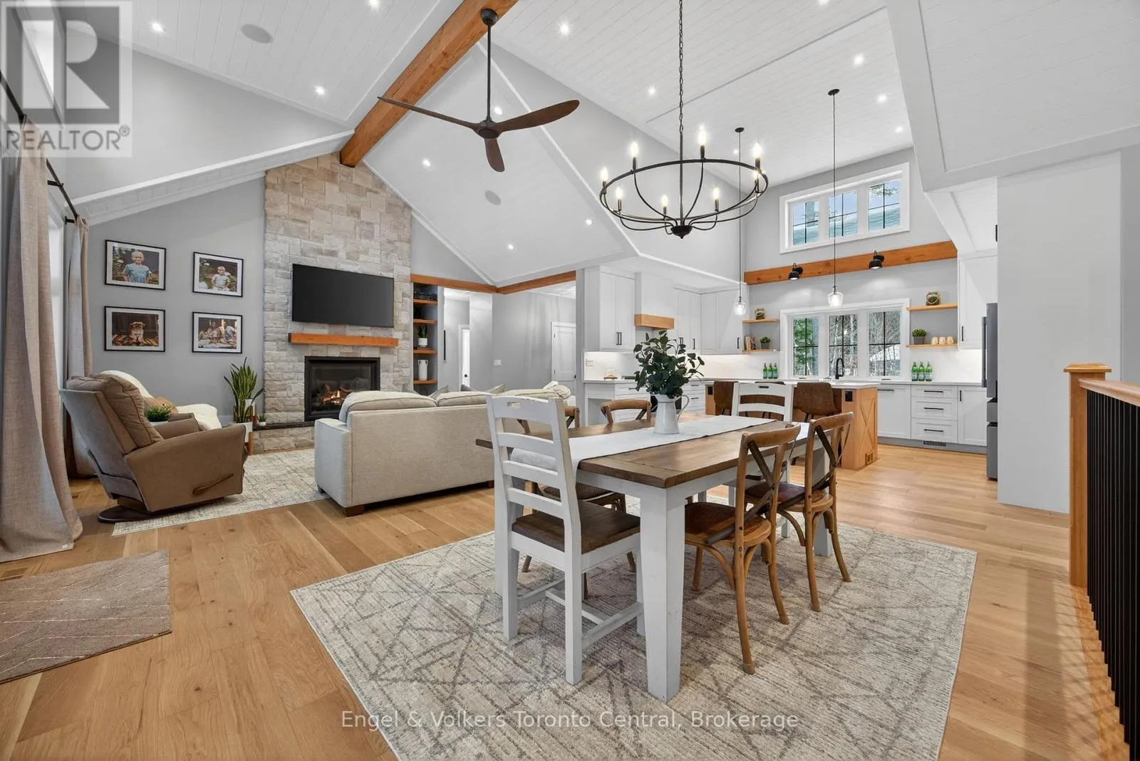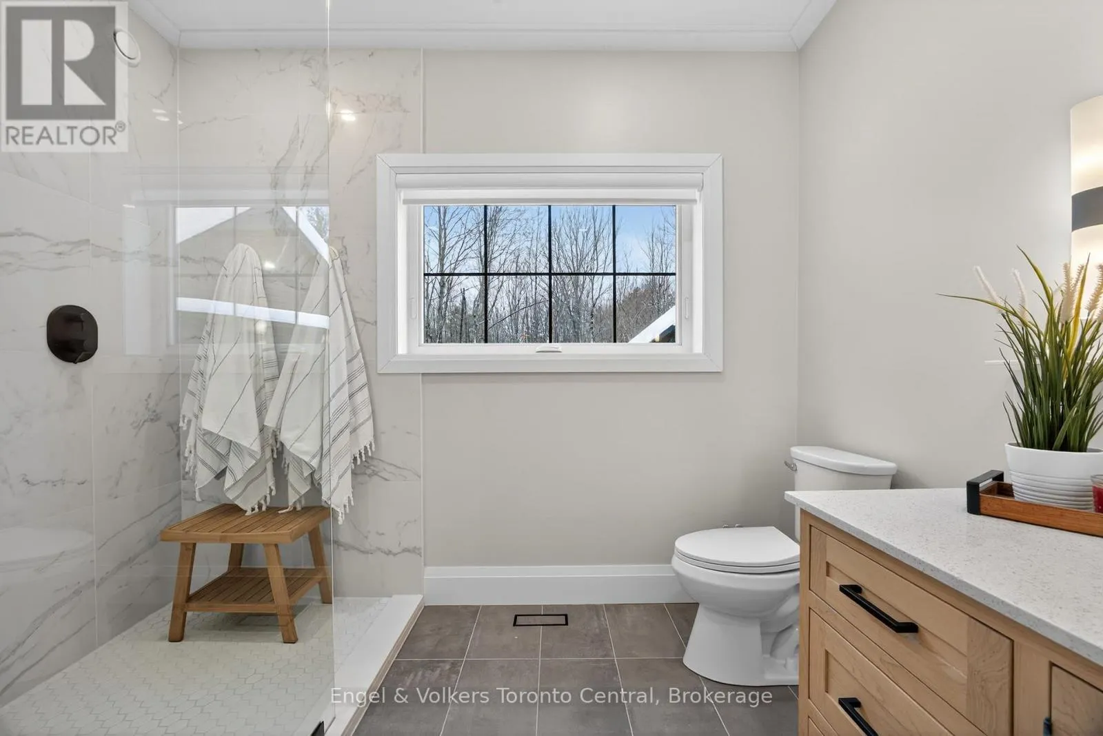 Cross Streets: Hwy 11 & Kilworthy Road. ** Directions: Hwy 11 to Kilworthy Rd. / South Kahshe Lake Rd. across overpass to Kilworthy Rd. west to Xavier St to sign on property. Executive country living just 7 minutes south of Gravenhurst and moments to Hwy 11 - offering seamless access to the GTA while enjoying complete privacy on a wooded 1-acre lot. Recently completed, this custom 5-bedroom residence blends refined Muskoka design with modern efficiency and exceptional build quality - ideal for professionals seeking space without sacrificing convenience. The open-concept main level features wide-plank white oak floors, vaulted v-groove ceilings with exposed beams, and expansive dormers that flood the home with natural light. A 42" gas fireplace anchors the living space, with walkout to a covered rear porch and hot tub for effortless year-round enjoyment. The custom kitchen is designed for both entertaining and everyday ease, showcasing quartz surfaces, premium appliances including a 36" gas range, generous island seating, wine storage and a hidden walk-in pantry with additional refrigerator. The primary suite offers vaulted ceilings, walk-in closet, and spa-inspired ensuite with heated floors and oversized glass shower. Two additional main-floor bedrooms provide flexible space for family or guests. The fully finished lower level with 9.5' ceilings adds 2 large bedrooms, recreation space, gym and full bath. Built for longevity and performance: ICF foundation, insulated slab, ZIP system sheathing, R-60 insulation, high-efficiency mechanicals, HRV, generator transfer switch and water filtration system. Oversized heated 2-car garage with car-lift potential plus a fully serviced detached shop with 100-amp service, washroom and in-floor heat - ideal for collectors, entrepreneurs, or home-based professionals. Private, polished, and purposefully designed - executive Muskoka living at its finest. (id:27476)