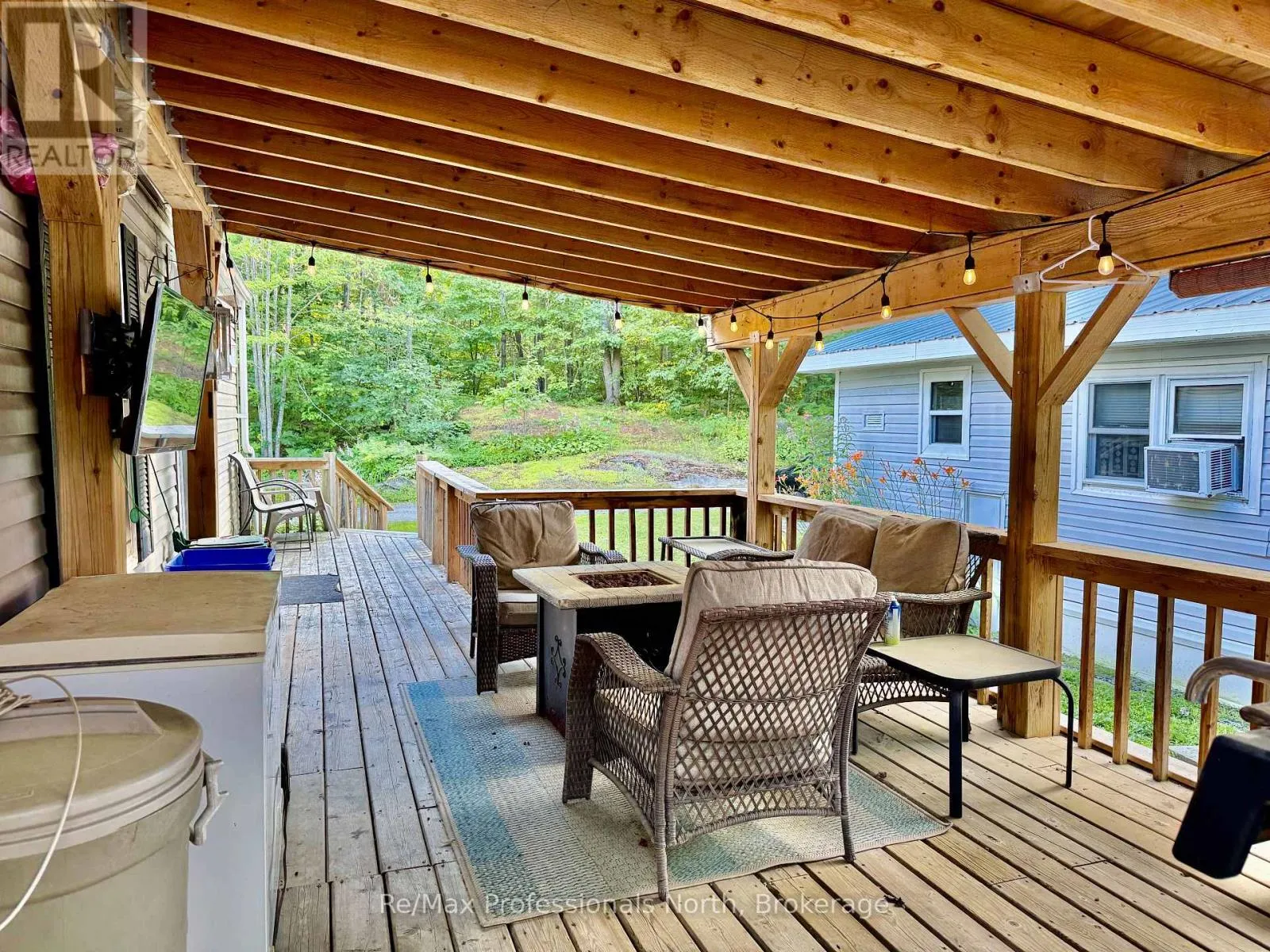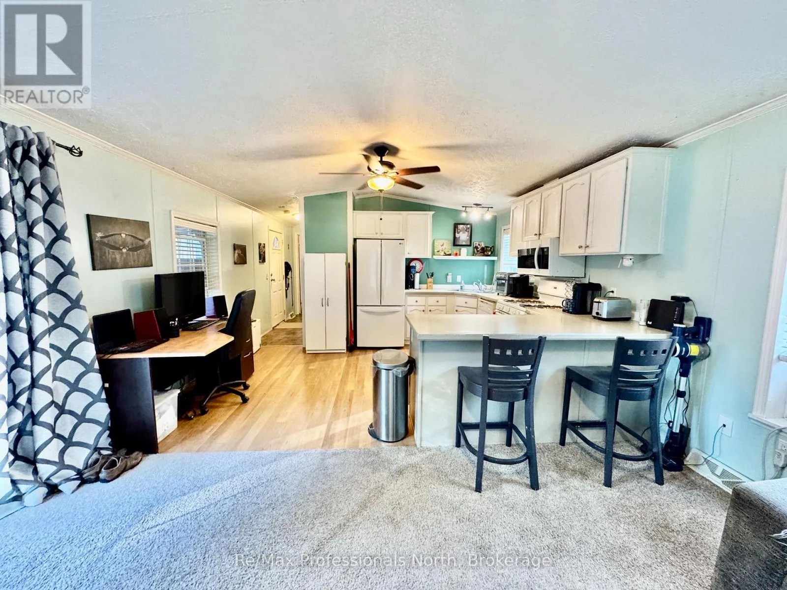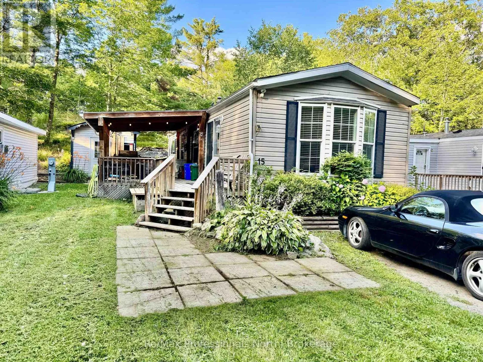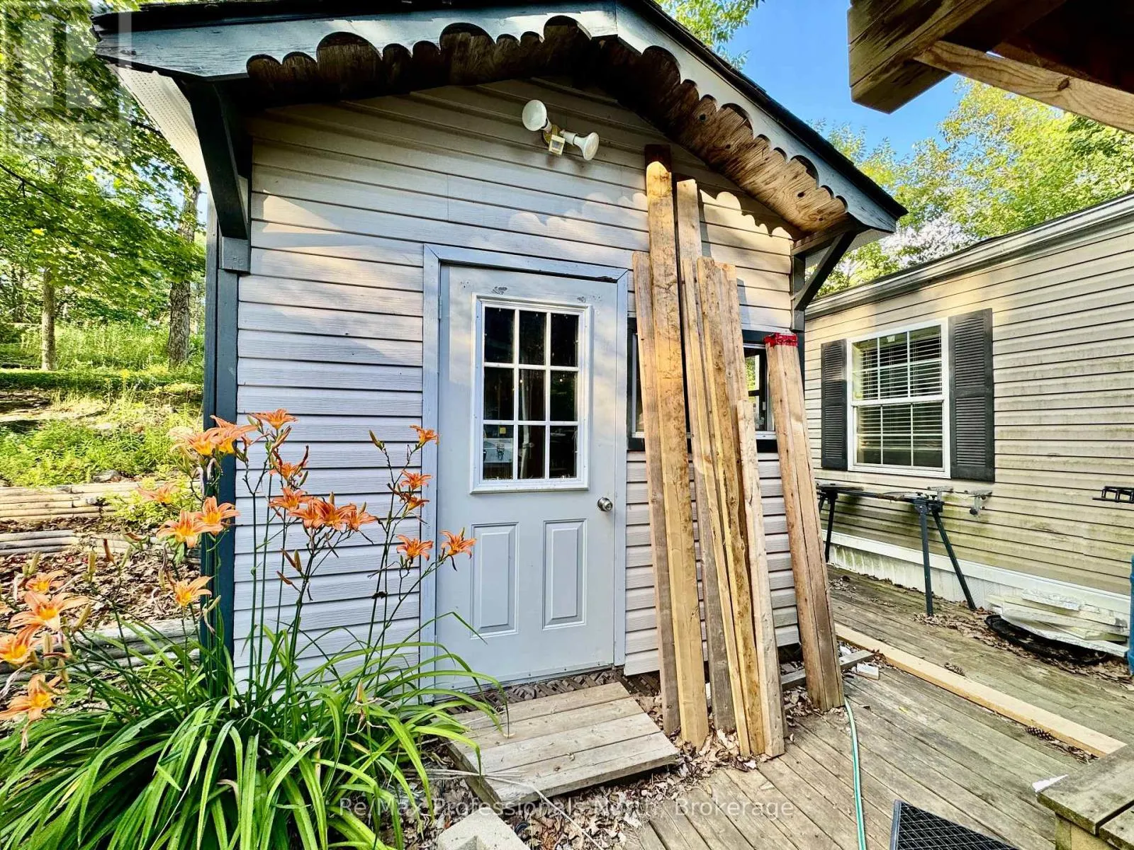 Hwy 11 S. turn right onto Ure rd. left ont Sedore Rd. left onto Beaver Ridge Rd. and right onto Racoon Rd. to SOP This well-maintained 734 sq ft 2006 Titan model offers affordable, comfortable living just minutes from downtown Gravenhurst. With 1 bedroom, 1 bathroom, and upgraded construction and insulation, this home provides better efficiency and comfort than most units in the park. You'll also love the covered outdoor deck, which nearly doubles your living space during the warmer months. Inside, enjoy the convenience of in-unit laundry, a bright open layout, and large kitchen for easy meal prep and entertaining. The unit also comes with a spacious shed/workshop for hobbies or extra storage. Just steps from the in-ground community pool and recreation centre, this home is ideally located for those who value community, walkability, and a relaxed lifestyle. The pet-friendly park is only 2 minutes from shops, restaurants, and other town amenities. Don't miss your chance to own this charming, efficient home in a quiet, friendly community book your showing today! (id:27476)