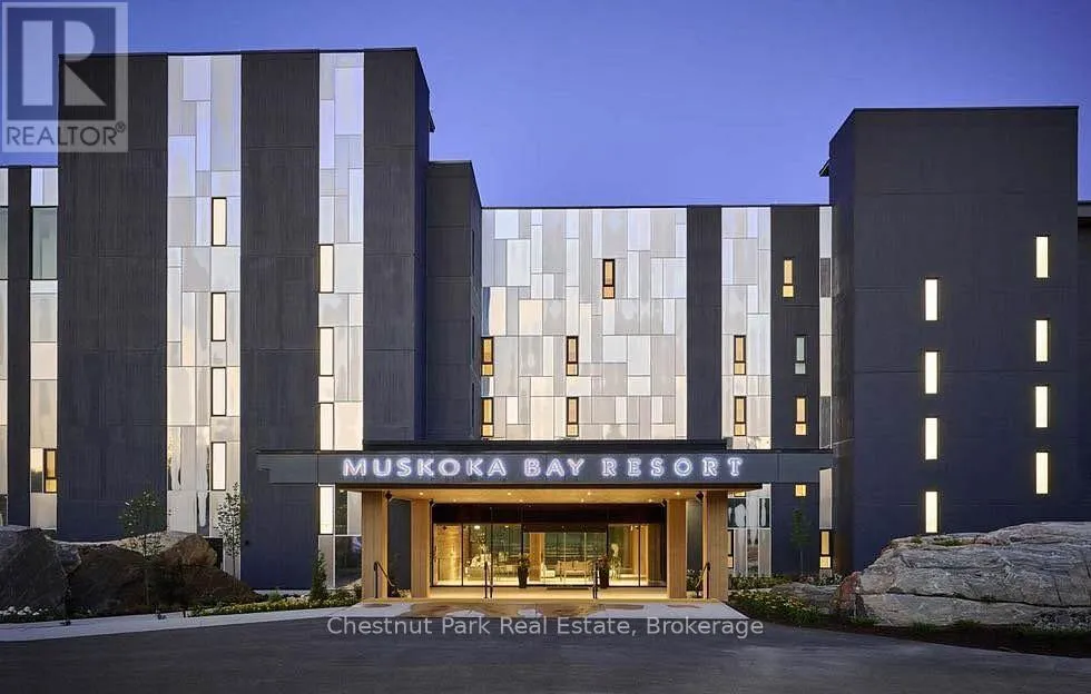 North Muldrew Lake Road/Carrick Trail Experience refined living at Muskoka Bay Resort in Gravenhurst. This exceptional fully furnished One Bedroom plus Den Condo is located on a world renowned Golf Course, offering captivating views of the 18th hole. Escape urban life and immerse yourself in a contemporary suite with access to top tier amenities including 2 outdoor pools, fitness studio and Cliffside restaurant with spectacular, elevated views of the property. The unit has a well thought out floorplan with lots of windows to allow natural light to permeate the space. Unwind on your 4th floor balcony with impressive views of nature and stunning sunsets to end your day. In summer relax by the pools, enjoy great food on one of the best patios in Muskoka or play a round of Golf. Winter season brings fat bike trails, cross country ski trails and an outdoor skating rink on site. Muskoka Bay Resort is located in close proximity to downtown Gravenhurst where you will find great shopping, amenities, attractions and many year round events, including it's famous Wednesday Farmer's Market. Benefit from the Resort's professionally managed Rental Program, providing you with hassle free income when not using your unit. Purchase comes with Social or Golf Membership Entrance/Initiation Fee included. (id:27476)