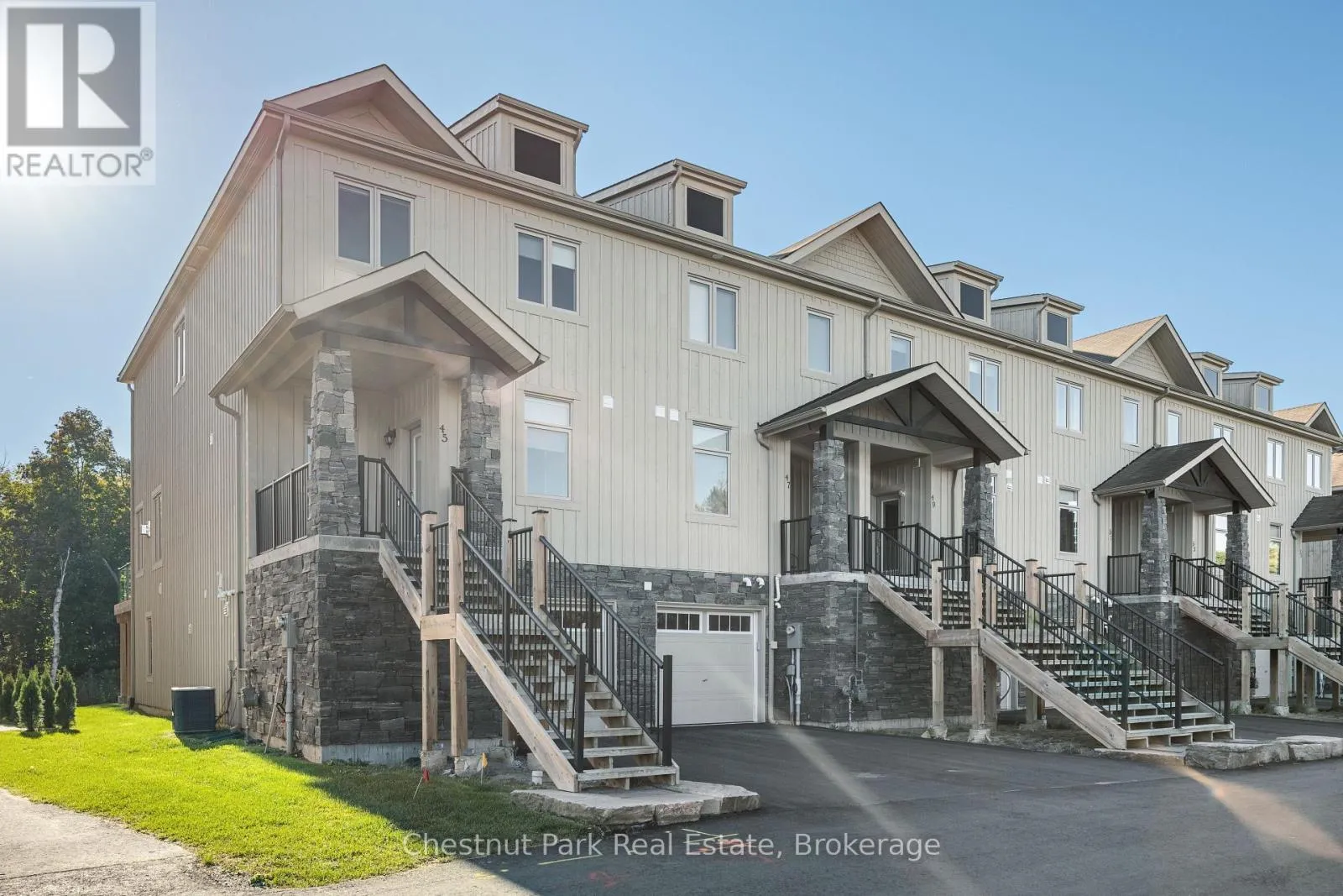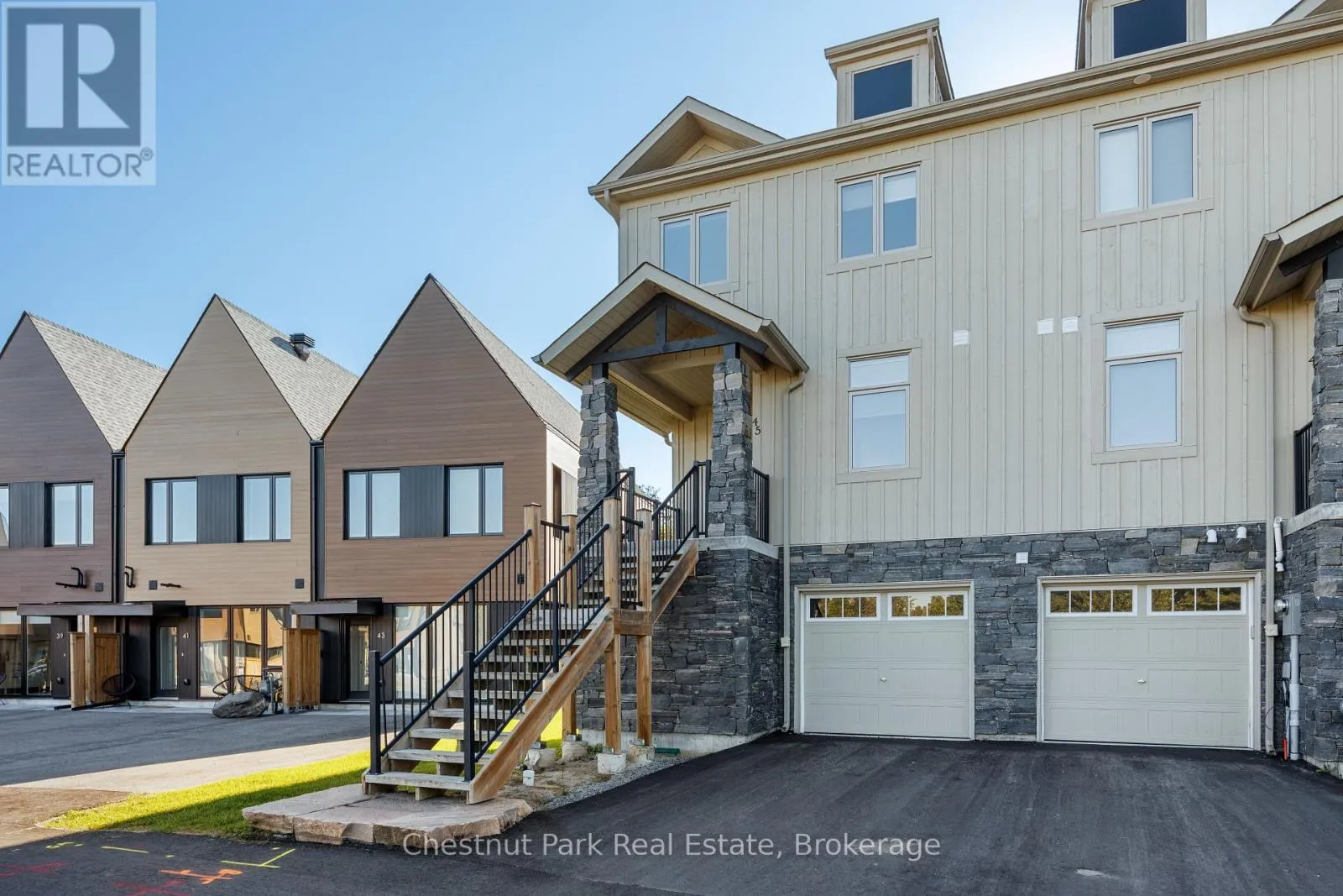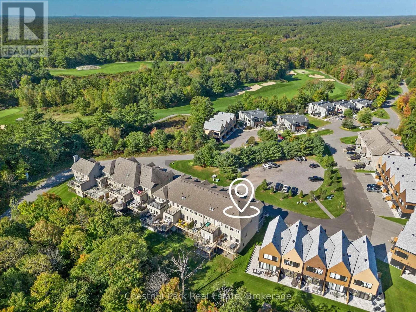 Cross Streets: Rockmount Crescent & Carrick Trail. ** Directions: From Muskoka Rd 169, take North Muldrew Lake Road to Carrick Trail. Turn left on Rockmount Crescent. Muskoka Bay Resort - low maintenance, high style, and the rare property that works equally well as a full-time family home or the perfect weekend escape. This end-unit ravine villa delivers exactly the kind of refined resort living that justifies every dollar of the investment. Built a full decade newer than comparable units in the row, it delivers superior living space, twice the natural light, and the rare potential to add a ground-level Muskoka room - a combination of advantages that simply cannot be replicated in older interior units. Three generous bedrooms include a refined primary suite with ensuite bath and ample closet space, while the additional rooms offer effortless flexibility for guests or family. Four bathrooms, a chef's kitchen designed for effortless entertaining, an expansive living room, oversized deck, and a fully finished lower level complete a home that feels as considered as it is comfortable. Beyond your front door, the resort delivers the lifestyle: infinity pool, Muskoka barrel sauna, newly renovated fitness centre, and miles of hiking and snowshoe trails - all anchored by the acclaimed Cliffside Restaurant. For the savvy buyer, the resort's year-round rental program offers a compelling opportunity to offset carrying costs with proven income - making this one of the smartest ways to own in Muskoka. (id:27476)