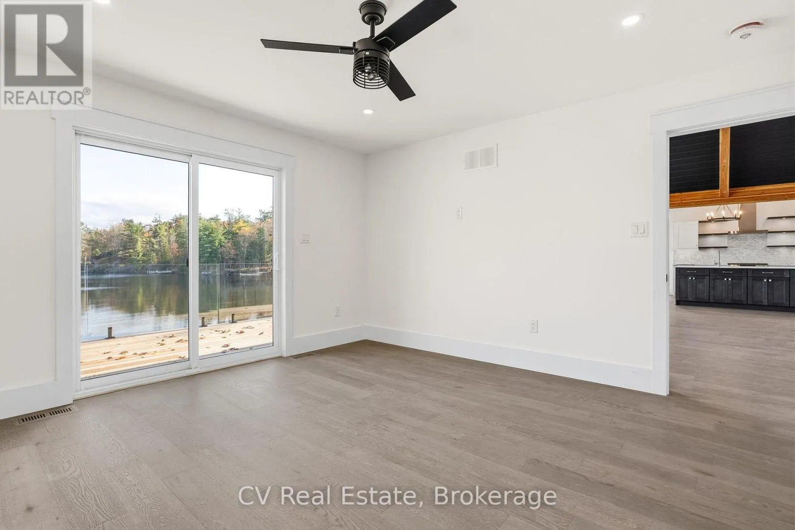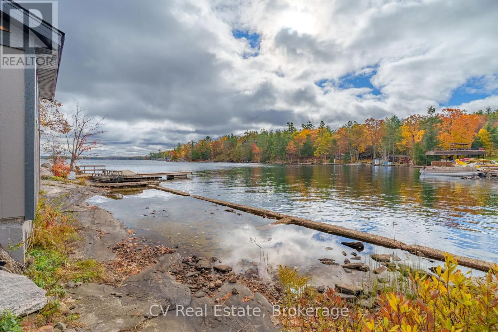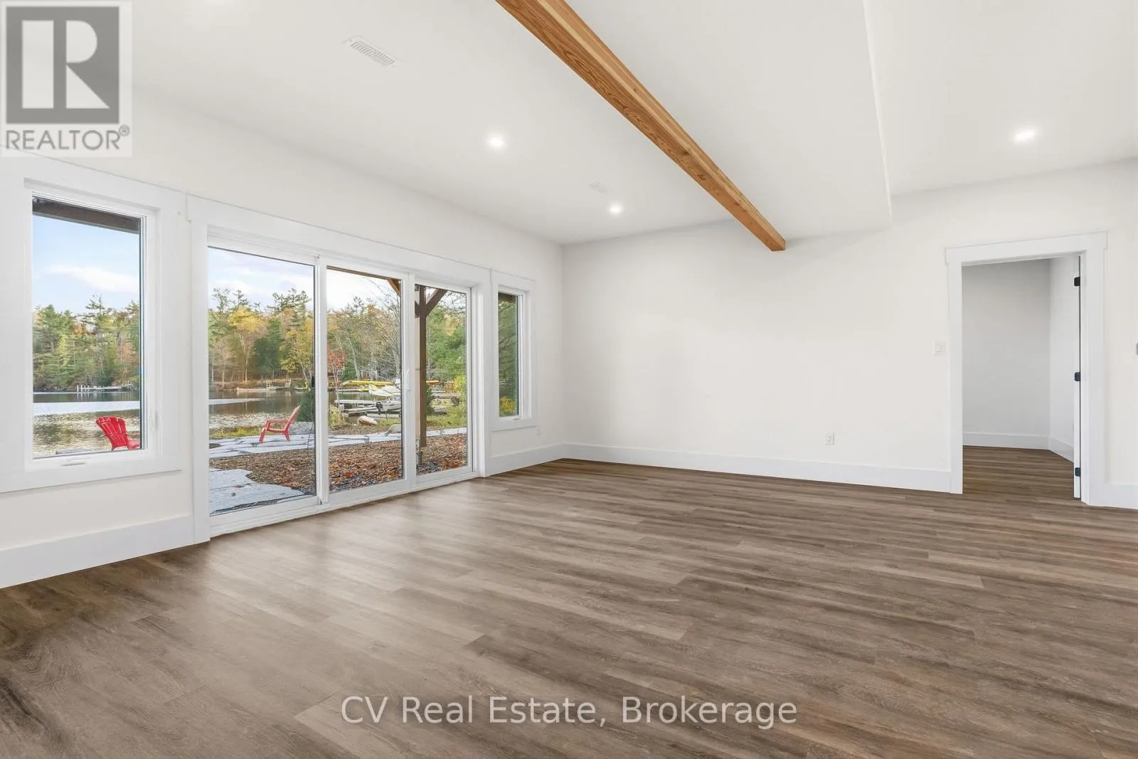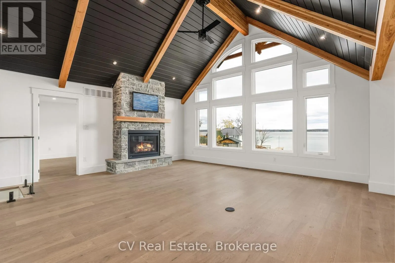 Cross Streets: Muskoka Rd 169. ** Directions: Muskoka Rd 169 to Lakeshore Drive. Welcome to 1111 Lakeshore Drive, a brand-new custom-built Linwood post & beam home and bunkie set on 178 feet of south-facing Lake Muskoka shoreline. Enjoy year-round living on a quiet, private bay, just minutes from downtown Gravenhurst and the Muskoka Wharf. This 4-bedroom, 3-bathroom retreat blends timeless Muskoka character with modern comfort. The main floor offers 1,415 sq. ft. of finished space featuring a grand great room with exposed Douglas Fir beams, a granite-faced propane fireplace, and floor-to-ceiling windows framing breathtaking Lake Muskoka views. The chef's kitchen includes quartz countertops, shaker cabinetry, and a walkout to a 12' 16' covered porch overlooking the water. A lower level with exceptional lake views provides a bright walkout family area with space for friends & family, while the main-floor primary suite opens directly to the deck. Additional features include a 2-car insulated attached garage with heated floors, main-floor laundry, hardwood flooring, and heated floors in the basement and principal bathroom & shower. The exterior is maintenance-free, beautifully landscaped with granite and mulch, complete with a fire pit and 12' 12' storage shed. A fully functional 445 sq. ft. bunkie offers a 3-piece bath, electric fireplace, and private deck, perfect for guests or extended family. With southern exposure, flat terrain to the water, and a dock permit in hand, this turn-key property is ideal for boating, snowmobiling, or simply relaxing in every season. (id:27476)