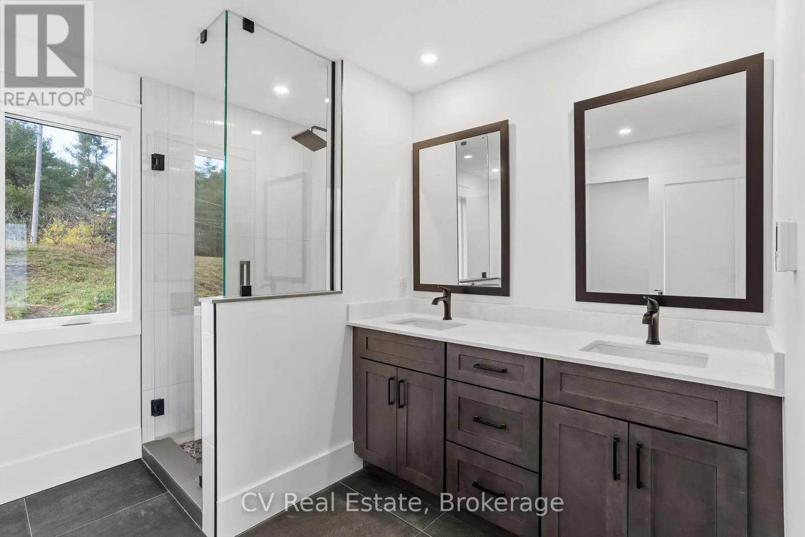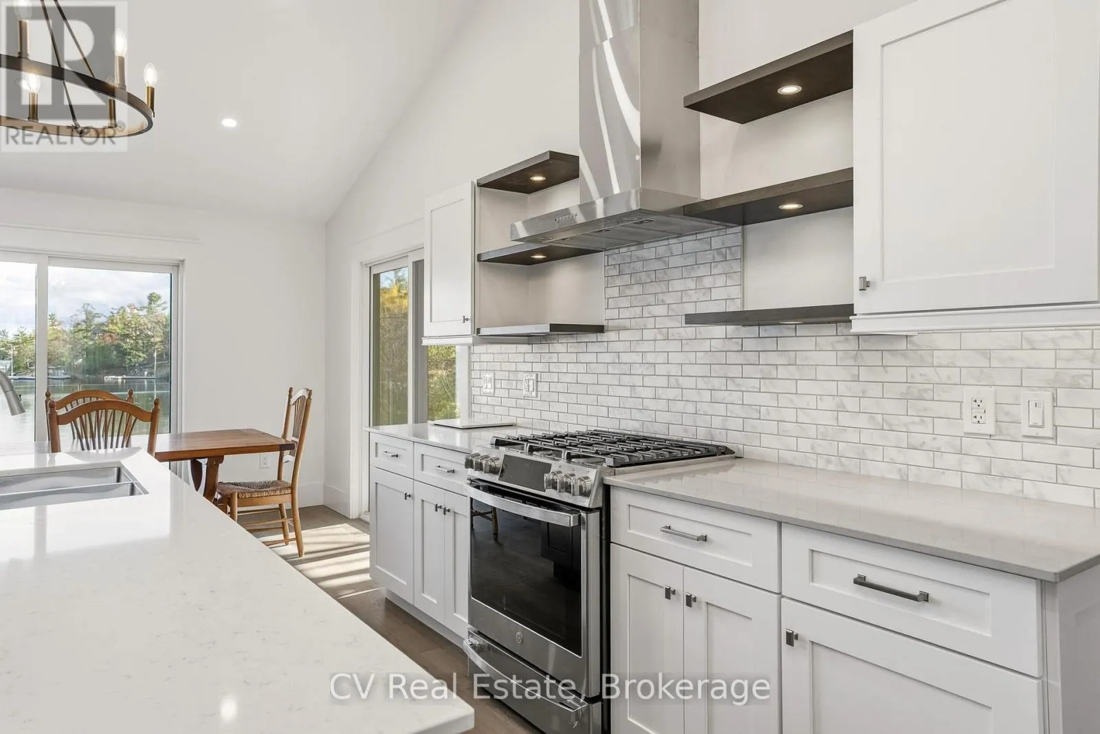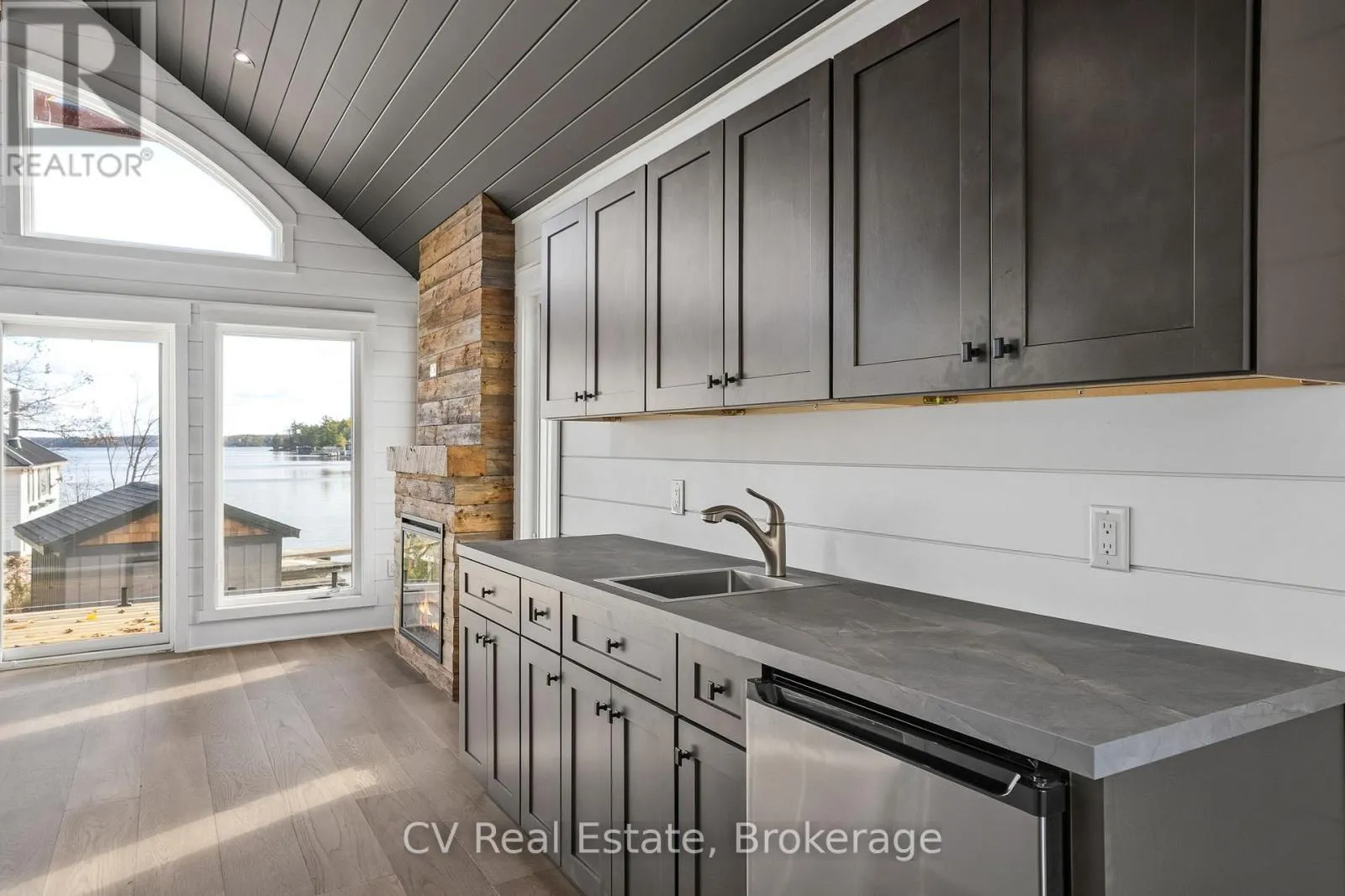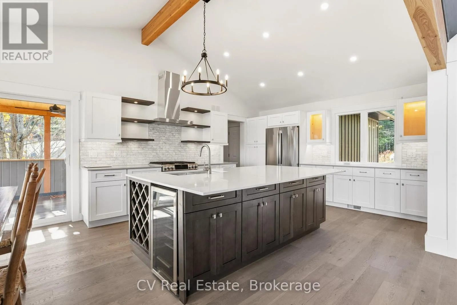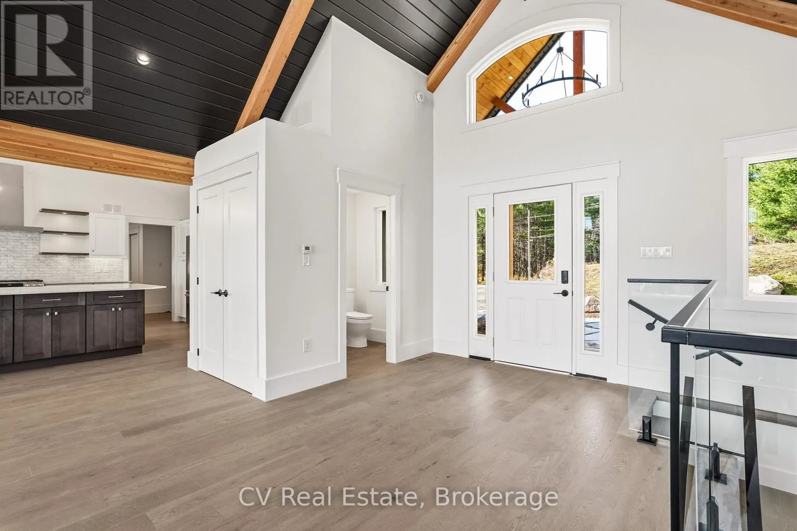 Cross Streets: Muskoka Rd 169. ** Directions: Muskoka Rd 169 to Lakeshore Drive. Welcome to 1111 Lakeshore Drive, a brand-new custom-built Linwood post & beam home and bunkie set on 178 feet of south-facing Lake Muskoka shoreline. Enjoy year-round living on a quiet, private bay, just minutes from downtown Gravenhurst and the Muskoka Wharf. This 4-bedroom, 3-bathroom retreat blends timeless Muskoka character with modern comfort. The main floor offers 1,415 sq. ft. of finished space featuring a grand great room with exposed Douglas Fir beams, a granite-faced propane fireplace, and floor-to-ceiling windows framing breathtaking Lake Muskoka views. The chef's kitchen includes quartz countertops, shaker cabinetry, and a walkout to a 12' 16' covered porch overlooking the water. A lower level with exceptional lake views provides a bright walkout family area with space for friends & family, while the main-floor primary suite opens directly to the deck. Additional features include a 2-car insulated attached garage with heated floors, main-floor laundry, hardwood flooring, and heated floors in the basement and principal bathroom & shower. The exterior is maintenance-free, beautifully landscaped with granite and mulch, complete with a fire pit and 12' 12' storage shed. A fully functional 445 sq. ft. bunkie offers a 3-piece bath, electric fireplace, and private deck, perfect for guests or extended family. With southern exposure, flat terrain to the water, and a dock permit in hand, this turn-key property is ideal for boating, snowmobiling, or simply relaxing in every season. (id:27476)