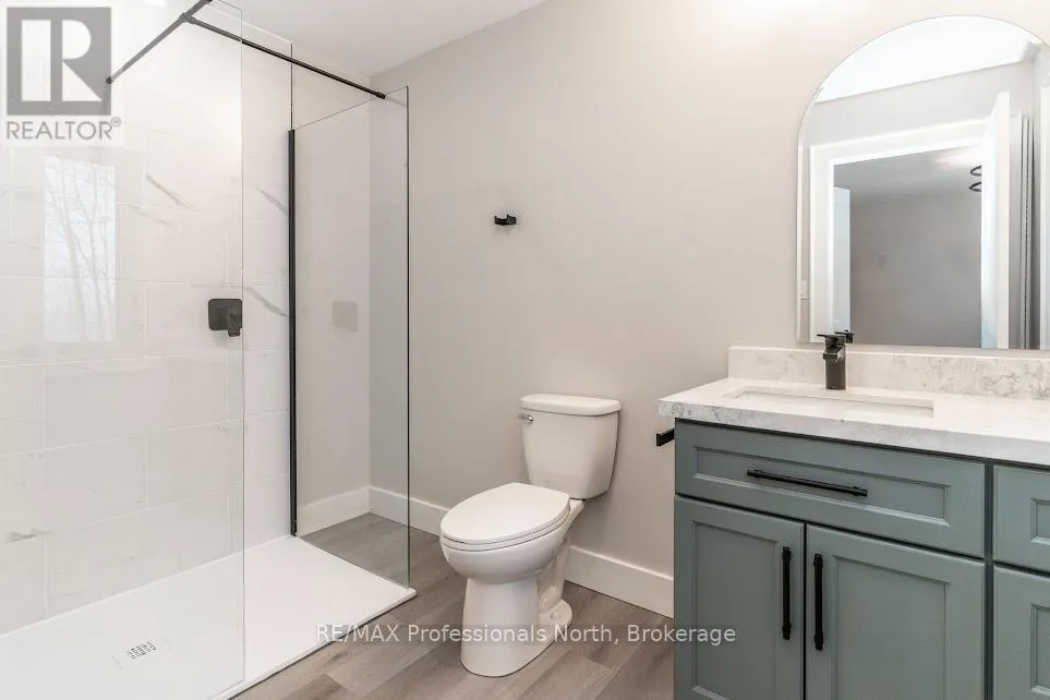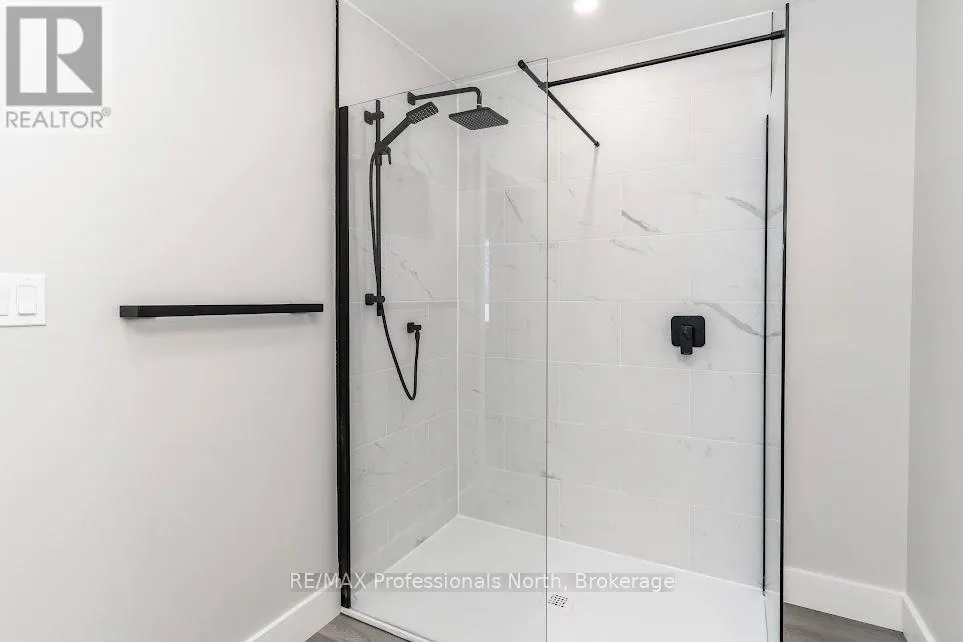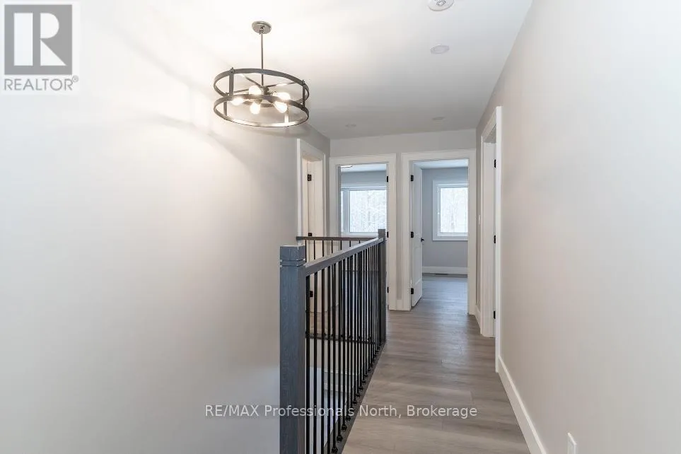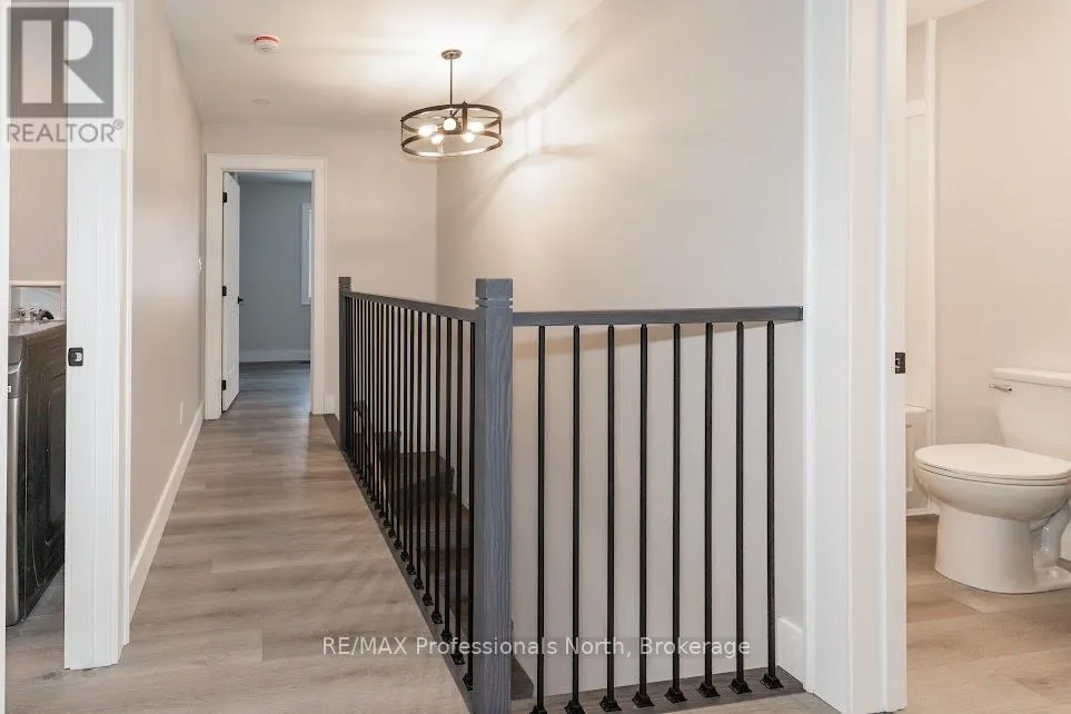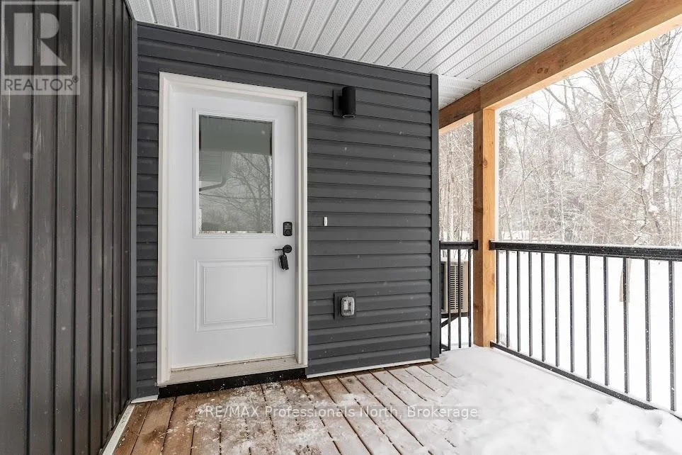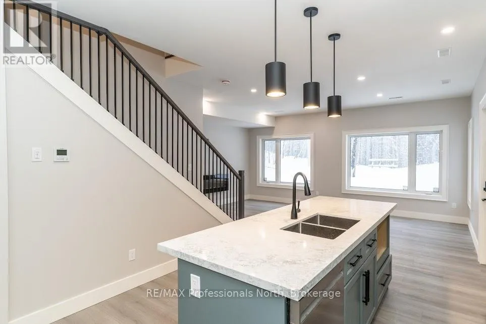 Cross Streets: Winewood Avenue E & Muskoka Beach Road. ** Directions: Bethune Dr to Winewood Avenue E to Muskoka Beach Road to #371. Brand New 3-Bedroom Unit in Gravenhurst 4-Plex - Single Car Garage - Immediate Occupancy! Discover modern Muskoka living in this pristine, never-lived-in 3-bedroom, 2.5-bathroom unit within a brand-new 4-plex building in beautiful Gravenhurst! This spacious, contemporary unit feels like your own home, featuring private entry and high-end finishes throughout: Bright, open-concept main floor with a spacious gourmet kitchen boasting a large centre island, stylish teal cabinetry, sleek black hardware, durable quartz countertops, and a full suite of stainless steel appliances. Generous living and dining areas flow seamlessly together, accented by high ceilings, recessed lighting, modern pendant lights, and large windows offering serene views of wooded surroundings and winter snowscapes. Convenient main-floor 2-piece powder room for guests - ideal for everyday convenience and entertaining. Three bedrooms on the upper level, including a primary suite with abundant natural light, and a private ensuite bathroom for added luxury. Two stylish full bathrooms (upper level): the primary ensuite with sleek glass-enclosed shower plus a second full bath featuring a relaxing tub, arched LED-lit mirrors, floating vanities in soft teal tones, and crisp tile. Convenient upper-level laundry room equipped with front-load washer and dryer, plus a bright window for natural light. Single-car attached garage (dedicated to the unit) plus additional driveway parking. High-end finishes throughout: durable grey-toned laminate flooring, energy-efficient new construction, keyless smart entry, and thoughtful details for comfort and style. This premium unit in a 4-plex blends contemporary elegance with Muskoka charm - centrally located in Gravenhurst with easy access to downtown shops, restaurants, trails, lakes, and outdoor adventures. (id:27476)