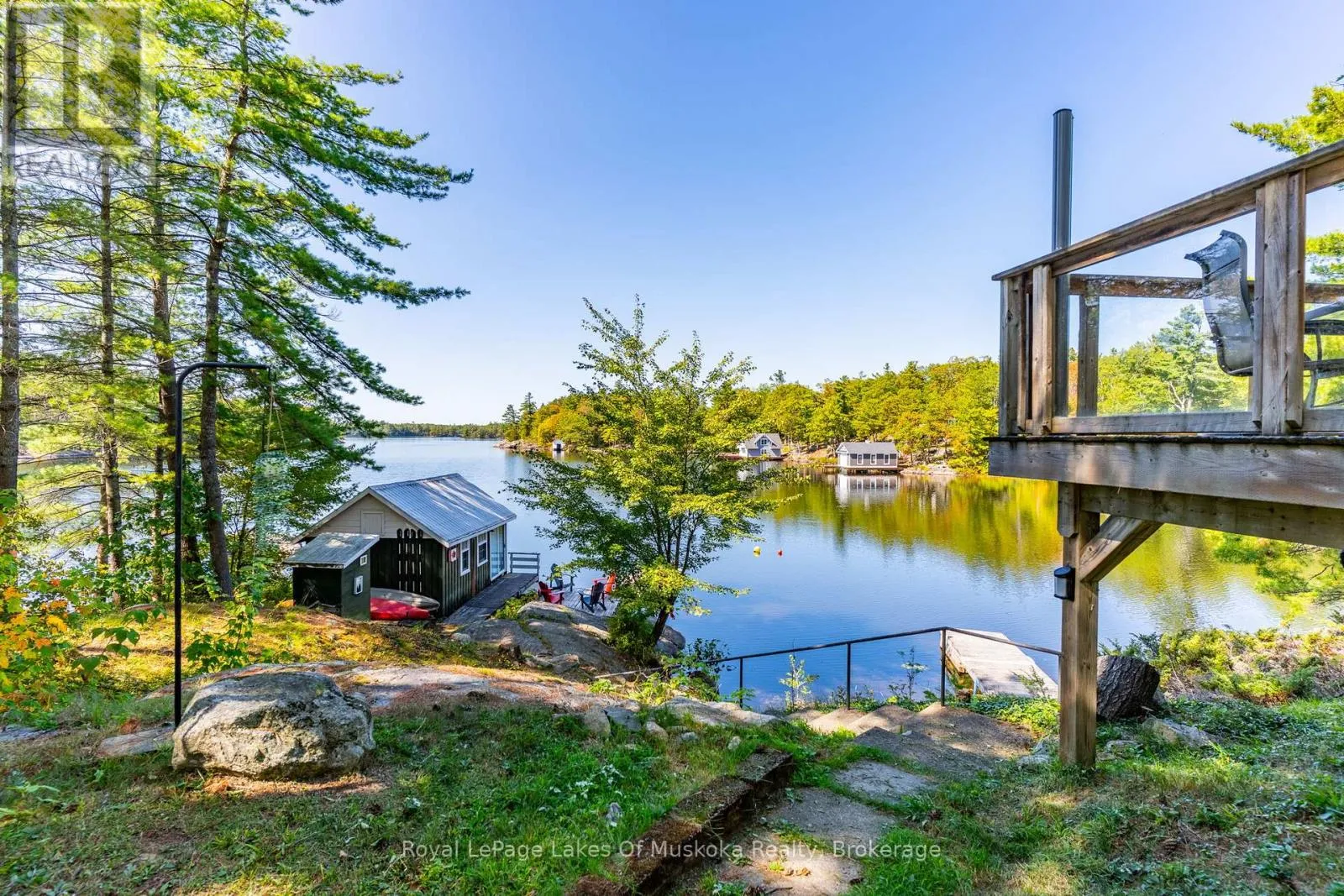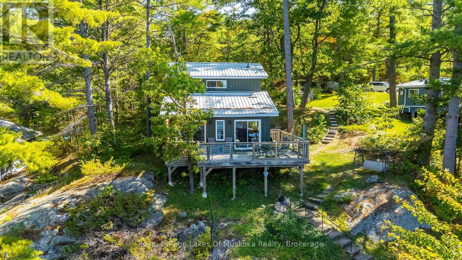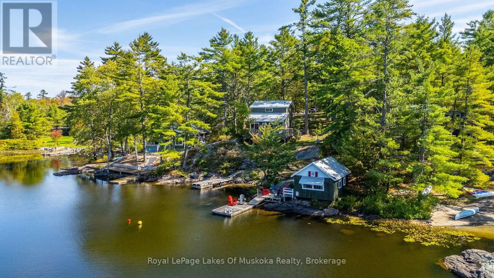 Cross Streets: Hwy 169. ** Directions: Hwy 169 just outside of Gravenhurst. First time offered on Pine Lake! Two bedroom cottage with 3pc bath, open concept kitchen and living space plus a wrap around deck with breathtaking lake view. At the waters edge sits the original cottage, now used as a charming bunkie for overflow guests or a lakeside hangout. Due west exposure makes for amazing sunsets.... each one is different and photograph worthy. Large built in storage space with ICF foundation at the back of cottage. Parking for multiple vehicles. Cottage is only a 5 minute drive to the town of Gravenhurst, home of the Segwun, Wednesday Farmer's Market and shopping. This is an opportunity to get into the Muskoka cottage market on a clean lake with miles of boating with the added bonus of being close to town. (id:27476)