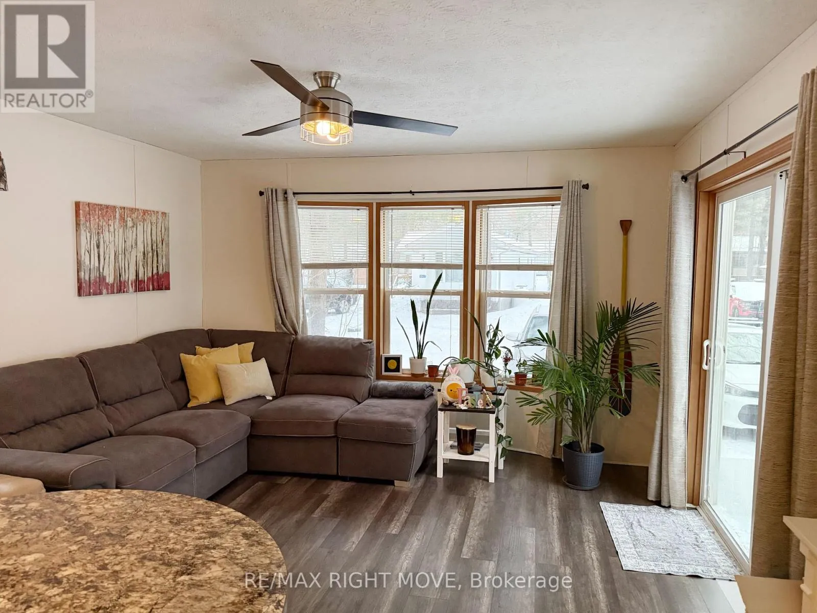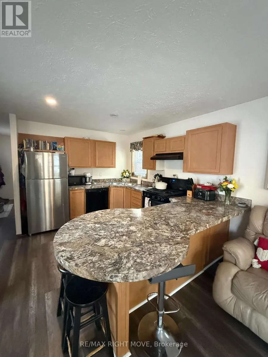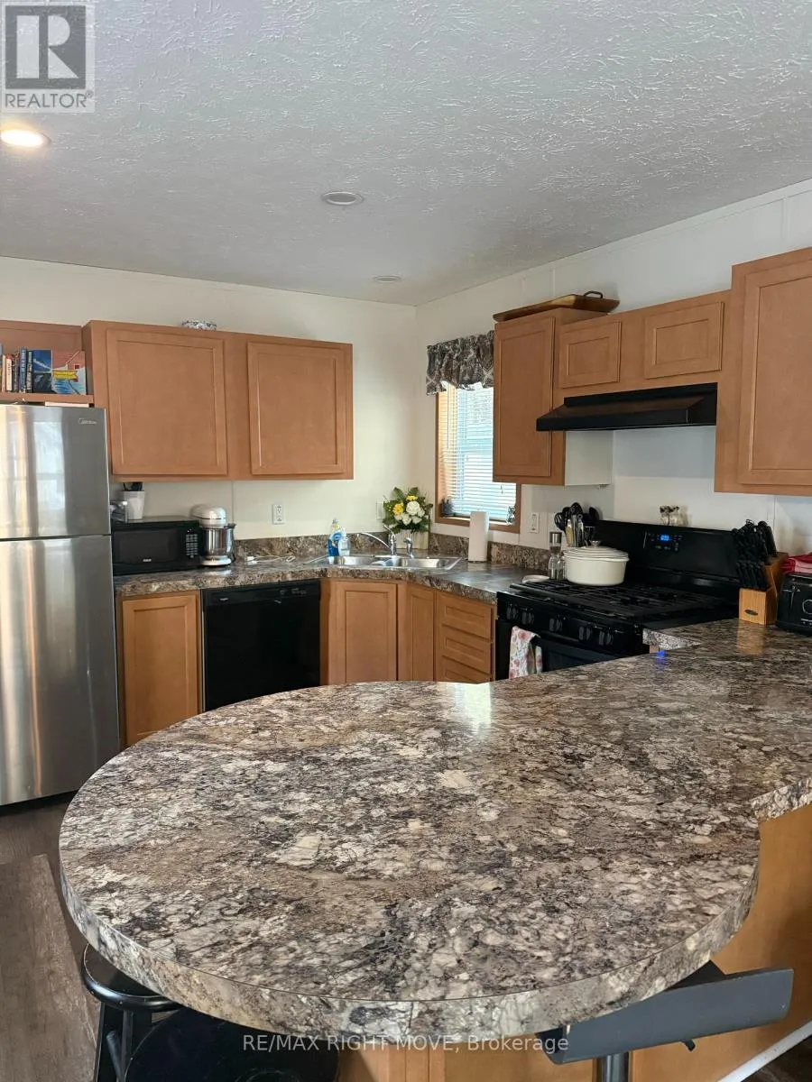 Cross Streets: Baseline. ** Directions: Highway 11 exit Southwood Road, follow to Baseline Rd, Right on 4 Seasons Rd. Welcome to your Muskoka getaway in the sought-after 4 Season section of South Muskoka Resort in Gravenhurst! This well-maintained 2019 Huron model offers 2 bedrooms, 1 bathroom, and approximately 715 sqft of comfortable, turn-key living-perfect for year-round enjoyment or a relaxing weekend escape. Step inside to a bright and inviting interior featuring a cozy gas stove, with most furnishings included (excluding tan leather recliner). Recent updates include a new fridge (2024), an owned hot water tank and New Roof (2025) for added peace of mind. Set on a concrete slab (2019), the property offers a private driveway with parking for up to 3 vehicles, a storage shed, and a charming fire pit-ideal for enjoying quiet evenings surrounded by nature. With friendly neighbours and a peaceful setting, this is the perfect place to unwind.Located just under 5 minutes from public dock access at Severn Bridge on the Severn River, you'll have easy access to boating, fishing, and all that Muskoka has to offer.Monthly fees are $600 ($550 + $50), with propane tank rental at just $60/year. A fantastic opportunity for low-maintenance living or your own Muskoka retreat! (id:27476)
