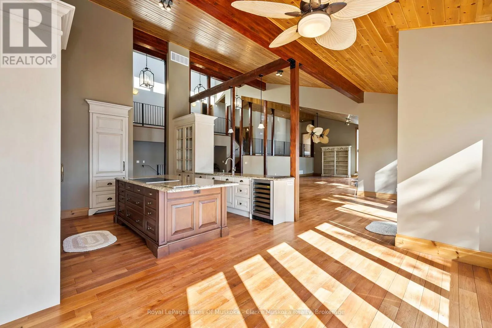 Cross Streets: PARKERS PT ROAD. ** Directions: PARKERS PT ROAD TO ROAD 3200. Nestled on a private 3.2 acre lot with 540 feet of shoreline on Lake Muskoka, this stunning property is built for family, entertaining, and year-round enjoyment. The 6,432 + sq. ft. cottage has 6 bedrooms, 5 bathrooms, and endless space for relaxing. Natural light pours through the wall-to-wall windows, with expansive living areas on both the main and lower levels, the main floor is anchored by a gorgeous stone wood fireplace, while the basement living area features a stone propane fireplace. The kitchen is a chefs dream, with a Sub-Zero fridge/freezer, KitchenAid island cooktop, double oven, and bar fridge. Theres even a cigar/TV lounge for cozy nights in. Step outside to a wrap-around patio with a built-in Viking BBQ, perfect for summer nights by the lake. A 3-season sunroom offers a peaceful spot to take in the views. Upstairs, the primary suite is a retreat of its own complete with a fireplace, walk-in closet, private deck, and spa-like ensuite with jacuzzi and glass shower. With a bunkie, two-storey garage, and plenty of privacy, this is more than just a cottage its Muskoka living at its finest. (id:27476)