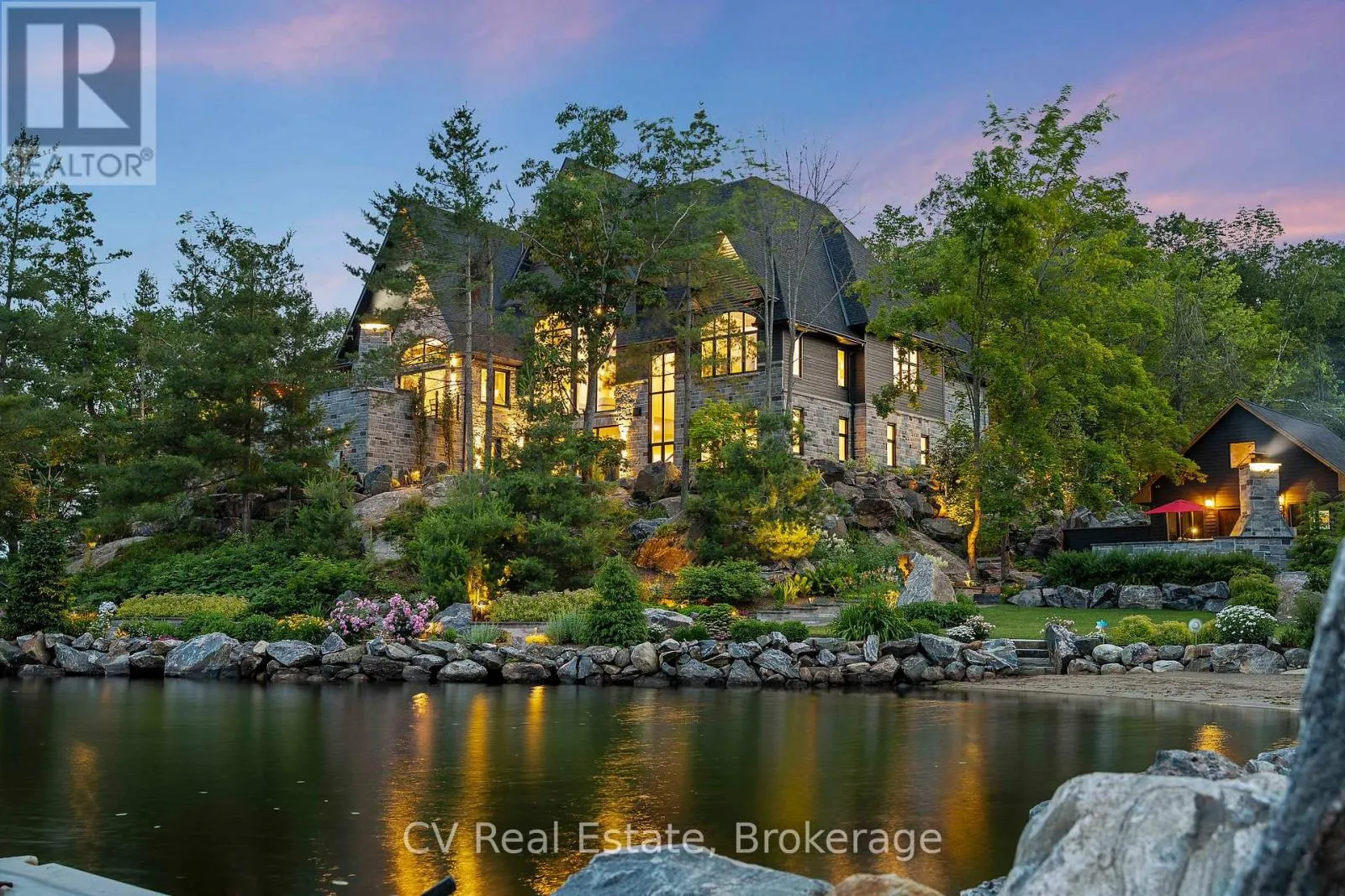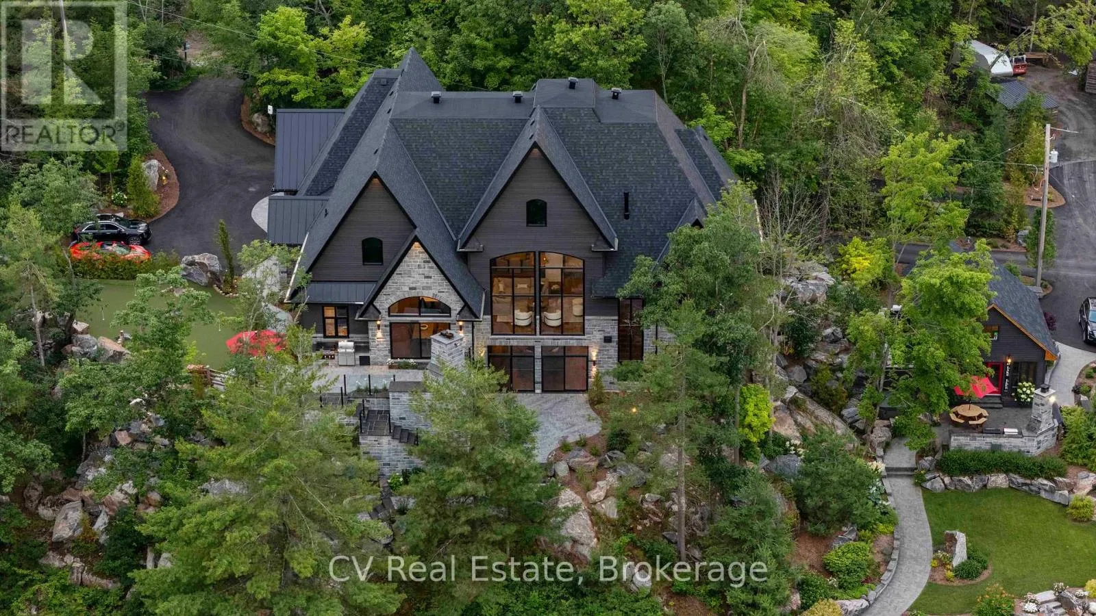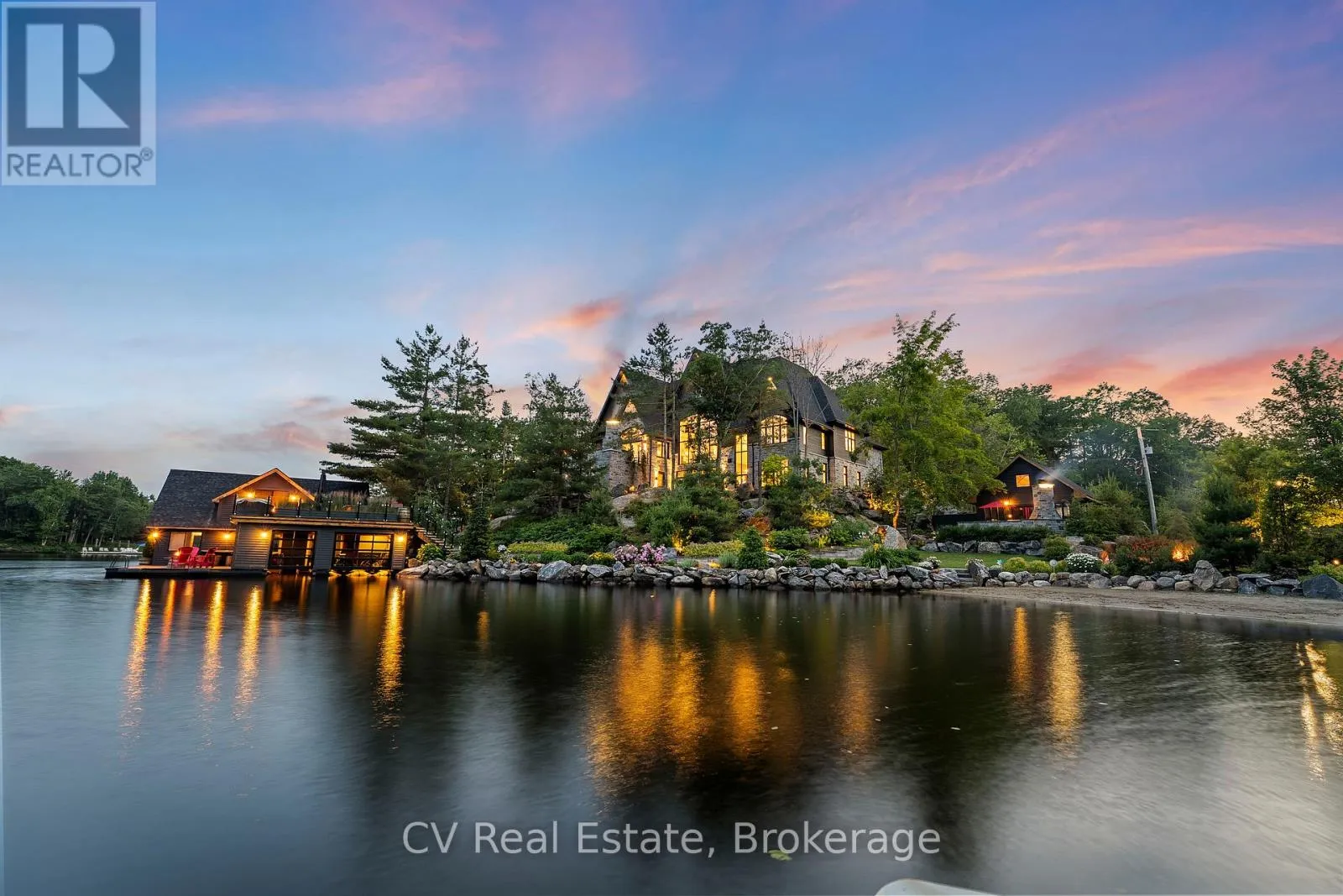 Cross Streets: Muskoka rd 169 & Narrows & S Sunset Bay rd. ** Directions: Muskoka rd 169 - Narrows Rd - S Sunset Bay Rd - Turn right onto Rd 2900, property near end of the road. The Pinnacle of Muskoka Luxury: A Private Lakefront Estate! Discover the ultimate Muskoka lifestyle on 2.83 acres with 270 feet of pristine Lake Muskoka shoreline and an additional 420 feet of North-side waterfront. This exceptional compound features a magnificent main residence, four-slip boathouse, refined four-season bunkie and every high-end amenity imaginable, fully furnished with brand-new designer-selected pieces. The main-level great room impresses with soaring 18-foot vaulted ceilings, a dramatic stone accent wall with fireplace, and striking hardwood beam details. The chef's kitchen is a masterpiece, featuring an 11-foot island, premium appliances, walk-in pantry, hidden in-cabinet fridge, bar fridge, and ice maker. The upper level primary suite offers stunning lake views, soaring ceilings, a spa-inspired bathroom with in-floor heating, and a 200 sq ft walk-in closet. The lower level is designed for entertaining with 10-foot ceilings, full bar, wine cellar, gym, billiards room and walkout to the lake. The four-season bunkie, incl. 2 bedrooms + loft, provides an elevated guest retreat with stone patio, outdoor fireplace and 6 person hot tub. The boathouse anchors the waterfront experience with 4 boat slips, three hydraulic lifts, and two Sea-Doo lifts. Its rooftop deck is an entertainer's paradise with a bar, pizza oven and TV on an elevator lift, perfect for gatherings and sunsets. Additional highlights include a professional six-hole putting green, heated three-car garage, flagstone steps to the water, paved parking for up to 20 vehicles, a motorcoach pad with hookups, outdoor fireplaces and meticulously landscaped grounds with irrigation and over 100 exterior lights. This rare and magnificent estate represents the essence of Muskoka luxury: a private sanctuary, a premier entertaining destination and an incomparable retreat just a short drive from the city, where every detail has been thoughtfully designed for elegance, comfort and year-round enjoyment. (id:27476)