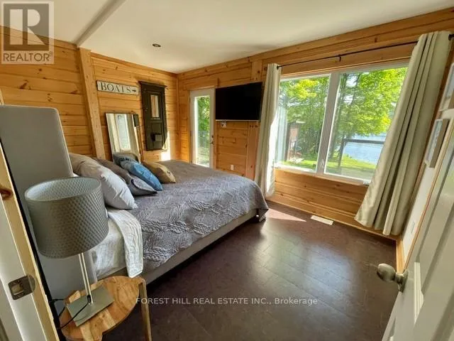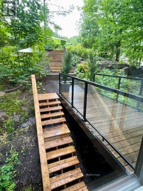 Hwy 169 to Hill St to #170 Offering 3+1 bedrooms & 2 bathrooms fully furnished lake Muskoka dream home, the interior is highlighted by a bright, open-concept layout with impressive 22-foot ceilings & expansive windows that frame stunning lake Muskoka views & fill the space with natural light. The kitchen is thoughtfully designed for both everyday living & entertaining, featuring granite surfaces, stainless steel appliances, & a large island with plenty of seating. A wood-burning fireplace anchors the main living space, creating a warm & inviting atmosphere throughout the seasons. Upstairs, a private composite balcony with glass railings provides a quiet place to unwind & take in the surrounding landscape. The primary bedroom includes a walkout to the rear deck & a rough-in for a future ensuite. Recent updates completed in 2024 add even more value, including a newly finished bathroom on the ground level & a newly installed steel staircase, offering both function & a modern aesthetic. The outdoor setting has been extensively enhanced with professionally designed landscaping by a top-tier firm, creating a polished yet natural environment. Multiple stone patio areas & a fire pit provide ideal spaces for entertaining or relaxing outdoors, all surrounded by mature trees for added privacy. The waterfront is exceptionally user-friendly, with a shallow sandy entry ideal for families, along with a Dock-in-a-Box system for convenient access to Lake Muskoka & its vast boating network. A matching bunkie at the water's edge offers additional space for guests or a quiet escape. Located just minutes from Muskoka Bay Resort, as well as the shops, dining, & waterfront attractions of Gravenhurst, this property offers both seclusion & convenience-an ideal setting to enjoy everything Muskoka has to offer. (id:27476)