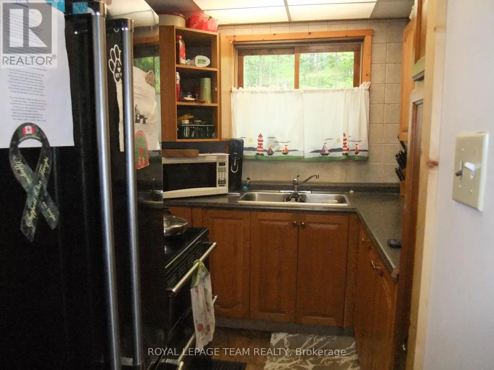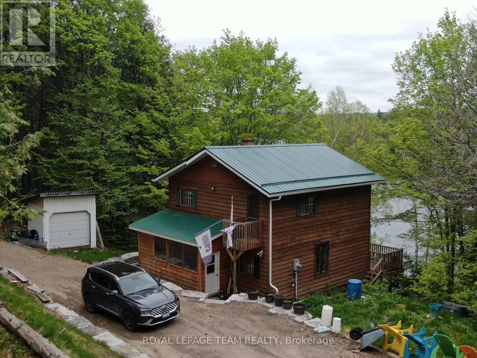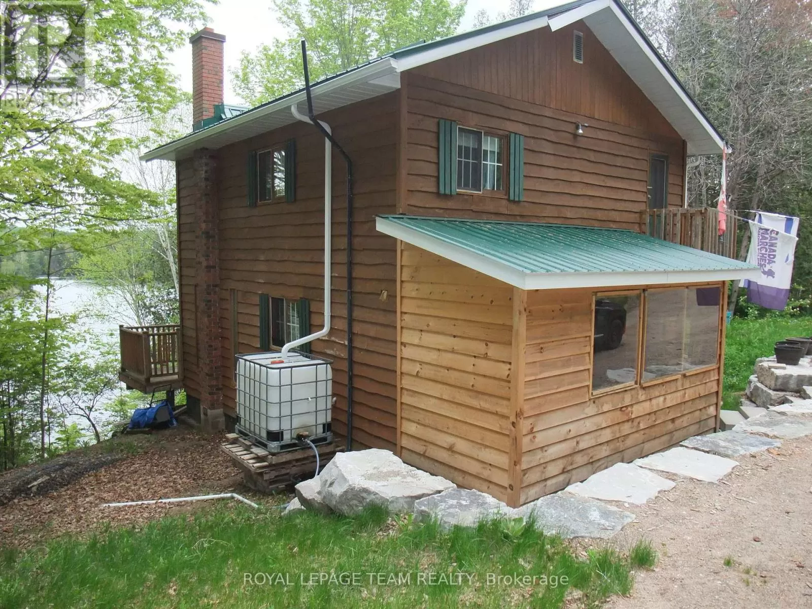 Cross Streets: Matawatchan Road. ** Directions: From Renfrew follow Hwy 132/41 to Griffith where you take the Matawatchan Rd to just after the Centennial Lake Rd. Quail Trail is on your left with signs to guide you to #35. Here's your retreat on the mighty Madawaska River! Fully winterized building just steps away from the water without the waterfront taxes as OPG owns the waterfront and allows adjacent owners to install docks etc. This full two storey building features 3 bedrooms in the loft area that features a small balcony off the master bedroom. The galley kitchen is fully functional beside the dining area where you'll find a very efficient air tight wood stove that supplements the forced air electric furnace. Out front is a lovely full width raised deck looking out at the riverfront. A very deep drilled well ensures plenty of clean water and a septic system makes this a very desirable retreat, and this is currently the lowest priced turn-key property in the area so don't hesitate to book your showing. (id:27476)