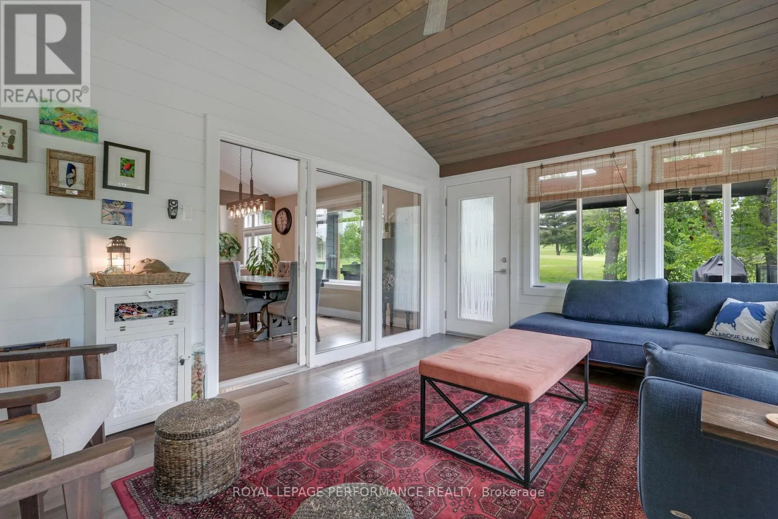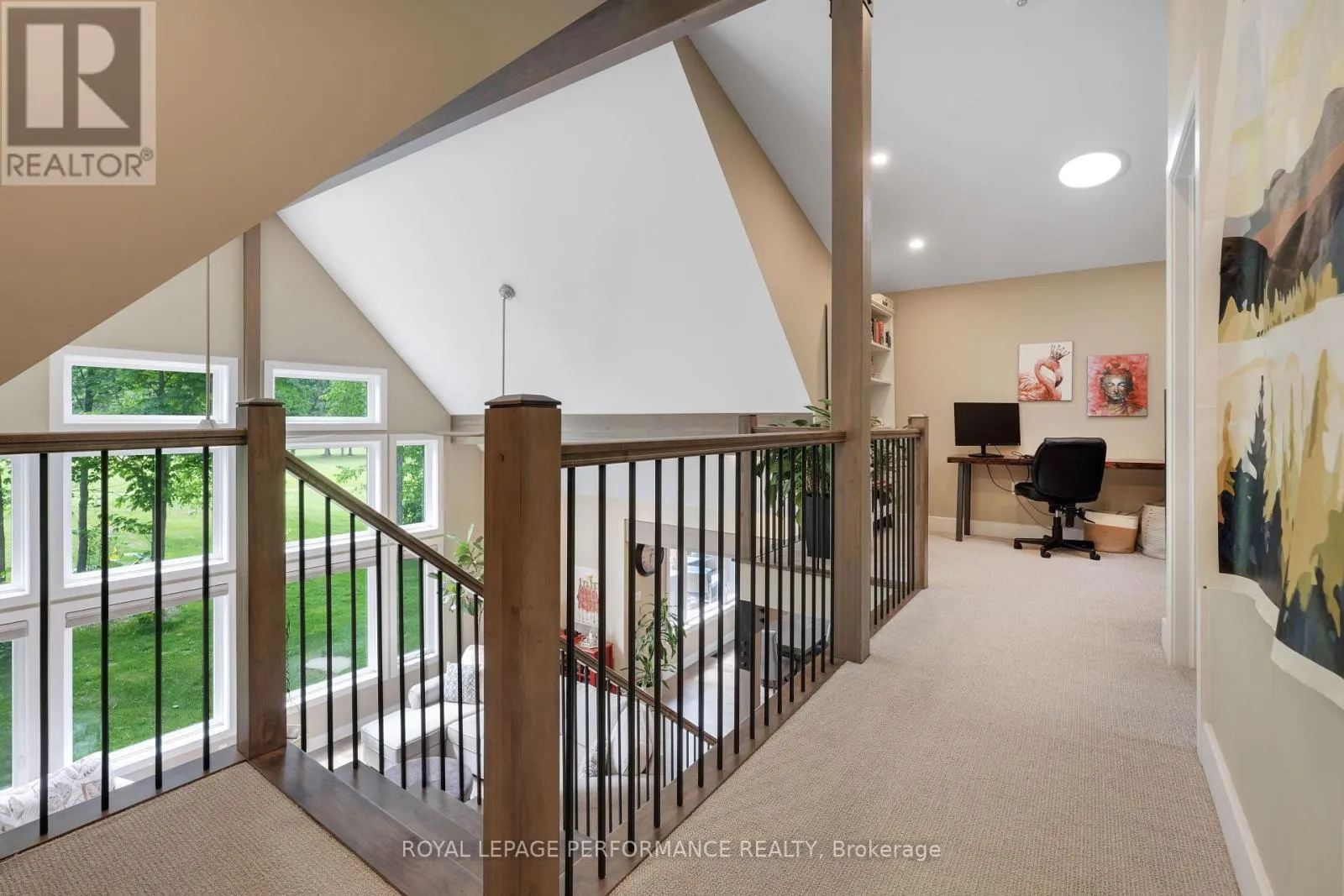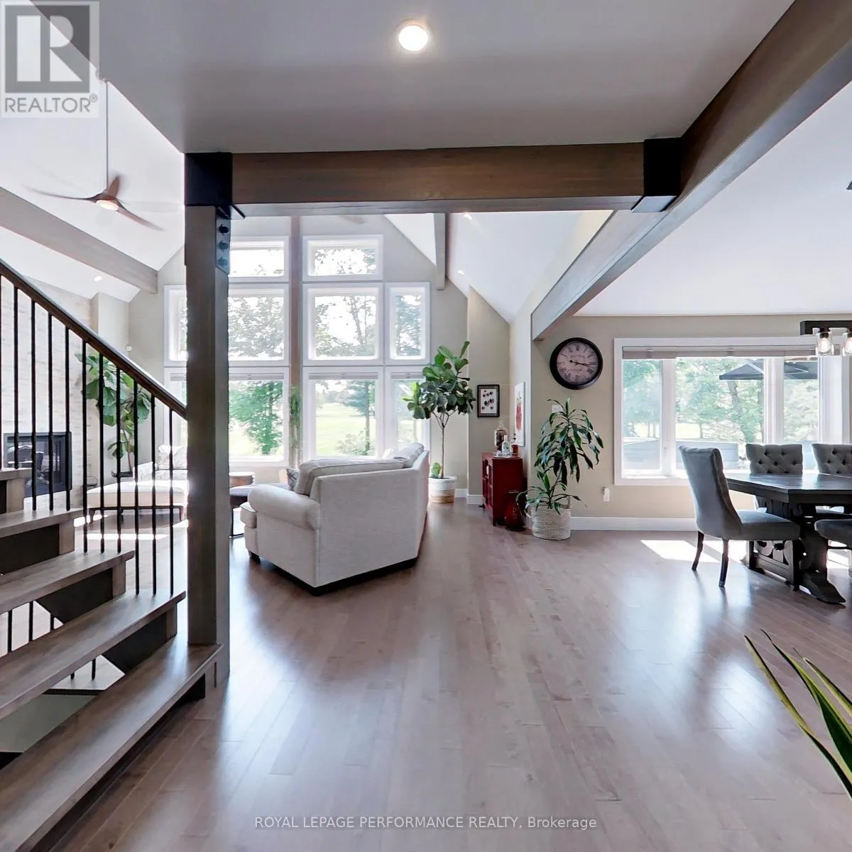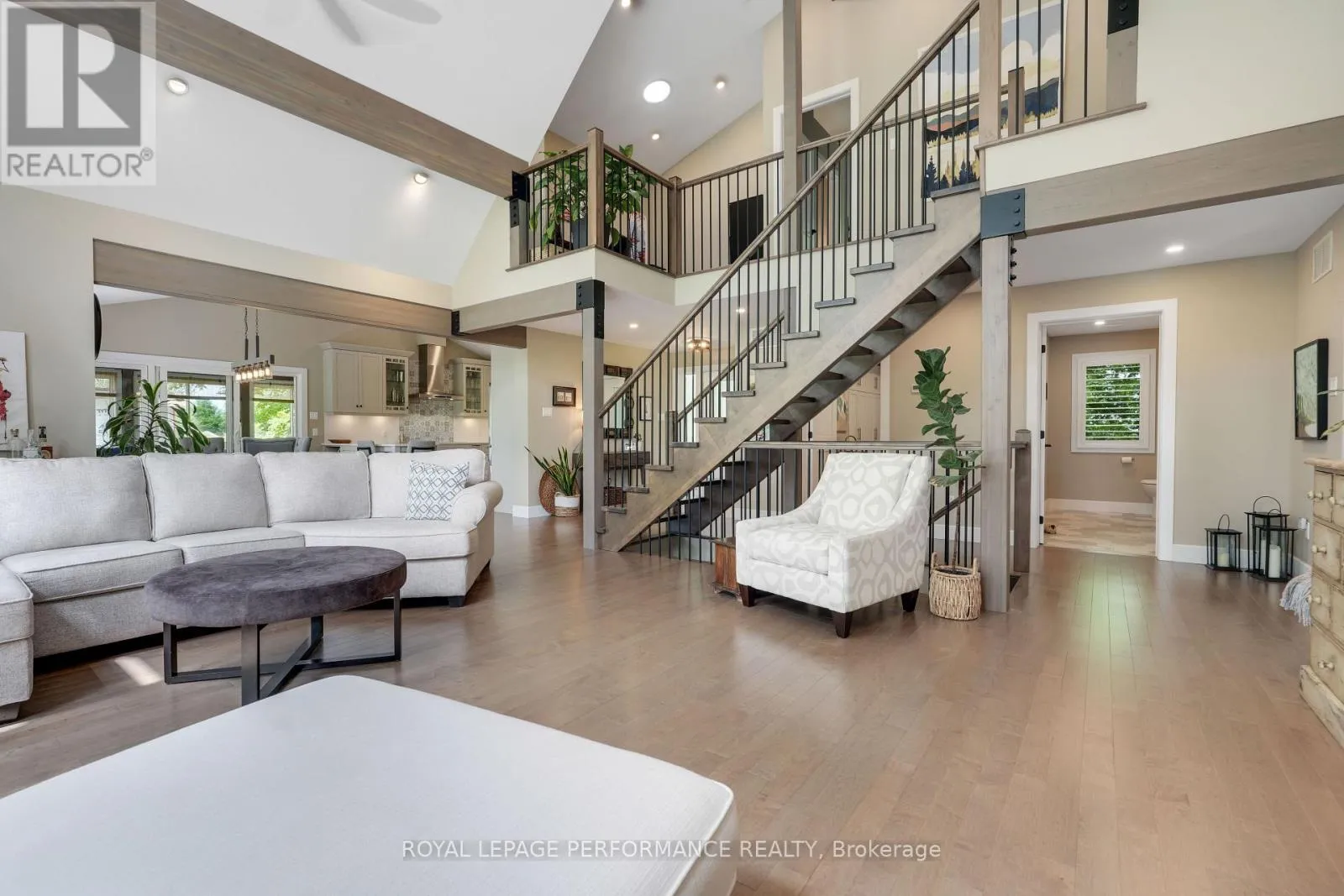 Cross Streets: Barryvale Rd. ** Directions: Queensway West , Exit # 194, then left onto Calabogie Rd (Hwy 508), Left at Calabogie Village onto Hwy 511, then right onto Barryvale Rd, then right onto Morning Flight Court. Stunning open concept executive modern bungalow w/ loft and vaulted ceilings, backing on the Highlands Golf course. This fabulous custom home built in 2021, has 2 + 1 bedrm, 4 bathrm, including main floor powder room & laundry room. Through the front door entrance hall, you are greeted into a spacious, bright, inviting modern open concept living room, w/ high vaulted beamed ceiling, floor to ceiling fireplace, and open floor plan leading right into the dining area, next to the modern upscale kitchen w/ quarts counter tops, peninsula bar w/seating, adjacent to the 4 season sun room w/ fireplace, leading out to a large deck overlooking the golf course. Enjoy the view from the deck with the new hot tub, BBQ, outdoor furniture & automatic roll-out awning. Back inside, off the living room, is the main floor primary bedroom w/ vaulted ceiling, large windows, walk-in closet and large ensuite with double sinks & double glass shower. Up in the loft, you will find an office/den plus a guest bedrm w/ vaulted beamed ceiling & large 3 piece bath rm. The downstair has a fully finished bright basement, with in-floor heating, 3rd bedrm which is currently used as a gym w/ closet space, a 3 piece bathrm, wine cellar / cold room, storage room, plus access to large insulated 2 car indoor garage. Outdoors you will find a back-up generator, heated stand alone garage, + a separate large garden shed. When the stars are out, step out in the front yard where you can cozy up for fireside chats with friends. This gem is situated on a quiet cul-de-sac close to Calabogie Lake, minutes from restaurants, grocery store, pharmacy, Calabogie Peaks ski slopes & Calabogie race track, numerous Crown trails, K&P, ATV & Snowmobile touring trails. 1 hr outside of Ottawa, this is country living at its best, with paved municipal year round maintained roads, & internet +++. Most furnishing etc. are available for sale, refer to attached list for details. A little slice of paradise awaits the lucky one! (id:27476)