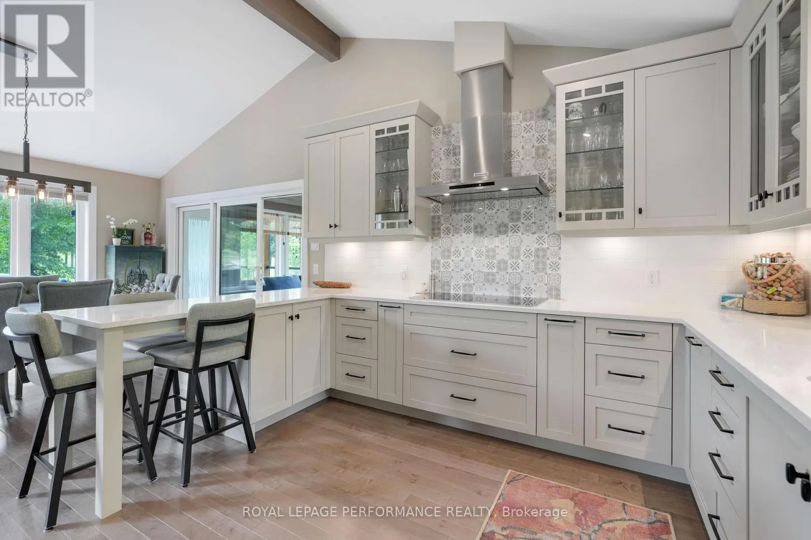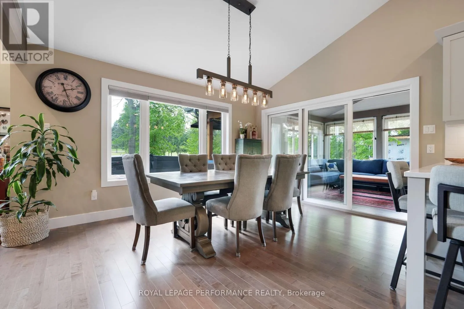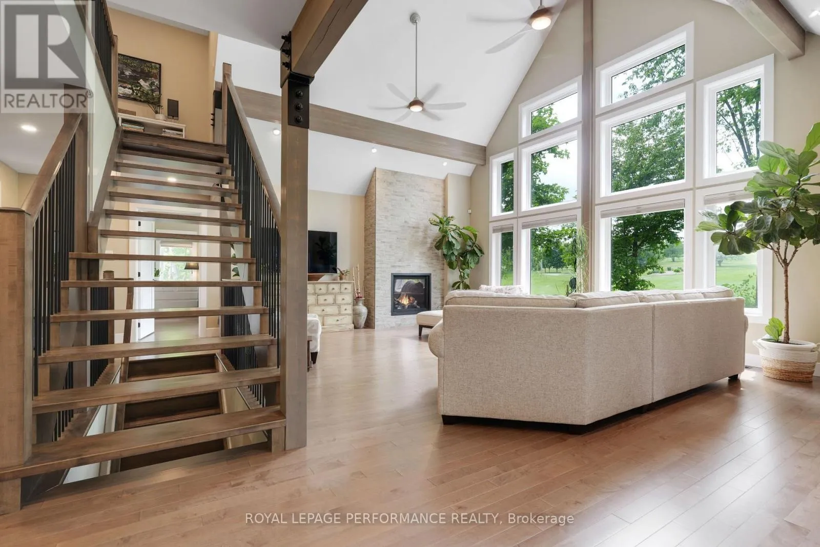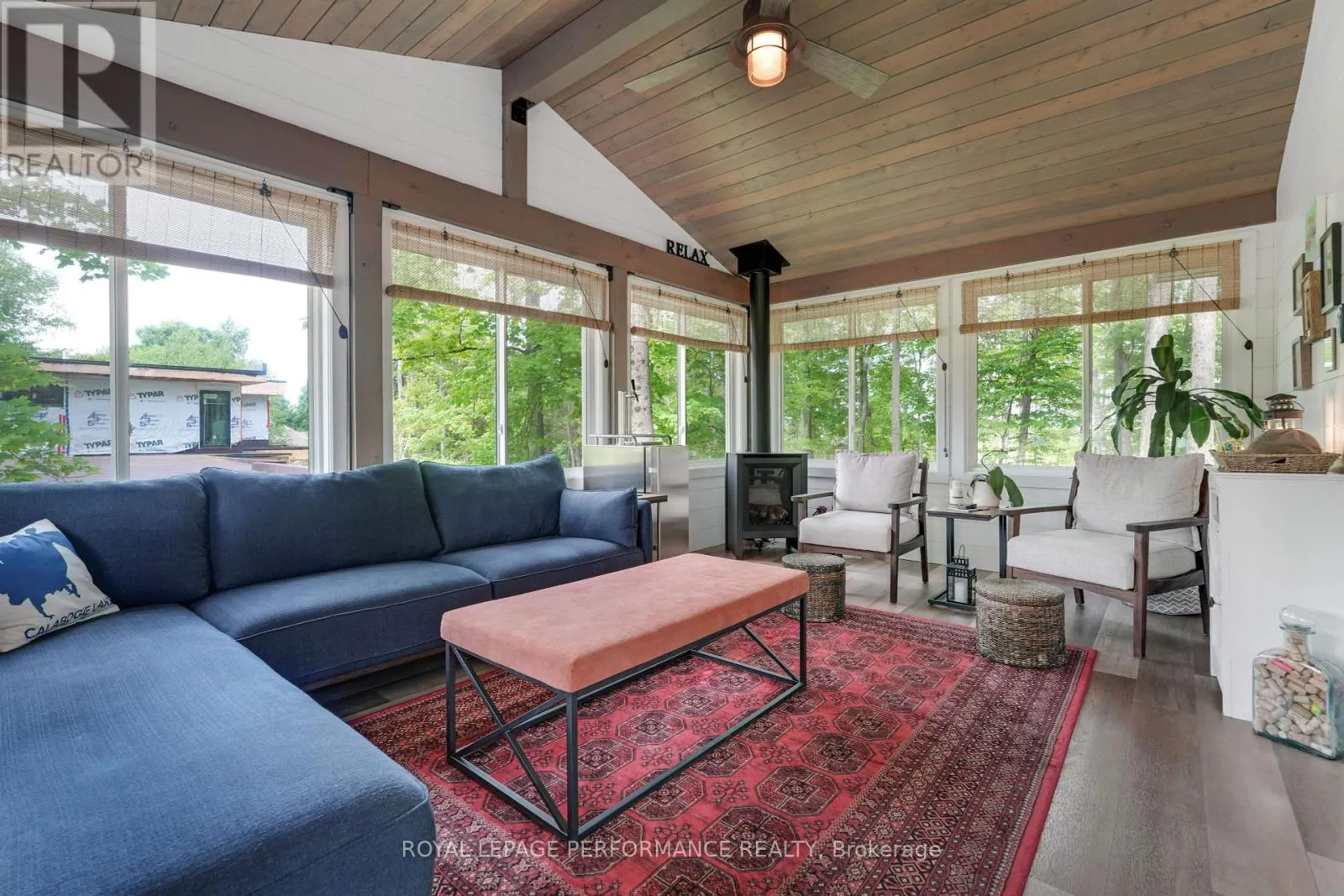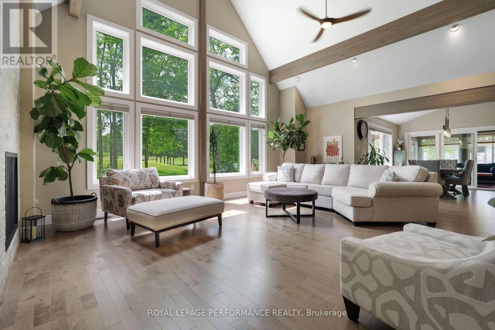 Cross Streets: Barryvale Rd. ** Directions: Queensway West , Exit # 194, then left onto Calabogie Rd (Hwy 508), Left at Calabogie Village onto Hwy 511, then right onto Barryvale Rd, then right onto Morning Flight Court. Stunning open concept executive modern bungalow w/ loft and vaulted ceilings, backing on the Highlands Golf course. This fabulous custom home built in 2021, has 2 + 1 bedrm, 4 bathrm, including main floor powder room & laundry room. Through the front door entrance hall, you are greeted into a spacious, bright, inviting modern open concept living room, w/ high vaulted beamed ceiling, floor to ceiling fireplace, and open floor plan leading right into the dining area, next to the modern upscale kitchen w/ quarts counter tops, peninsula bar w/seating, adjacent to the 4 season sun room w/ fireplace, leading out to a large deck overlooking the golf course. Enjoy the view from the deck with the new hot tub, BBQ, outdoor furniture & automatic roll-out awning. Back inside, off the living room, is the main floor primary bedroom w/ vaulted ceiling, large windows, walk-in closet and large ensuite with double sinks & double glass shower. Up in the loft, you will find an office/den plus a guest bedrm w/ vaulted beamed ceiling & large 3 piece bath rm. The downstair has a fully finished bright basement, with in-floor heating, 3rd bedrm which is currently used as a gym w/ closet space, a 3 piece bathrm, wine cellar / cold room, storage room, plus access to large insulated 2 car indoor garage. Outdoors you will find a back-up generator, heated stand alone garage, + a separate large garden shed. When the stars are out, step out in the front yard where you can cozy up for fireside chats with friends. This gem is situated on a quiet cul-de-sac close to Calabogie Lake, minutes from restaurants, grocery store, pharmacy, Calabogie Peaks ski slopes & Calabogie race track, numerous Crown trails, K&P, ATV & Snowmobile touring trails. 1 hr outside of Ottawa, this is country living at its best, with paved municipal year round maintained roads, & internet +++. Most furnishing etc. are available for sale, refer to attached list for details. A little slice of paradise awaits the lucky one! (id:27476)