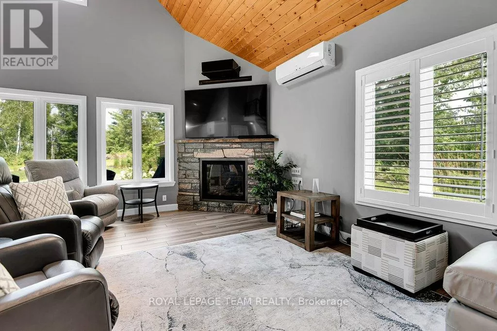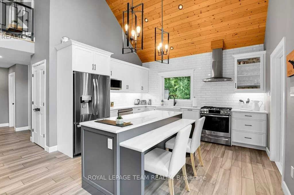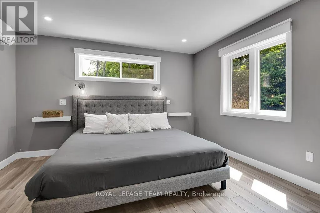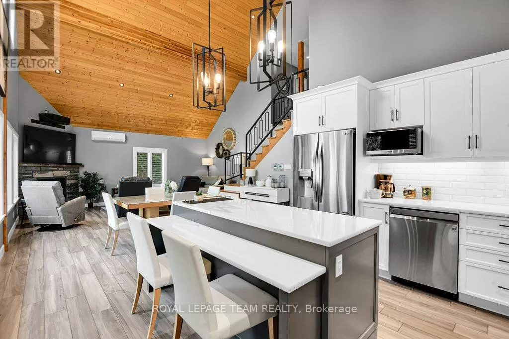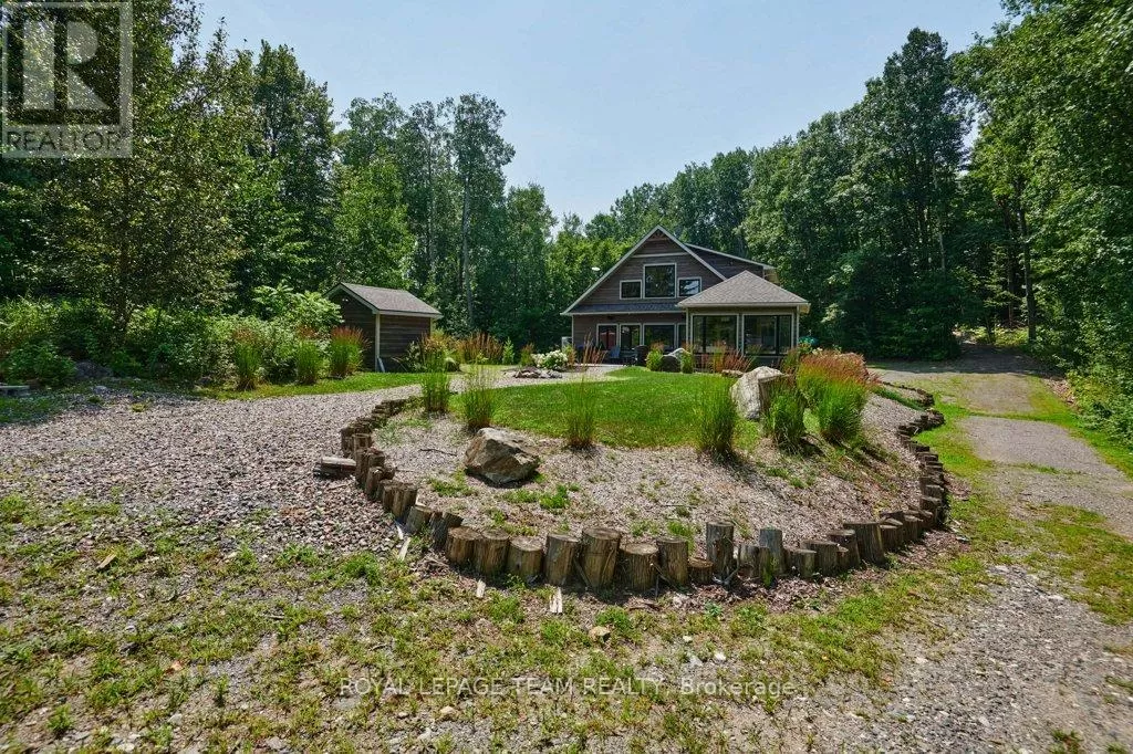 Cross Streets: Calabogie road and Ferguson lake road. ** Directions: Calabogie road (highway 508) to Ferguson lake road. Property is 3.5 kilometers on the right. Ferguson Lake - 4 Bed - 2.5 Bath - 179' Waterfront - 5 Acres. Stunning waterfront home on beautiful Ferguson Lake, set on 5 private acres with 179' of shoreline and a gentle slope to the water. A 50' dock leads to 6.5' of clear water-ideal for swimming, paddling, and boating. This 4-bedroom, 2.5-bath home offers an open-concept layout with vaulted ceilings and spectacular lake views. The custom kitchen features high-end appliances and seamlessly flows into the bright living and dining areas, making it perfect for entertaining. Enjoy the sunroom year-round, taking in peaceful waterfront views. Enjoy a ground-floor primary bedroom, laundry facilities, and radiant floor heating for comfort. All bedrooms are generously sized and come completely furnished with king-sized beds. Just minutes to Calabogie Peaks for skiing, with local restaurants, shops, and services nearby - only about an hour from Ottawa. Don't miss this rare opportunity to own a slice of paradise on Ferguson Lake! (id:27476)