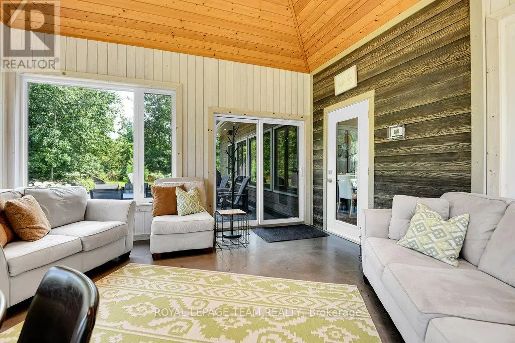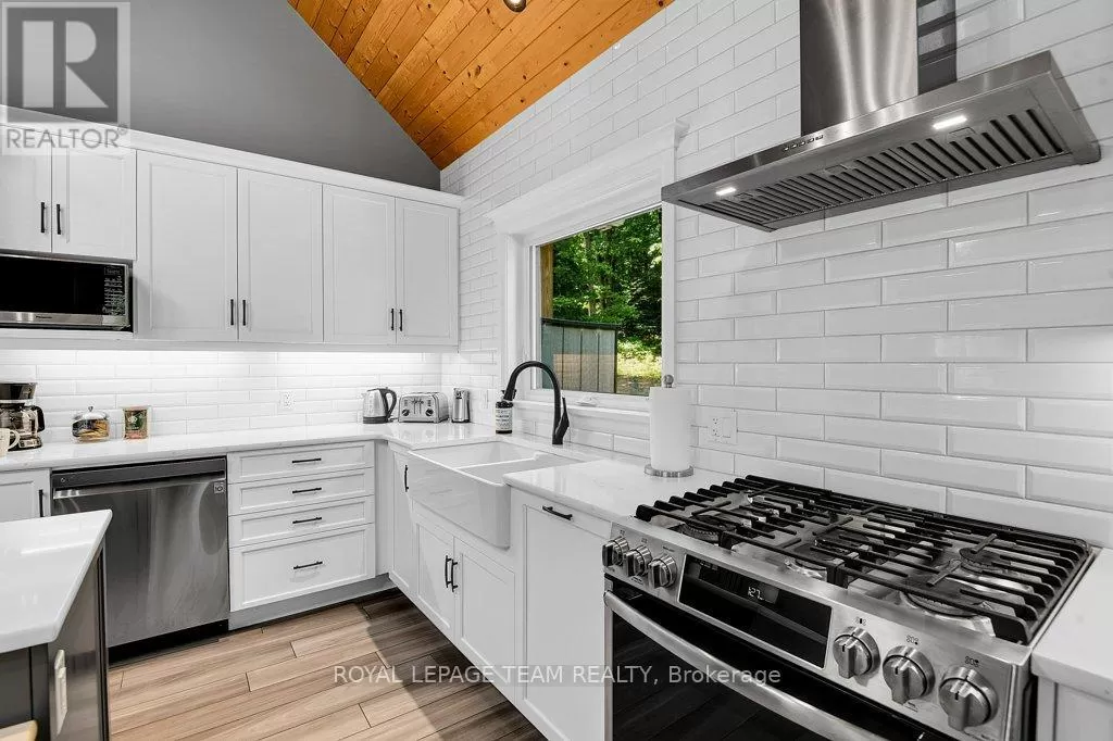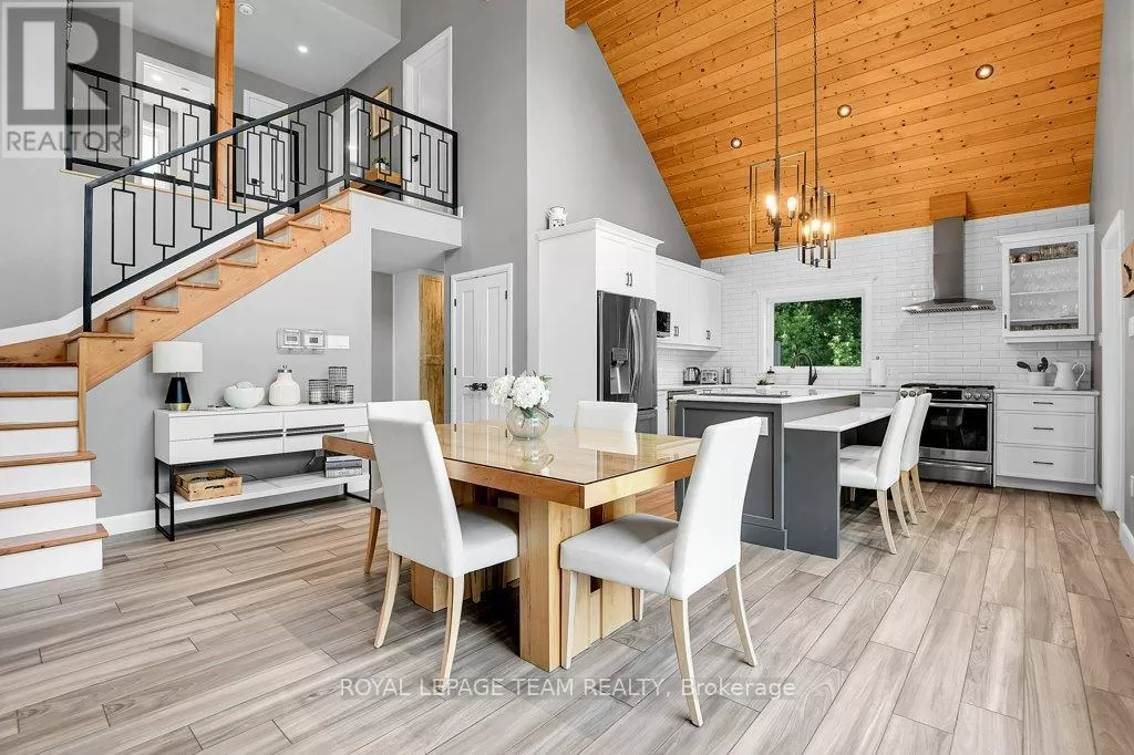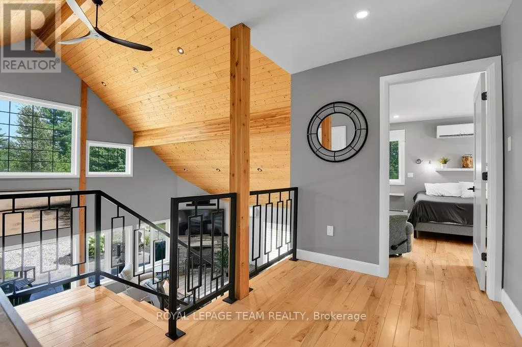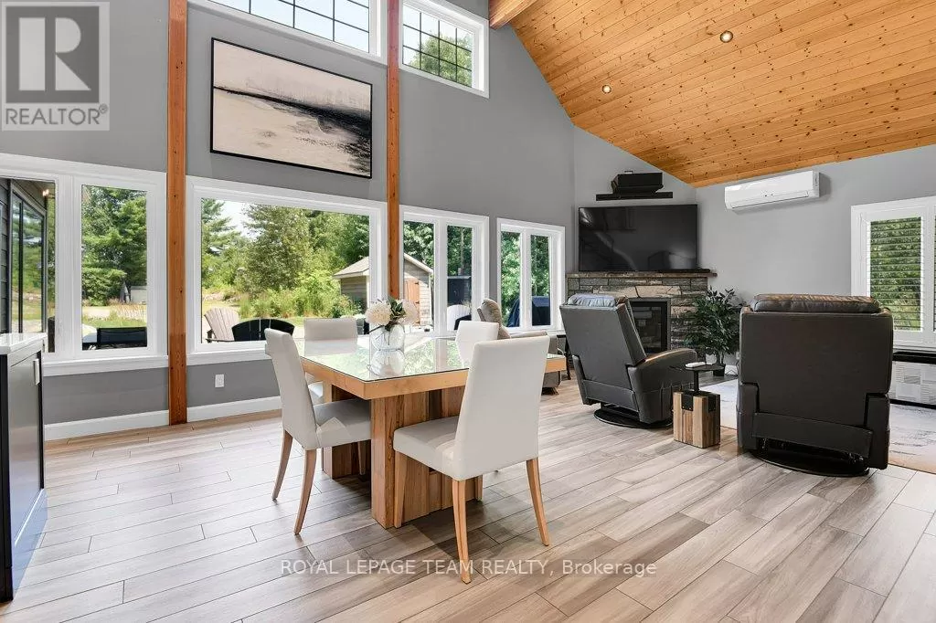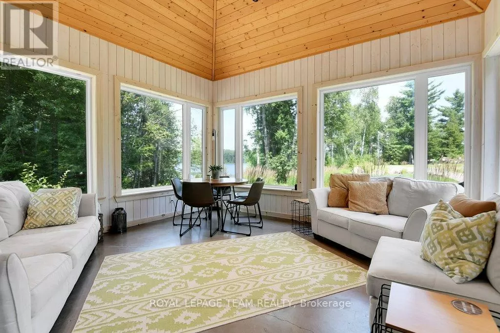Cross Streets: Calabogie road and Ferguson lake road. ** Directions: Calabogie road (highway 508) to Ferguson lake road. Property is 3.5 kilometers on the right. Ferguson Lake - 4 Bed - 2.5 Bath - 179' Waterfront - 5 Acres. Stunning waterfront home on beautiful Ferguson Lake, set on 5 private acres with 179' of shoreline and a gentle slope to the water. A 50' dock leads to 6.5' of clear water-ideal for swimming, paddling, and boating. This 4-bedroom, 2.5-bath home offers an open-concept layout with vaulted ceilings and spectacular lake views. The custom kitchen features high-end appliances and seamlessly flows into the bright living and dining areas, making it perfect for entertaining. Enjoy the sunroom year-round, taking in peaceful waterfront views. Enjoy a ground-floor primary bedroom, laundry facilities, and radiant floor heating for comfort. All bedrooms are generously sized and come completely furnished with king-sized beds. Just minutes to Calabogie Peaks for skiing, with local restaurants, shops, and services nearby - only about an hour from Ottawa. Don't miss this rare opportunity to own a slice of paradise on Ferguson Lake! (id:27476)