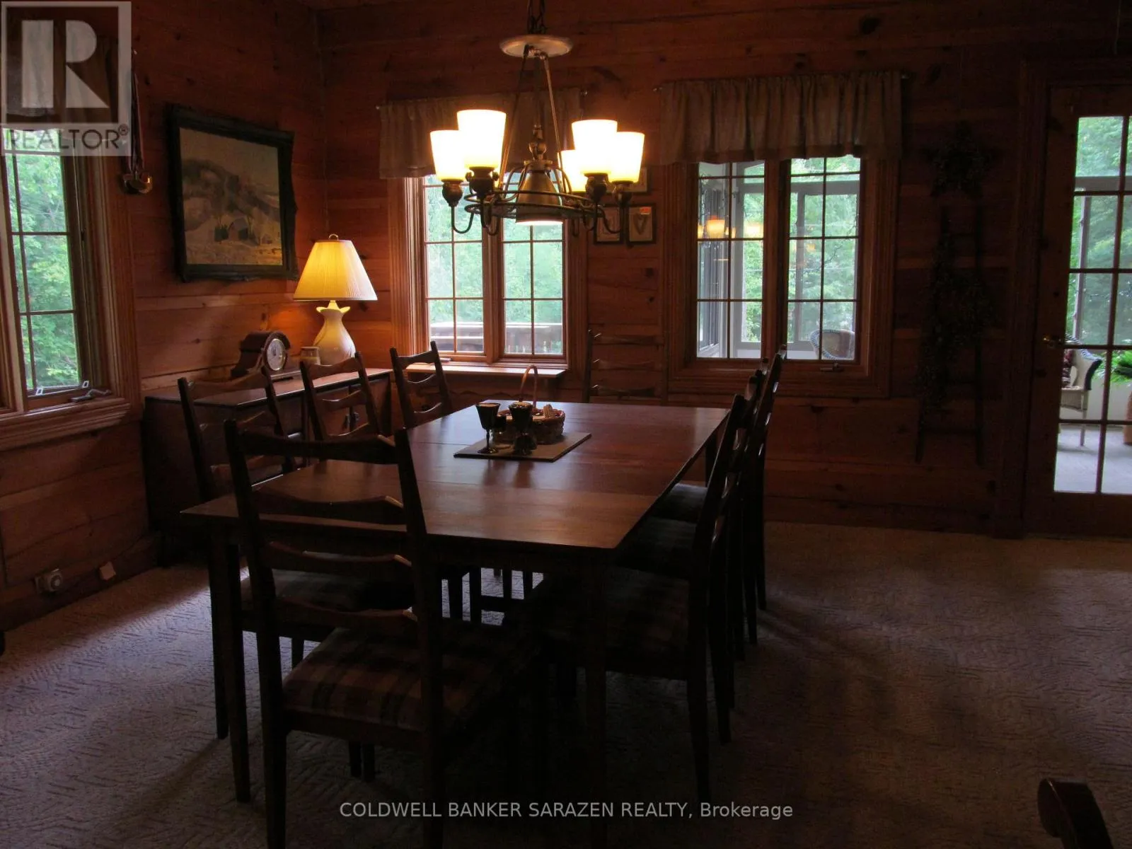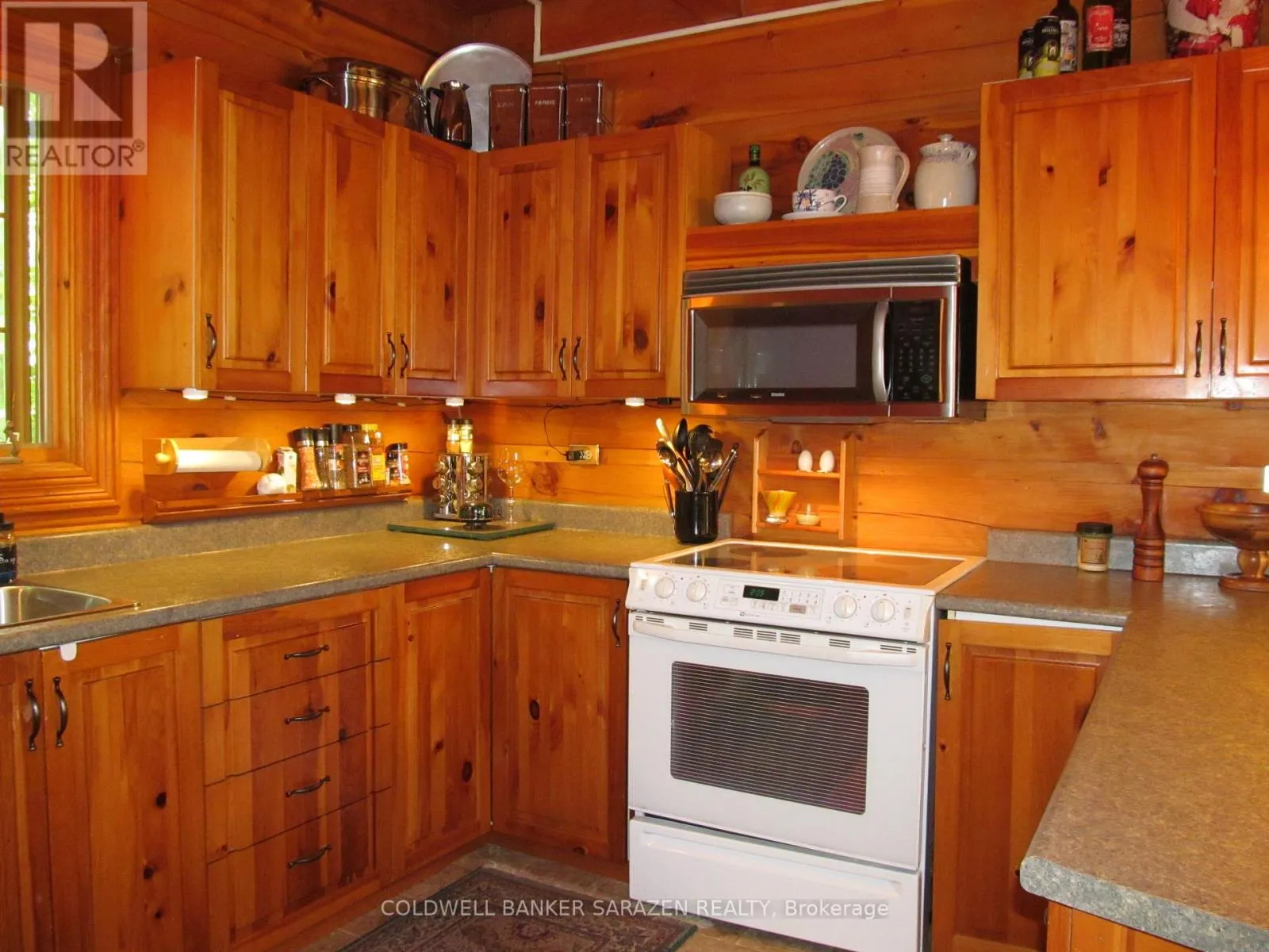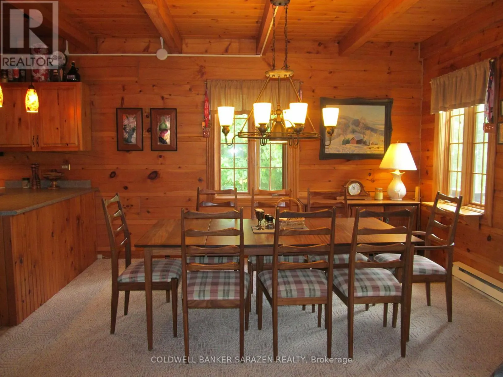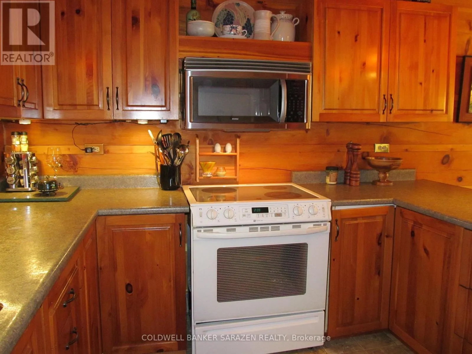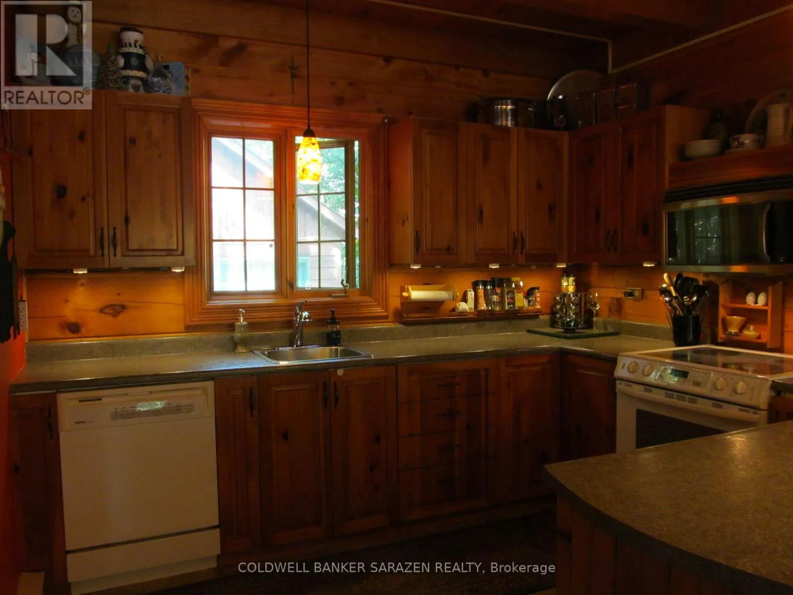 Cross Streets: Cty Rd 508. ** Directions: Hwy 417 take Calabogie Rd (Cty 508) thru to right turn onto Viewmount Dr. just before the ski hill. Property is on the right. True Alpine chalet style log home located in the Peaks Village Calabogie with deeded access to pristine Calabogie Lake five minutes to the ski hill, golf course and lake this is an ideal lifestyle investment. This fully furnished three bedroom, open concept living/dining/kitchen area has superbly maintained pine floors, walls and ceilings. There is a stone faced fireplace in the living area to cozy up with a warm drink after a day of outdoor winter activities or enjoy summer days in the sun drenched screened sunroom (or bird watching haven!). Tastefully decorated and painted in neutral tones, smoke-free. Spacious kitchen with loads of storage and breakfast bar, spacious family room has tons of potential for games/exercise or extra sleeping area is enhanced by a wood burning stove. Main floor laundry also includes a two piece bath for your convenience. The detached oversized garage baseboard heated with work bench is perfect storage for the skis, snow machines, canoes/kayaks or even a car! Snowboard, snowshoe, cross-country ski on winding back country trails, relax at the beach, golf, take tranquil voyages by canoe on the lake, hike the mountain wilderness trails dine at a lakeside restaurant - the potential for enjoyment is unlimited. Worth seeing! Worth owning for your personal use or as a vacation rental. (id:27476)