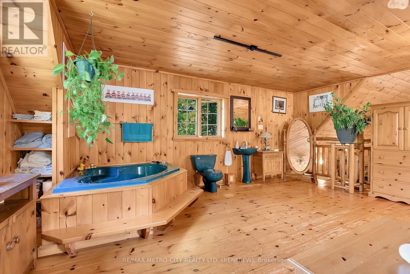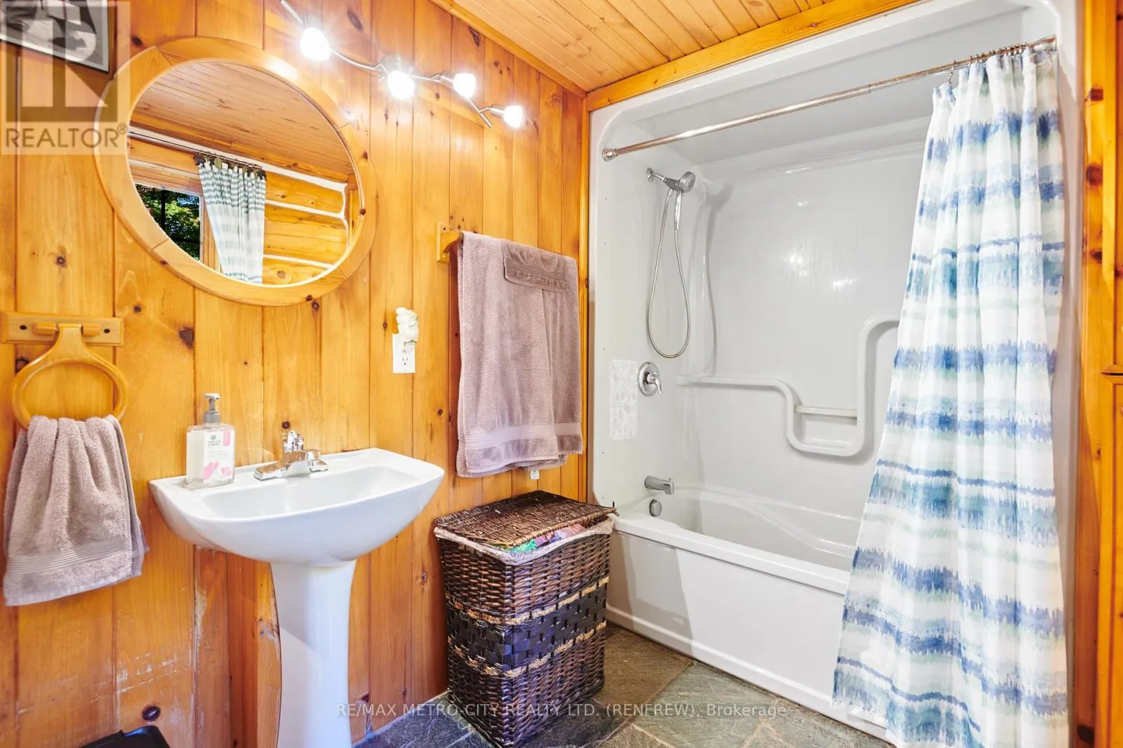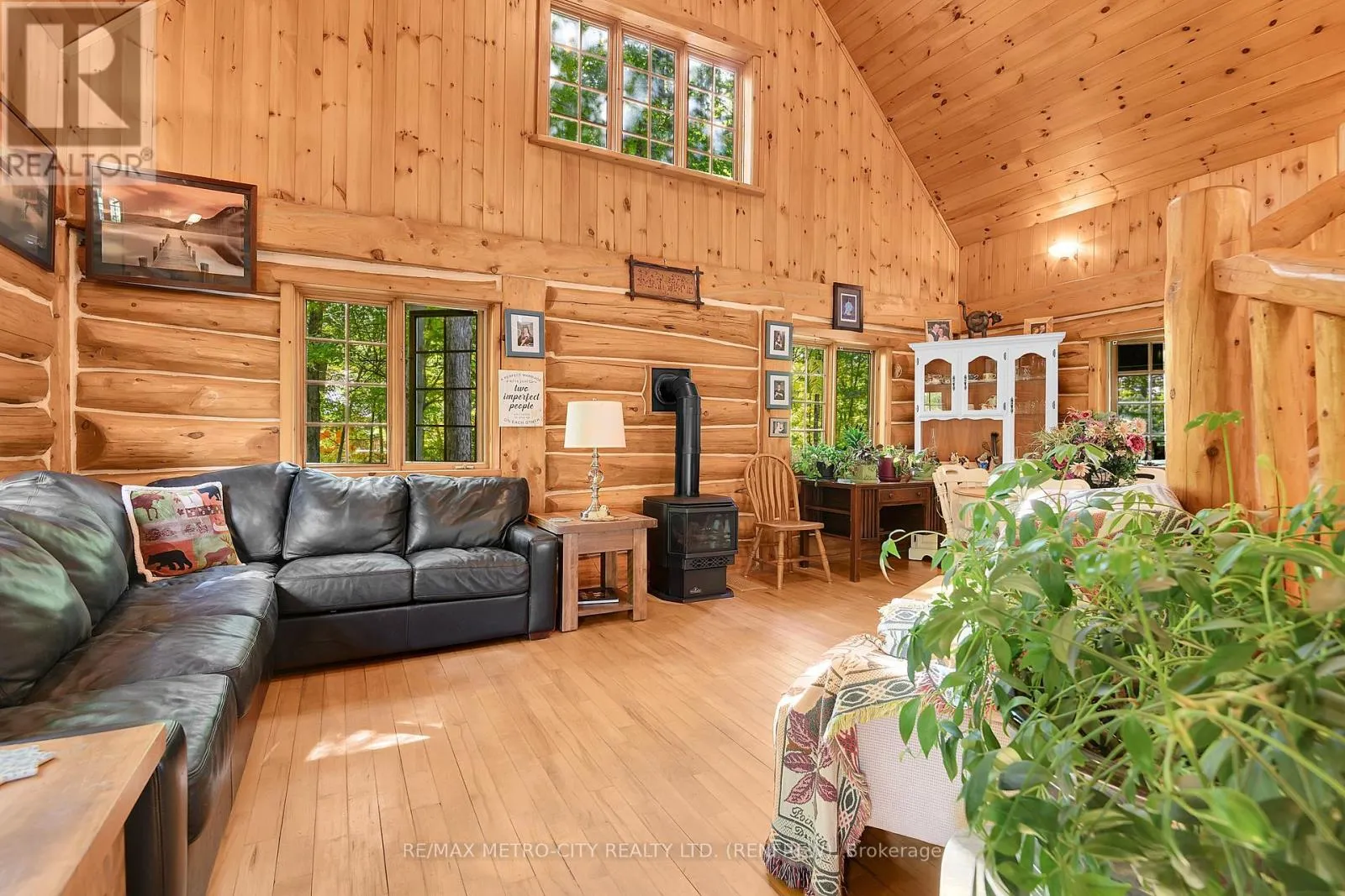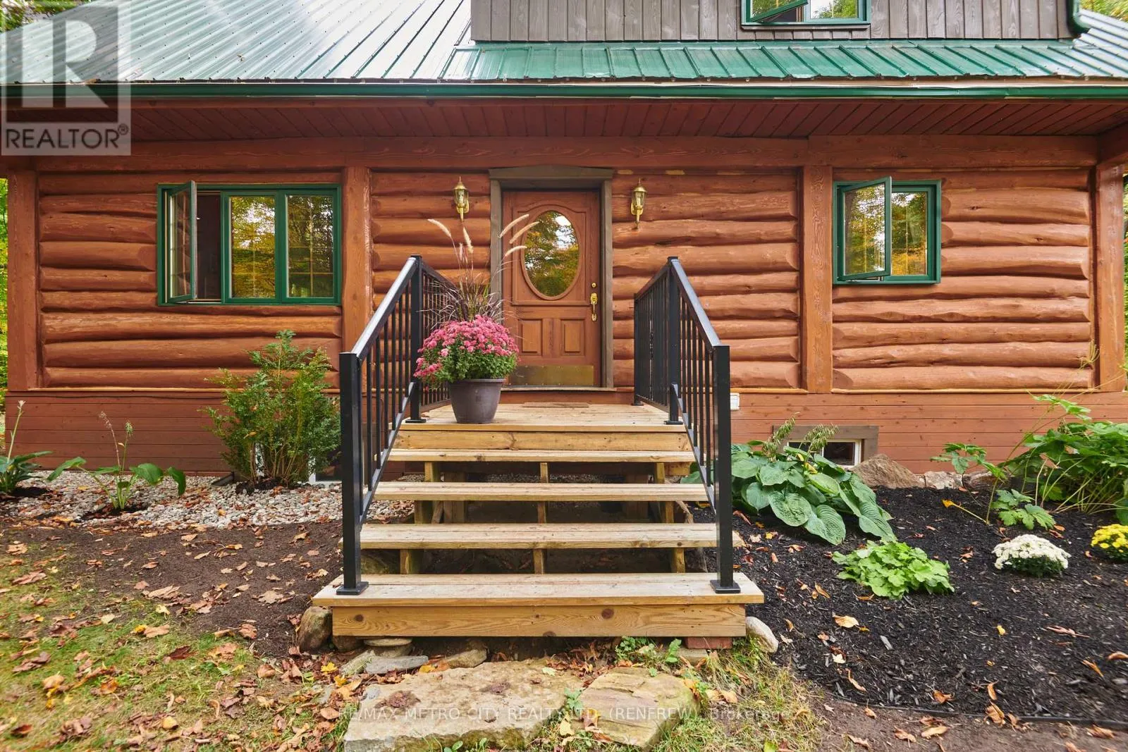 Cross Streets: Bagot Long Lake Rd/HWY 511. ** Directions: Take HWY 511 to Bagot Long Lake Rd, turn onto Bagot Long Lake, follow to Scharf Lane, turn onto Scharf Lane, follow to home of the right. Welcome to 109 Scharf Lane a charming, custom built cedar log home with exposed posts and beams situated on just under 4 private acres, only minutes from the village of Calabogie. Located on a quiet, year-round maintained road, this property offers the perfect blend of privacy, comfort, and convenience. Step inside to an open-concept main floor featuring a bright eat-in kitchen, a formal dining area, and a cozy living room warmed by a gas fireplace and opened up by vaulted ceilings. The main floor also features a full bath equipped with laundry. A central curved stairway leads you to the primary suite, complete with bedroom and ensuite bath, creating a peaceful retreat. The finished walkout basement expands your living space with a second bedroom, a welcoming family room highlighted by an airtight woodstove, and plenty of storage options. Enjoy the convenience of never running out of power with a back-up Generac Propane Generator. Outdoors, enjoy both a covered front porch and a screened-in porch, ideal for relaxing and taking in the natural surroundings. Whether it's morning coffee, evening gatherings, or simply unwinding and enjoying evening sunsets, the outdoor living spaces enhance the charm of this log home. Perfect for year-round amenities, this home places you less than 15 minutes from Calabogie Peaks Ski Resort and Highlands Golf Course, with many lakes and rivers offering public access nearby, including Bagot Long Lake, only a 5 minute walk to the boat launch. Just 10 minutes into the village and an hour to Ottawa's west end, the location combines country tranquility with easy access to amenities. Winter road maintenance is private for Scharf Lane and costs $1,000 annually, this includes plowing of laneway and parking area of the home. (id:27476)