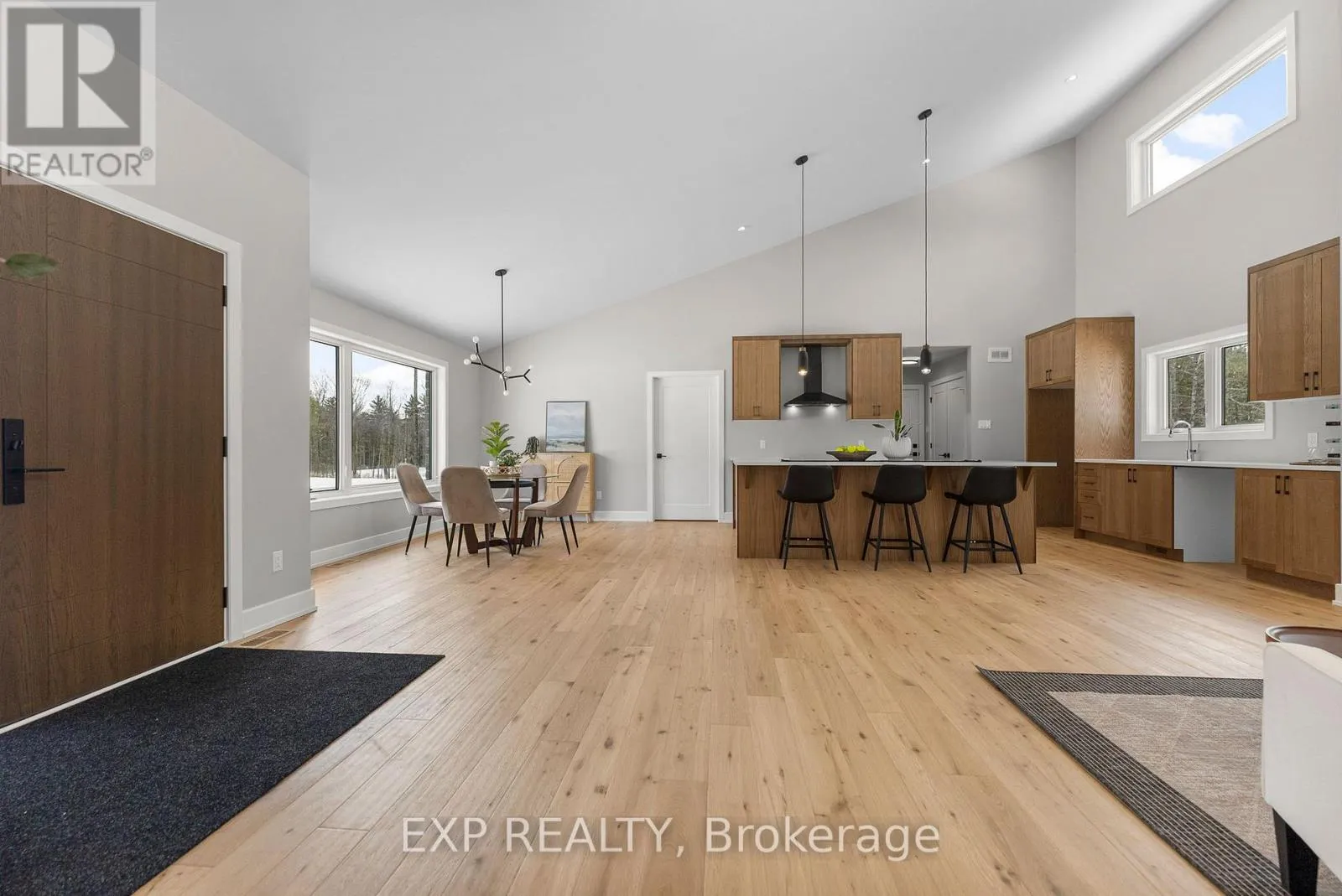 Cross Streets: Norton Road, Calabogie Road (Hwy 508). ** Directions: From Hwy 17 take Calabogie Road exit. Follow Calabogie road through Calabogie. Turn Right on Norton Road. Turn right on Longleaf Way. #57 will be on the left. Welcome to 57 Longleaf Way in the prestigious Granite Village community, where striking architecture meets elevated Calabogie living. Built by Neilcorp Homes, this newly constructed Limestone model offers 1,508 sq ft of beautifully designed living space, set on a private and scenic lot in one of the Ottawa Valley's most sought-after destinations. This home makes an immediate statement with its stunning modern mono-slope roof design and contemporary architectural lines. Quality is evident from the start, beginning with the high-end textured fiberglass entry door with multi-point locking system and continuing throughout the home. Inside, the open-concept kitchen and great room are enhanced by sloping ceilings and dramatic tall-wall windows, flooding the space with natural light and creating an airy, upscale atmosphere perfect for both everyday living and entertaining. Refined finishes and thoughtful design details carry throughout, delivering a seamless blend of style, comfort, and function. The layout is ideal for those seeking a sophisticated retreat or a full-time residence that embraces both modern design and connection to the surrounding landscape. Located in the heart of Calabogie, you'll enjoy a true four-season lifestyle-skiing at Calabogie Peaks, boating and swimming on nearby lakes, hiking and trail networks, golf, and a vibrant village scene with charming shops, dining, and local attractions. This is a destination community known for its natural beauty, recreation, and relaxed luxury. Whether you're looking for a stylish weekend escape or a refined full-time home, 57 Longleaf Way offers a rare opportunity to own a distinctive, architecturally inspired residence in one of the region's most desirable recreational communities. *** Bonus $7500.00 appliance credit will be rebated to buyer upon closing (id:27476)