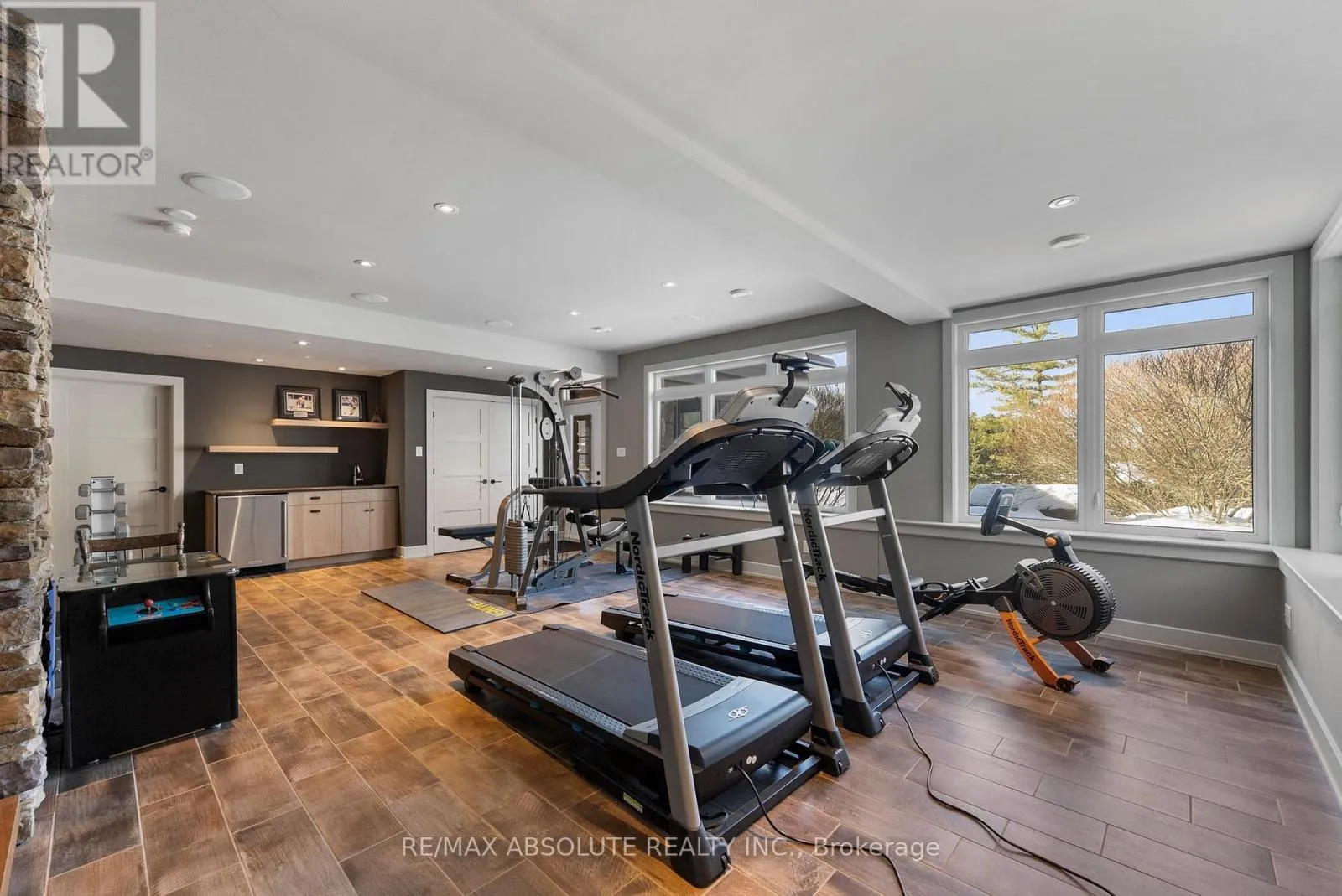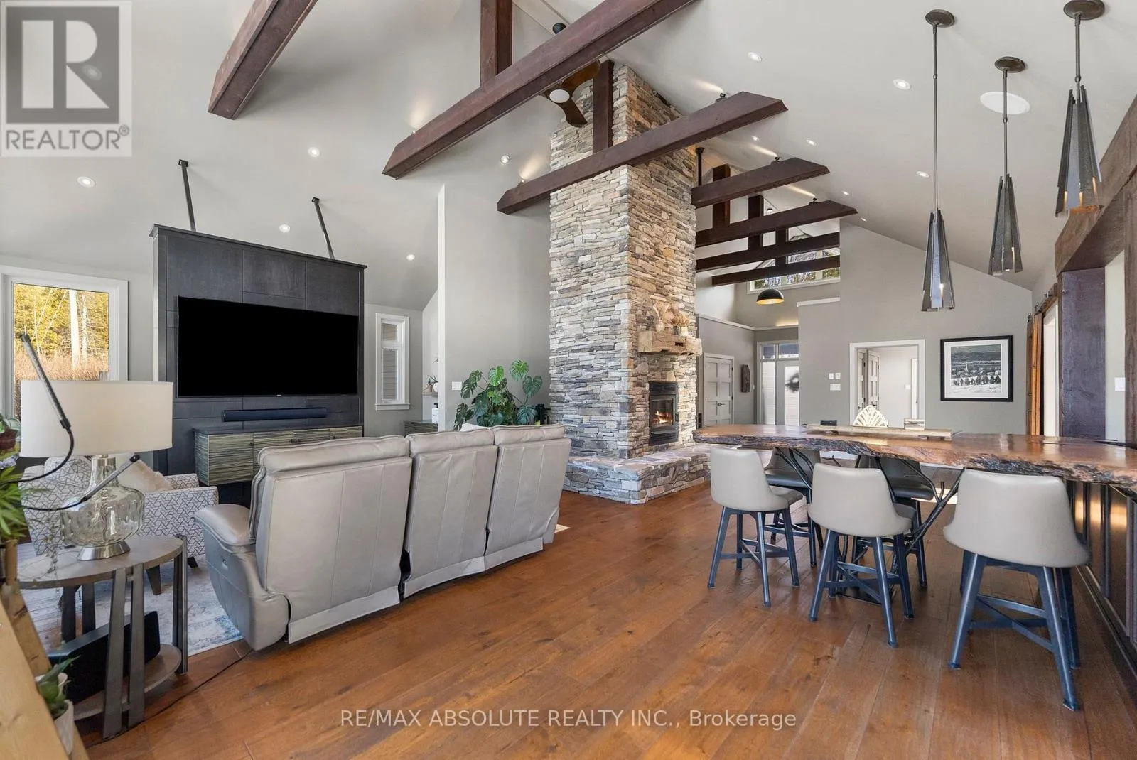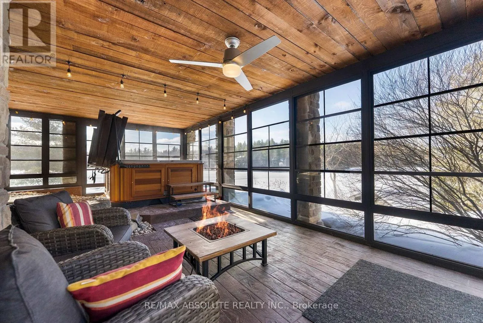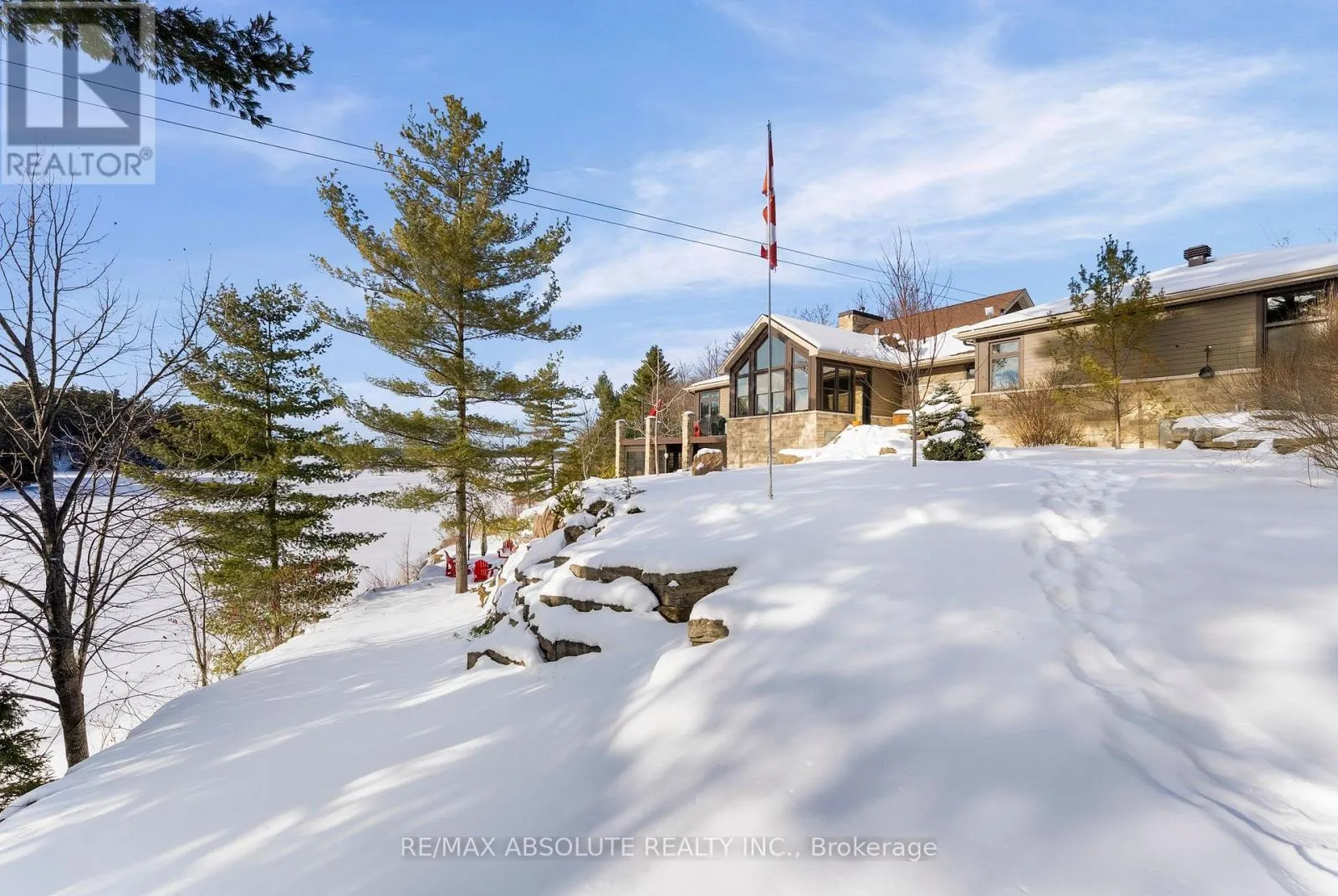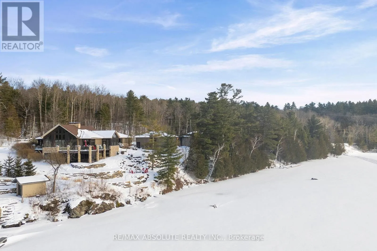 Cross Streets: Barryvale Road. ** Directions: HWY 511 to Barryvale Road, turn left on K&P Trail, property last house on the right. Welcome to 6505 K & P Trail, an extraordinary 5 bedroom, 3 bathroom waterfront dream home on Calabogie Lake, boasting an incredible 1,400+ feet of pristine shoreline- a truly rare offering. Designed with both luxury and functionality in mind, this property delivers high-end finishes, thoughtful craftmanship, and unmatched lakefront living. The main level features a breathtaking wood burning stove, creating a warm and inviting focal point. Comfort is ensured year round with in-floor heating on the lower level, and a forced air boiler system. Triple pane windows with UV film, a smart thermostat and premium mechanicals provide exceptional energy efficiency and peace of mind. A chefs dream kitchen with propane gas stove, custom high powered hood fan, bar fridge, endless counter and storage space, views of the lake and jaw dropping island with live edge top and custom iron base, a must see! The primary suite is a private retreat, complete with two walk in closets, a private deck overlooking the lake, and a luxurious spa-inspired ensuite. Dinning room with three walls of floor to ceiling windows and propane fireplace. Good sized bedroom, laundry and mudroom with access to oversized two car garage complete the main floor. Floating stairs lead to the finished lower level with three additional bedrooms, two with walk in closets, full bath, generous recreation room, large storage area, cold storage and a screened room with hot tub-perfect for year-round relaxation. Outside the property continues to impress with two fully insulated and heated 30x40 garages/workshops, ideal for hobbies, storage or toys. Stone steps lead down to the water where a u-shaped dock awaits. Enjoy evenings by the firepit or soak in the views from the wrap around deck, this setting is truly unforgettable. Yard and gardens easily maintained with irrigation system. A rare combination of luxury, space, and waterfront privacy- this is Calabogie Lake living at its finest! (id:27476)