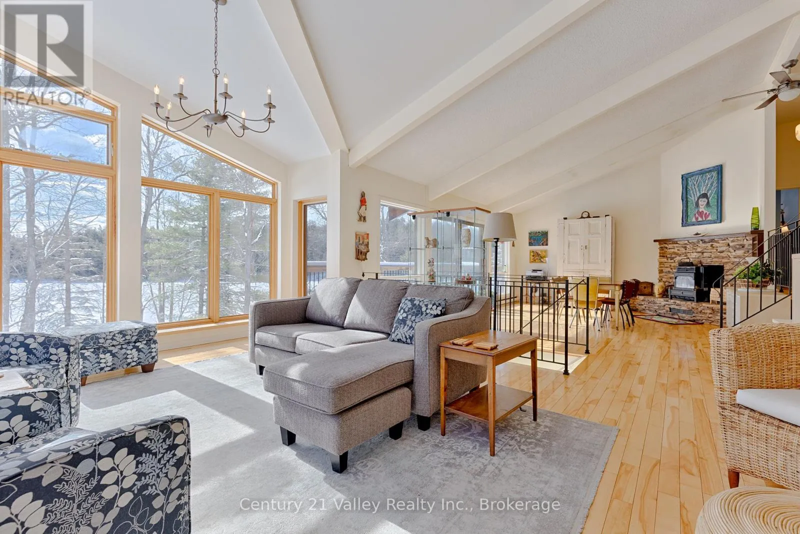 Cross Streets: Calabogie Road. ** Directions: From Ottawa take 417 West past Arnprior. Turn onto Calabogie Rd and pass through Burnstown. Located on Calabogie Road at Springtown on the left side. Welcome to this exceptional 3.5-acre four-season waterfront property located directly off Calabogie Road, offering approximately 1,150 feet of shoreline along the pristine Madawaska River and complete privacy from neighbours. Tucked away along a county-maintained road in a highly sought-after area, this hidden gem provides the perfect balance of seclusion and convenience. Enjoy easy access to all that the Calabogie region has to offer, with Calabogie Peaks Ski Resort, Highland Golf Resort and Calabogie Motorsports and the rest of its year-round recreation only a 12-minute drive away. Renfrew's shopping, healthcare, and essential services are just 15 minutes away, while Kanata is an easy 45-minute commute. The property welcomes you via a paved driveway leading to a well-situated home overlooking the water with a gentle slope down to the shoreline. Inside, the main level features a bright, open-concept layout with vaulted ceilings and large windows that fill the space with warm natural light. A sunken living and dining area centered around a cozy propane fireplace creates an inviting space for relaxing or entertaining. Three bedrooms and a full bathroom complete the main level, offering comfortable family living. The lower level expands the home's versatility with upper and lower recreation areas, a fourth bedroom with laundry, and a walkout to the waterfront. A separate entrance provides convenient access to the attached garage, making the space ideal for guests or multi-use living. Outdoors, a spacious deck overlooks the water and leads to a screened-in porch with durable vinyl windows that open and close, extending seasonal enjoyment while protecting from wind and insects. With excellent boating, swimming, and fishing at your doorstep and unmatched privacy in a prime location, this property delivers the ultimate waterfront lifestyle. Book your showing today and come experience the best of the Madawaska River. Please allow 48 hours irrevocable on all offers. (id:27476)