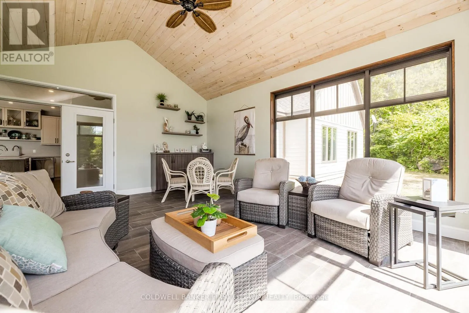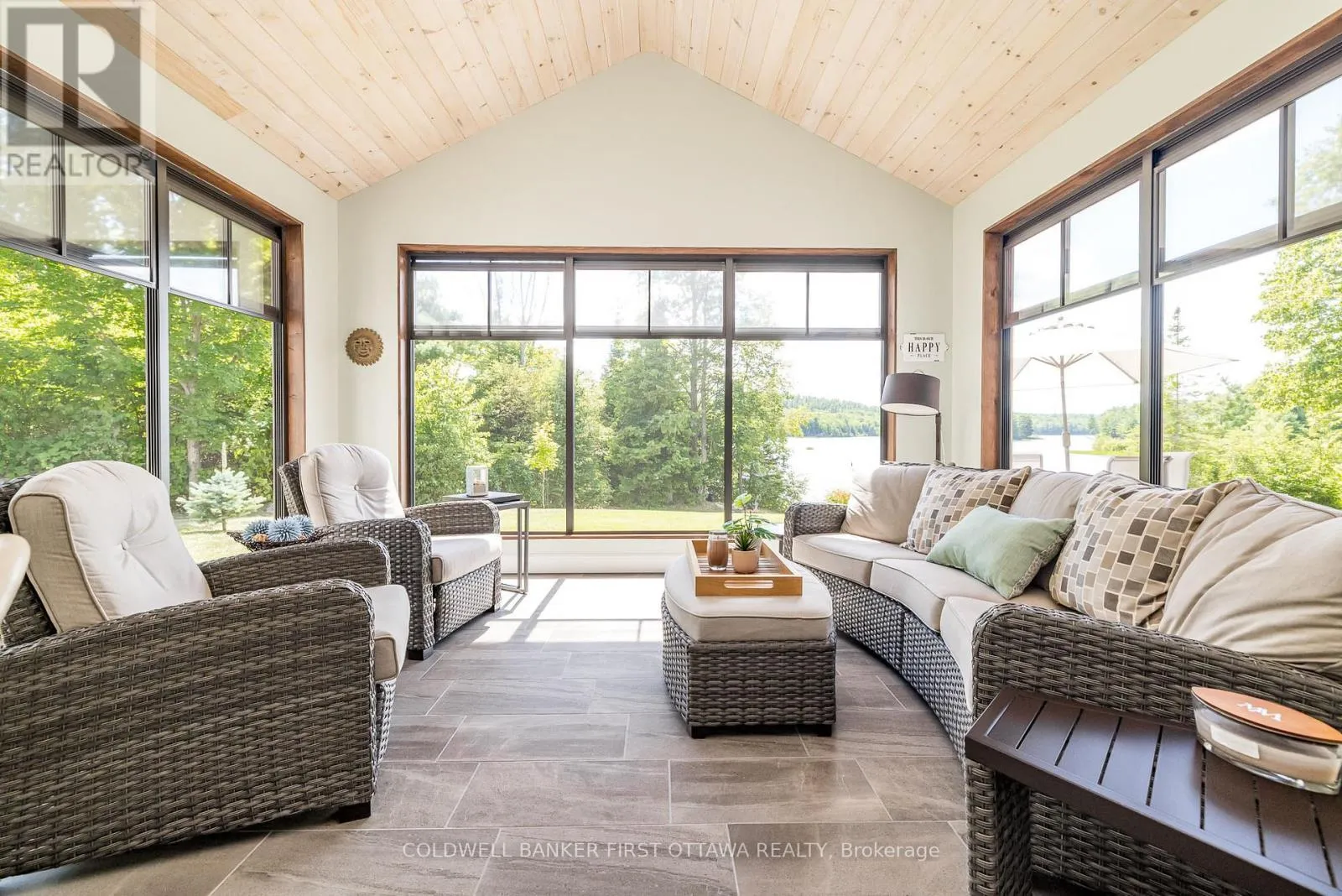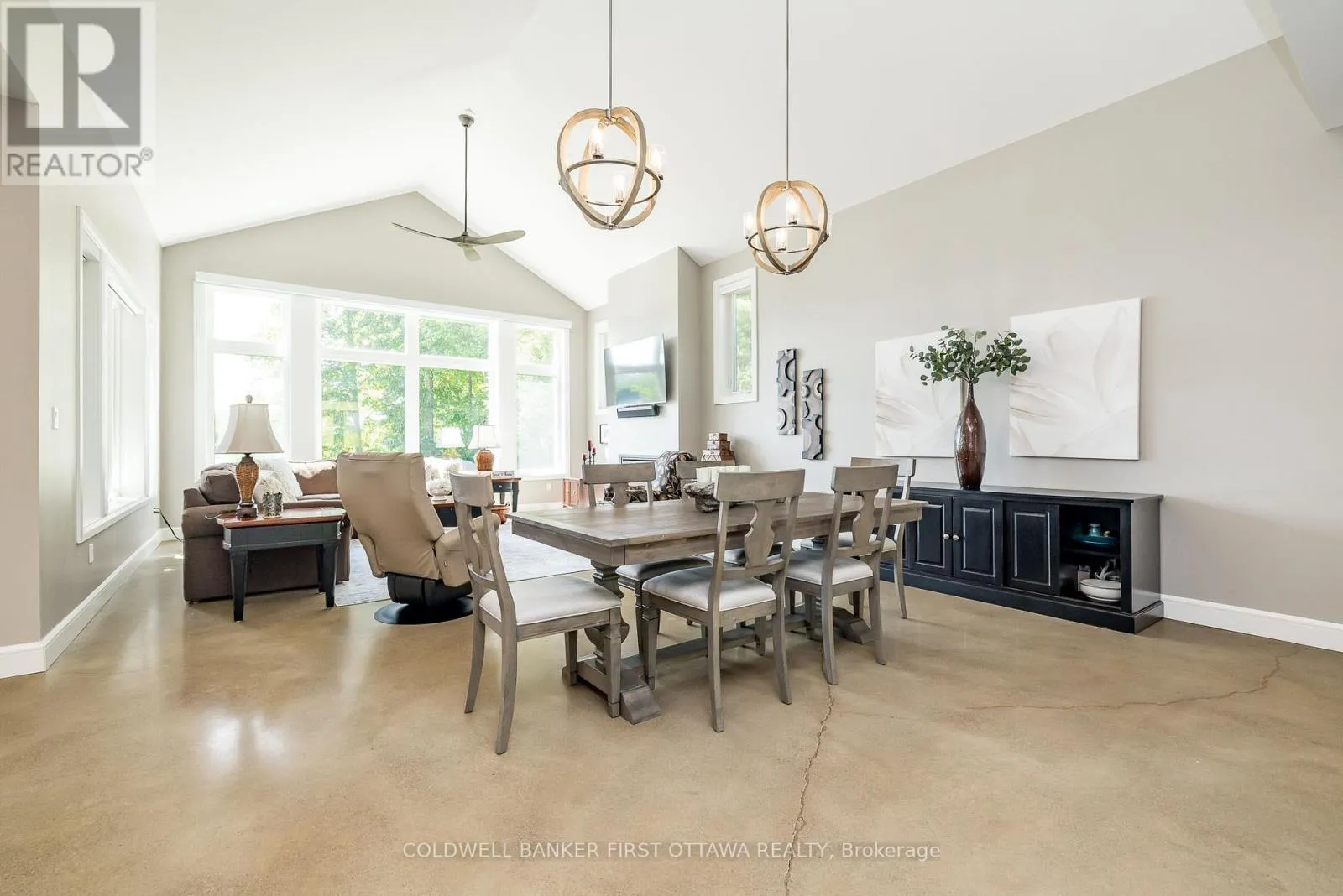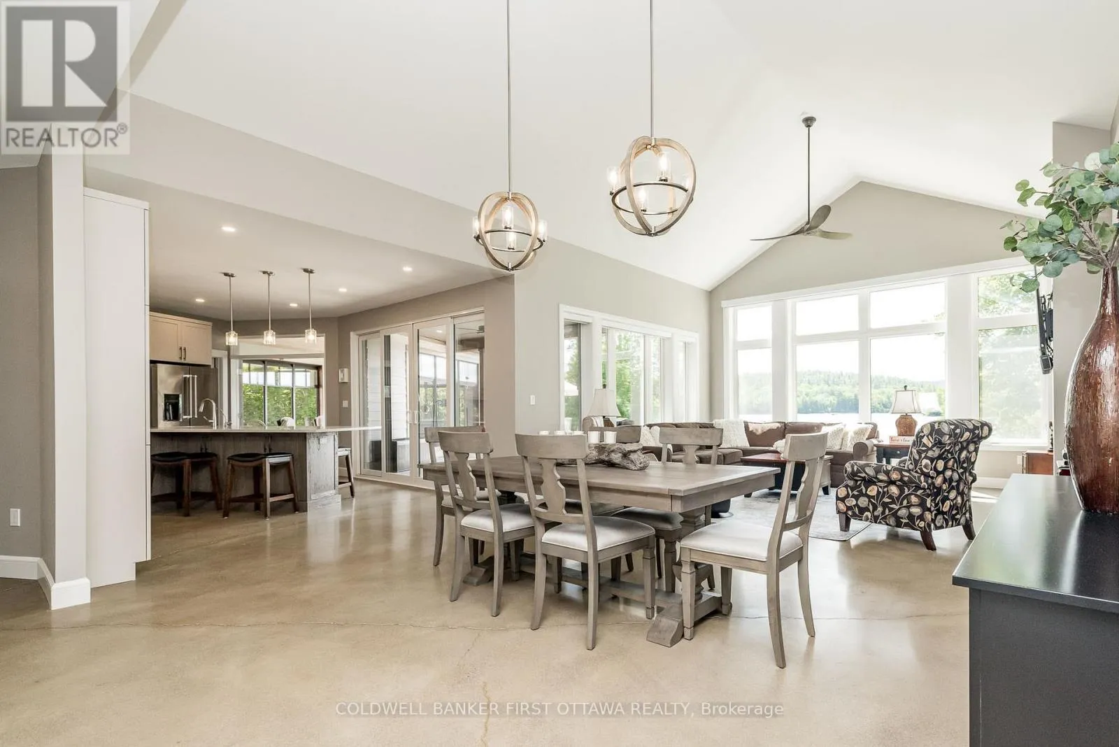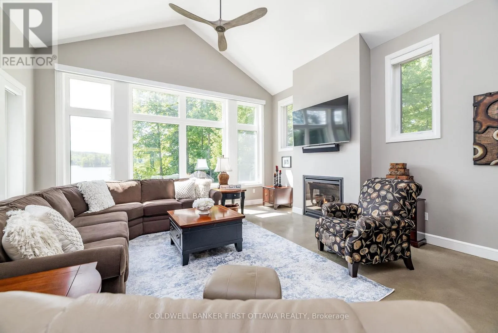 Cross Streets: Barrett Chute Rd & Cub Scout Cres. ** Directions: Take Calabogie Rd to Barrett Chute Rd. Continue onto Cub Scout Cres. A rare opportunity to own a south facing waterfront retreat on approximately 2 private acres along the peaceful Madawaska river in the exclusive Barrett Chute Estates community of Calabogie. Enjoy calm, low-traffic waters ideal for pontoon boating, kayaking, canoeing, and fishing offering a peaceful alternative to busier lakefront living.This custom built bungalow offers 3 bedrooms and 3 bathrooms, designed for effortless one-level living with a bright open-concept layout, soaring ceilings, radiant in-floor heating, and expansive windows framing tranquil river views.A standout feature of the home is the large 3-season sunroom overlooking the water, creating the perfect space to relax, entertain, and enjoy the natural surroundings from the spring through fall.The gently sloping lot provides easy access to the sandy shoreline, enhancing everyday enjoyment of waterfront lifestyle. Additional features include gourmet kitchen, spa-inspired primary suite, polished concrete floors, and an oversized 3-car tandem garage with 4 th bay currently built as a hobby or exercise space.Ideally located just minutes from Calabogie Peaks Ski Resort, and close to Calabogie Highlands Golf Resort, Calabogie Motorsports Park, and hiking including private access to Eagle's Nest Lookout. ATV and snowmobile trails are nearby for year-round recreation.With Bell Fibe high-speed internet, this property also supports modern remote living while surrounded by nature and tranquility.A rare blend of privacy, waterfront access, and four season recreation - all within a comfortable drive to Ottawa. (id:27476)