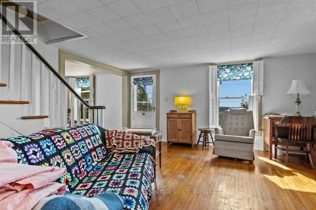 Cross Streets: County Rd 8. ** Directions: County Rd 8, south of Napanee. This charming 3-bedroom, 3-bathroom home, built in 1870, sits on 7 picturesque acres along the shore of Hay Bay. Carefully upgraded over the years, the house retains some of its original features, offering a blend of historic charm and modern convenience. The bright kitchen, with a view of the dining area, is perfect for entertaining. A main-floor laundry room adds convenience, along with a bathroom on the same level. The back deck offers a serene view of the expansive acreage, featuring open fields and a variety of trees, making it an ideal retreat for nature lovers. The large detached garage can be a craftsman's dream! Located only 20 min from Napanee, this rural property is sure to impress. (id:27476)