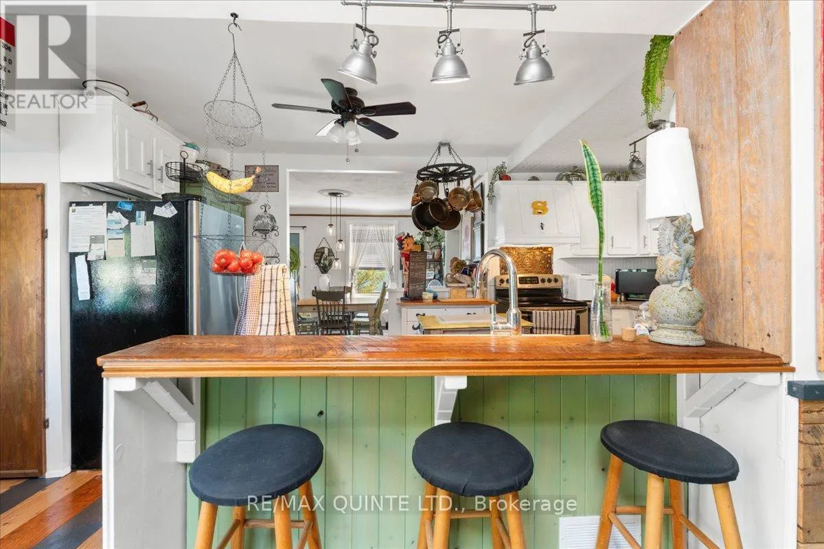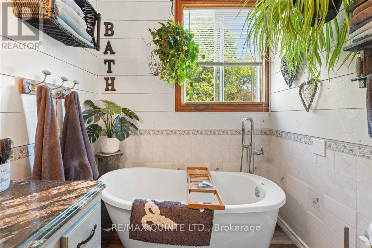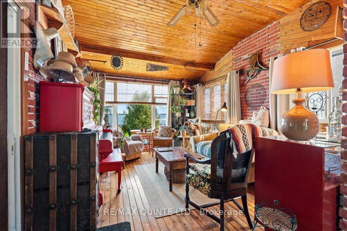 Cross Streets: HWY 33 (loyalist pkwy) / CR21. ** Directions: Take Loyalist Parkway to #7763. Imagine waking up to breathtaking views across Adolphus Reach and spending your days immersed in the peaceful beauty of rural Ontario. This charming 1.5 storey Century Home offers over an acre of lush, private land perfectly situated within easy driving distance to the vibrant communities of Napanee, Kingston, and Picton. Whether you're seeking a weekend retreat or a full-time sanctuary, this property invites you to experience the true essence of country living, complete with your own grape vines and fruit trees. This lovingly maintained home boasts approximately 1,500 square feet of character-filled living space. Artistic touches abound, from warm wooden floors to unique architectural details and inviting nooks. Large, sun-drenched windows frame captivating water and garden views throughout, flooding every room with natural light and inspiration. One level living is possible here with main floor Primary Bedroom, full bathroom, laundry and living areas. Upon entering, a cozy family room with windows that showcase lake views leads you into an additional living area featuring a wood-burning stove. The dining room and the bright kitchen are spacious and inviting. An adjoining breakfast nook opens onto the back deck for seamless indoor-outdoor flow. A main floor, 4 piece bathroom has a free-standing soaker tub and glass shower. Upstairs are 2 more bedrooms, both with incredible water views and they share another full bathroom. Outdoors there is an array of deck spaces, gardens, gazebo, garden shed and another outbuilding to house your crafts or to store your hobbies. Waterfront can be accessed across the road where there are steps to the waterfront. This home is just 15 minutes to Napanee and 30 minutes to Kingston and a short ferry ride to Picton. (id:27476)