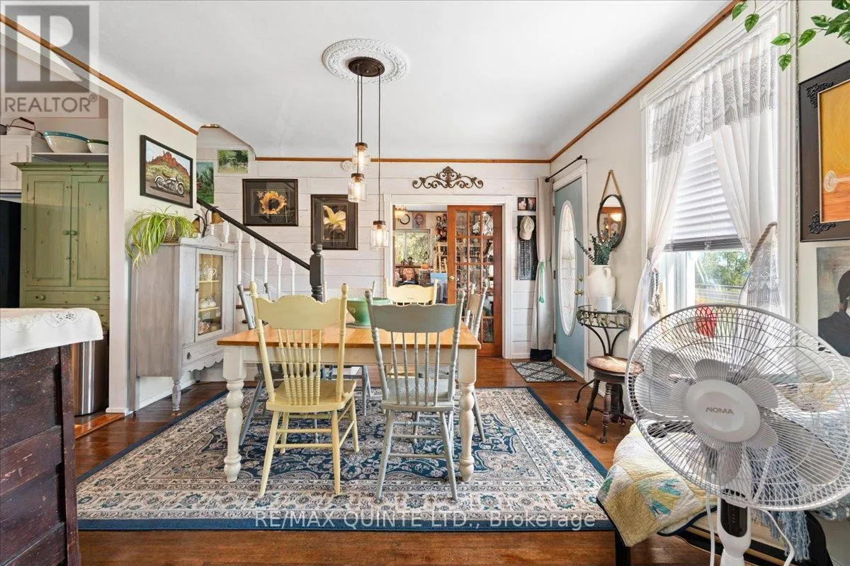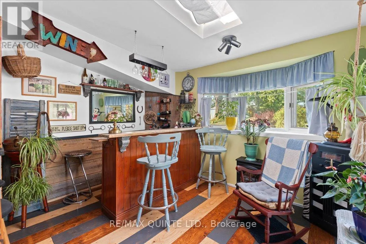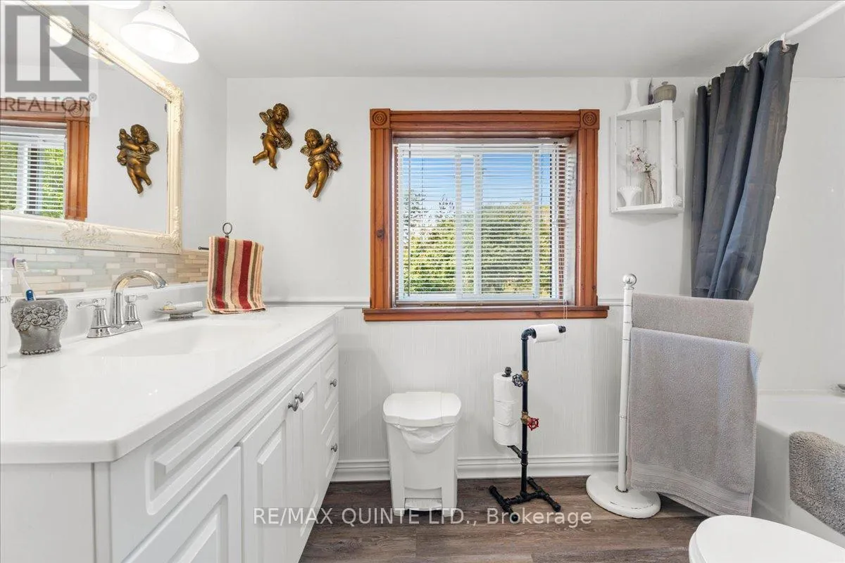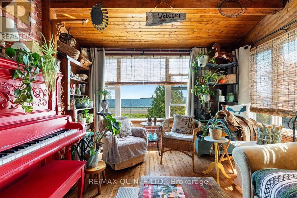 Cross Streets: HWY 33 (loyalist pkwy) / CR21. ** Directions: Take Loyalist Parkway to #7763. Imagine waking up to breathtaking views across Adolphus Reach and spending your days immersed in the peaceful beauty of rural Ontario. This charming 1.5 storey Century Home offers over an acre of lush, private land perfectly situated within easy driving distance to the vibrant communities of Napanee, Kingston, and Picton. Whether you're seeking a weekend retreat or a full-time sanctuary, this property invites you to experience the true essence of country living, complete with your own grape vines and fruit trees. This lovingly maintained home boasts approximately 1,500 square feet of character-filled living space. Artistic touches abound, from warm wooden floors to unique architectural details and inviting nooks. Large, sun-drenched windows frame captivating water and garden views throughout, flooding every room with natural light and inspiration. One level living is possible here with main floor Primary Bedroom, full bathroom, laundry and living areas. Upon entering, a cozy family room with windows that showcase lake views leads you into an additional living area featuring a wood-burning stove. The dining room and the bright kitchen are spacious and inviting. An adjoining breakfast nook opens onto the back deck for seamless indoor-outdoor flow. A main floor, 4 piece bathroom has a free-standing soaker tub and glass shower. Upstairs are 2 more bedrooms, both with incredible water views and they share another full bathroom. Outdoors there is an array of deck spaces, gardens, gazebo, garden shed and another outbuilding to house your crafts or to store your hobbies. Waterfront can be accessed across the road where there are steps to the waterfront. This home is just 15 minutes to Napanee and 30 minutes to Kingston and a short ferry ride to Picton. (id:27476)