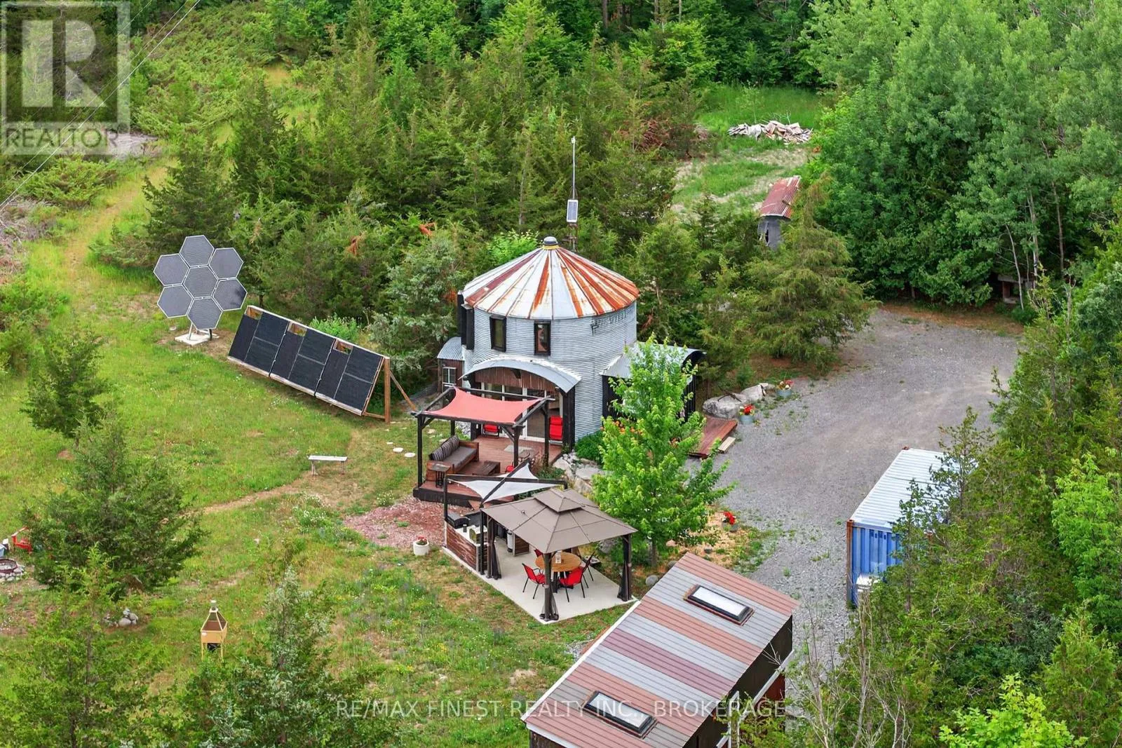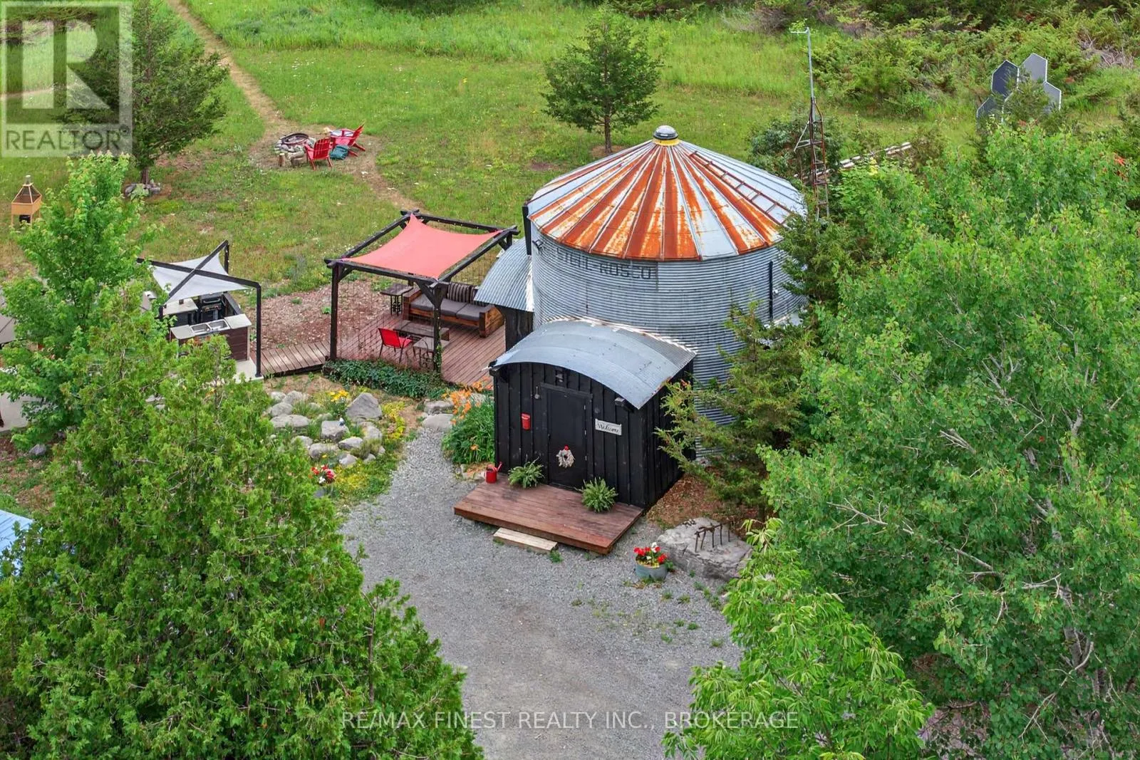 Cross Streets: Westplain Road. ** Directions: Heading North of Highway 41, turn left onto West plain road and then turn right onto Lime Lake road. Welcome to a truly unique and sustainable retreat at 922 Lime Lake Road in Roblin, Ontario! This off grid, solar powered grain silo has been transformed into a trendy and minimalist one bedroom home, nestled on just over 3acres of serene, private land. This thoughtfully converted silo combines rustic charm with eco-conscious living. Inside, you will find stunning white pine walls that create a warm, inviting atmosphere, complemented by a cozy loft bedroom that offers a birds eye view of the open concept kitchen and living space through a retro fitted metal grate. The bathroom features handcrafted wood flooring, adding artisanal character and natural beauty to the space. No detail has been spared from the staircase to the rope cord beading, and to the circular ceiling with skylight. Step outside to your outdoor kitchen oasis, fully equipped with a wood fired pizza oven, gazebos with seating areas and barbecue making it perfect for entertaining under the stars. Whether you are cooking for friends or enjoying a quiet evening to yourself, the setting is peaceful, private, and surrounded by nature. Also included on the property is a moveable tiny home ideal for guests, rental income, or a private studio. Both the tiny home and silo offer passive income via short term accommodation rentals and or can be lived in permanently year round. This one of a kind property is completely off grid and solar powered, offering independence, sustainability, and a connection to the land that is hard to find. If you have been dreaming of a simpler lifestyle without compromising comfort or style, this silo sanctuary is ready to welcome you home! (id:27476)