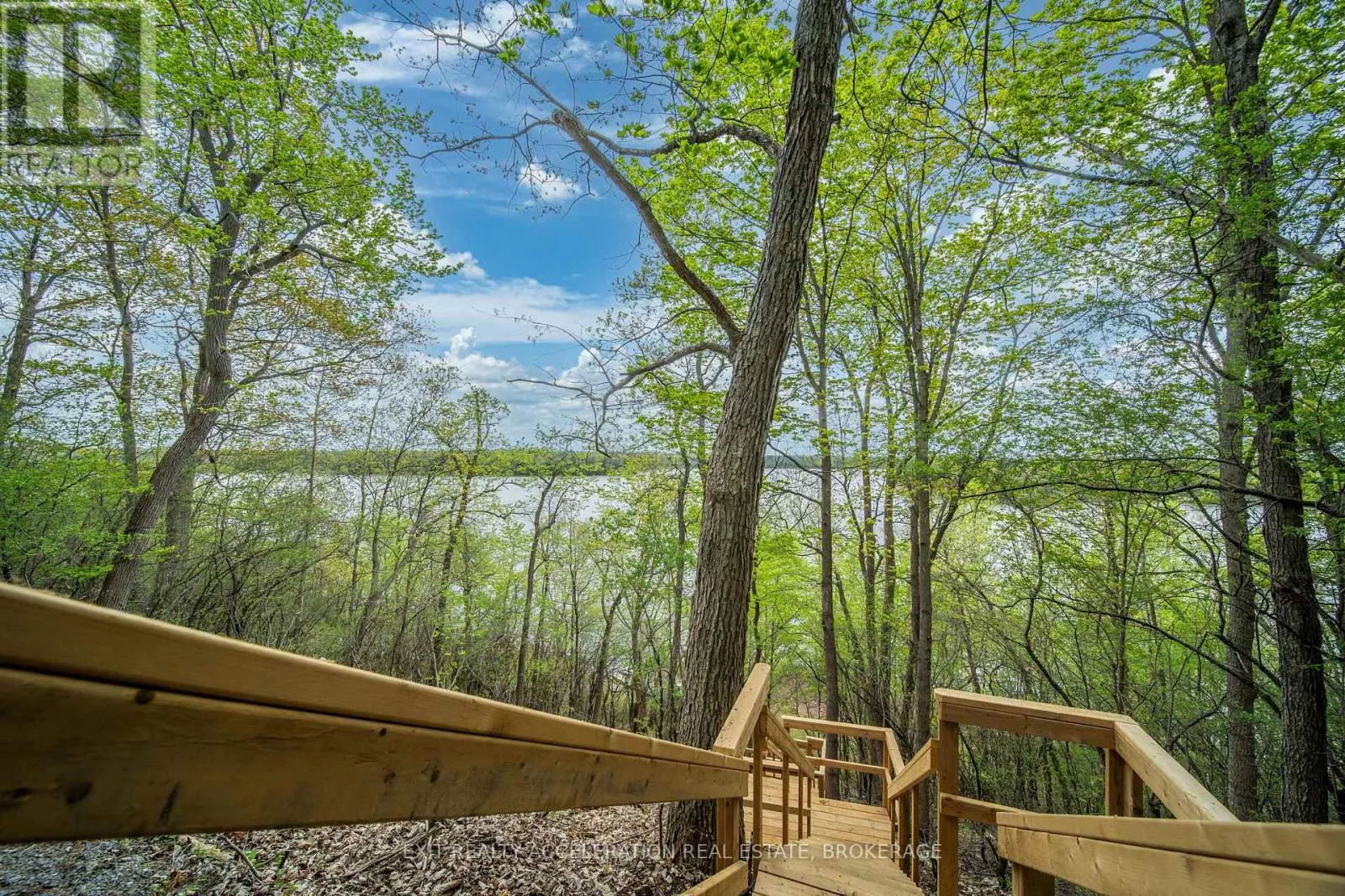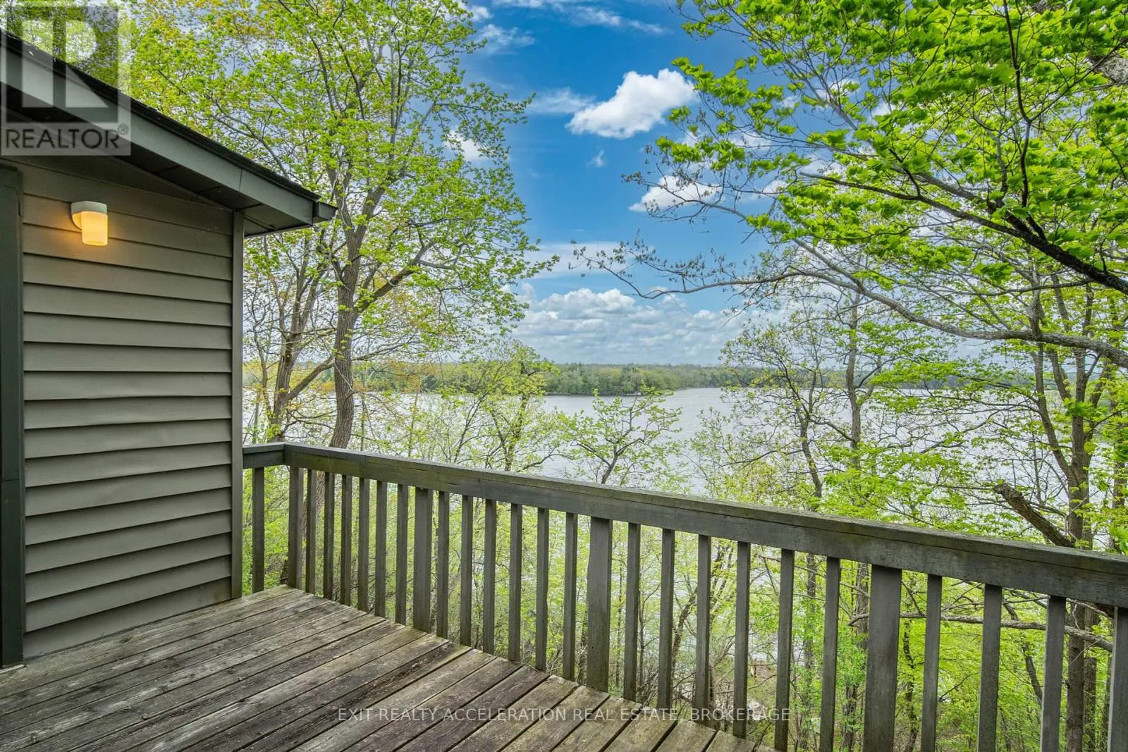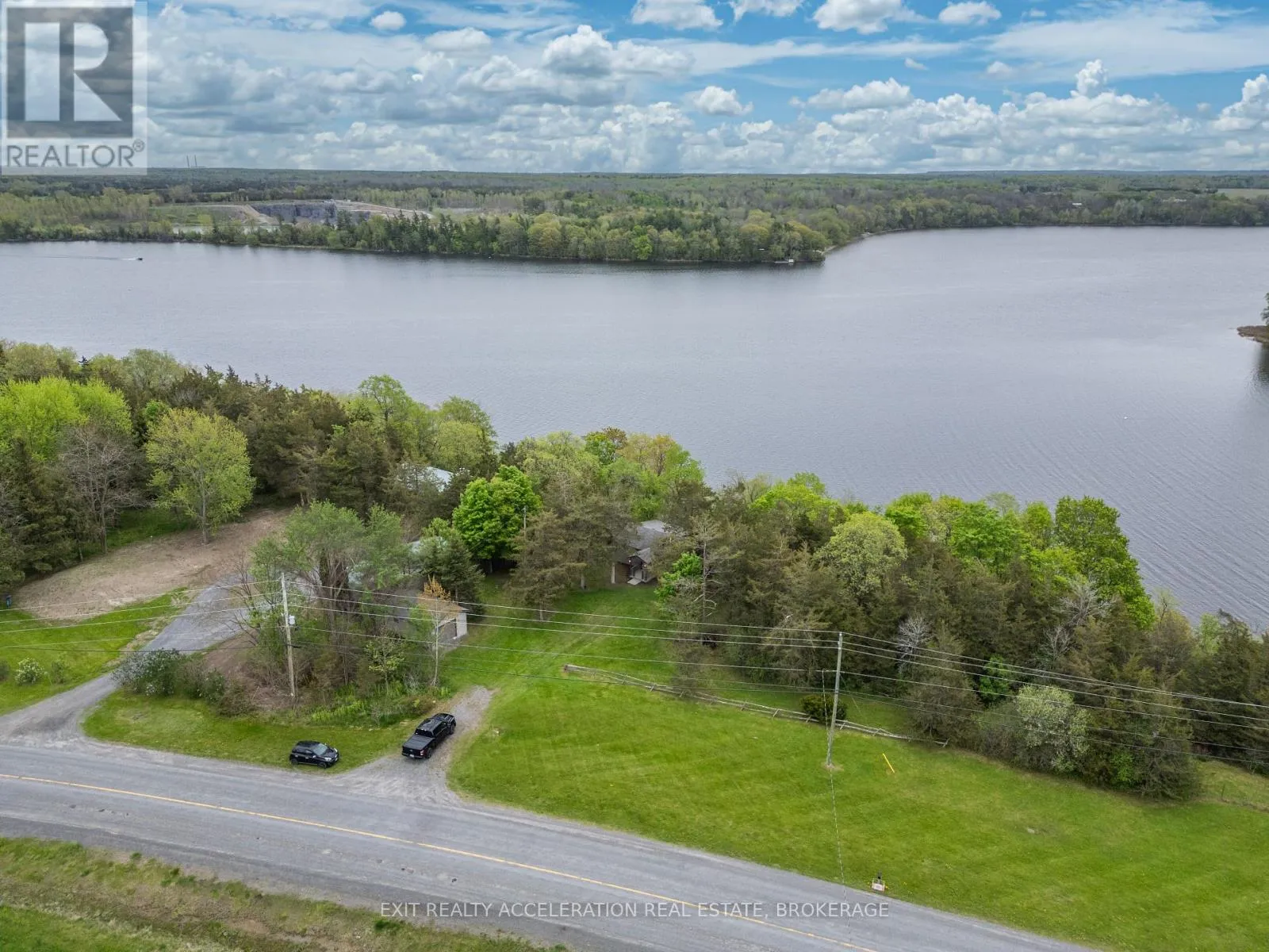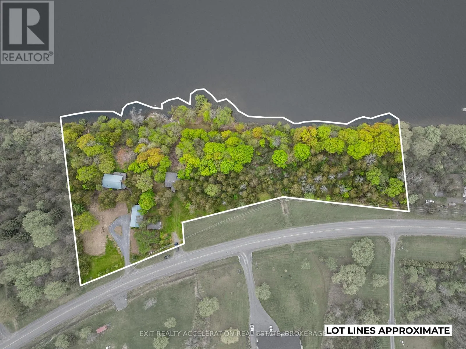 Cross Streets: Abrams Rd. ** Directions: County Rd 8 south of Napanee to County Rd 9 to Abrams Rd to County Rd 9. A rare opportunity to own two separately deeded waterfront properties together on the shores of Hay Bay. Tucked among the trees, the cozy two-bedroom, one-bathroom home offers peaceful views and a sense of privacy with nature all around. Whether you're enjoying morning coffee on the deck or taking in the scenery from the bright sunroom, the beauty of the bay is always in sight. A wood stove keeps the home warm and welcoming on cooler evenings, while the detached single garage offers room to store your gear or outdoor essentials. The second parcel, a vacant lot, adds to the appeal - giving you flexibility, added privacy, or space for future plans. Head down the stairs or take the gently sloping laneway across the vacant property to access the water, perfect for casting a line or other water activities. Together, the two properties span 2.5 acres and provide approximately 590 feet of waterfront, making this a special spot for anyone who appreciates the outdoors and life by the water. All easements expire in 2035 and there can be a creation of two extra lots for Shoreline residential at 30m wide. (id:27476)