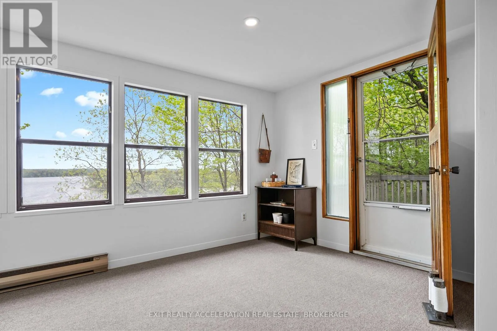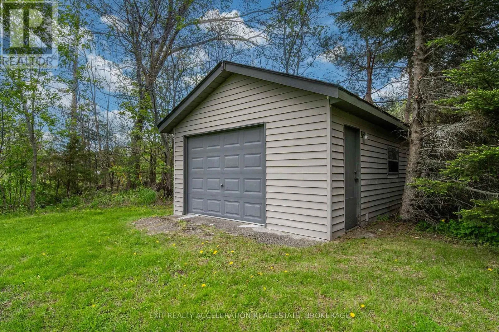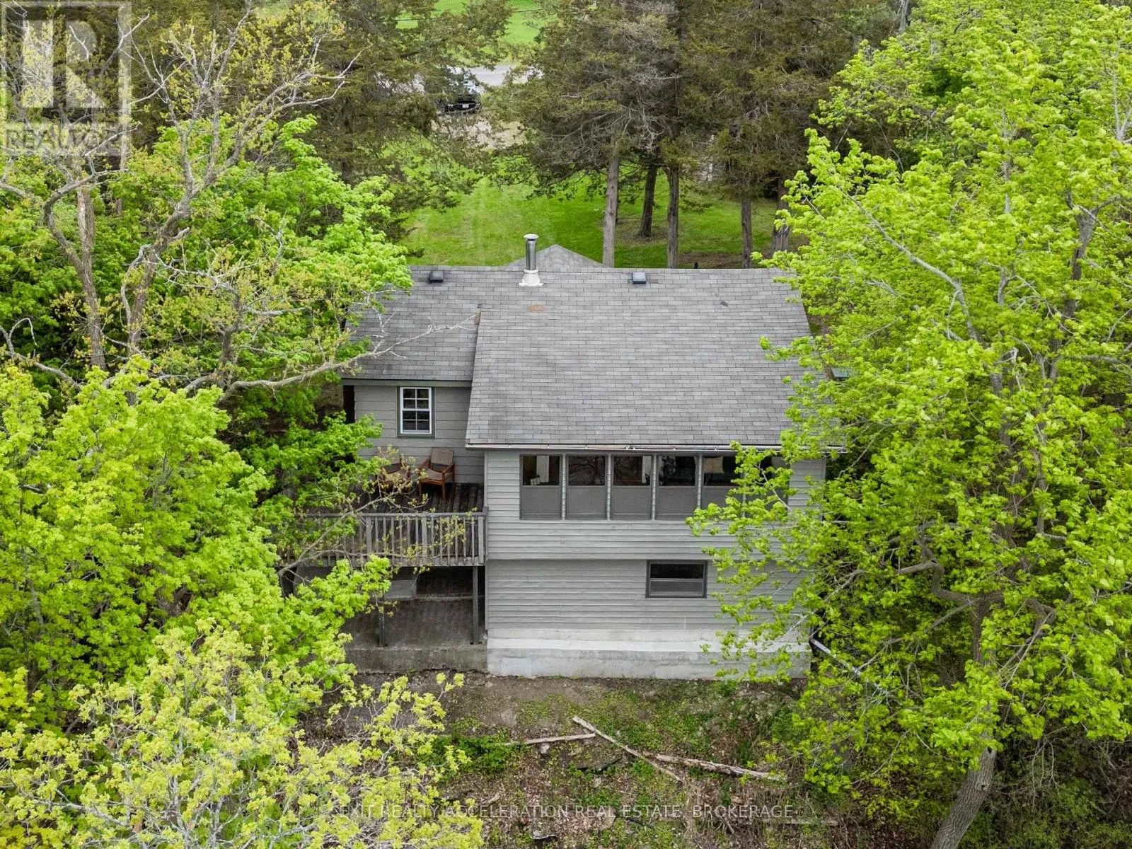 Cross Streets: Abrams Rd. ** Directions: County Rd 8 south of Napanee to County Rd 9 to Abrams Rd to County Rd 9. A rare opportunity to own two separately deeded waterfront properties together on the shores of Hay Bay. Tucked among the trees, the cozy two-bedroom, one-bathroom home offers peaceful views and a sense of privacy with nature all around. Whether you're enjoying morning coffee on the deck or taking in the scenery from the bright sunroom, the beauty of the bay is always in sight. A wood stove keeps the home warm and welcoming on cooler evenings, while the detached single garage offers room to store your gear or outdoor essentials. The second parcel, a vacant lot, adds to the appeal - giving you flexibility, added privacy, or space for future plans. Head down the stairs or take the gently sloping laneway across the vacant property to access the water, perfect for casting a line or other water activities. Together, the two properties span 2.5 acres and provide approximately 590 feet of waterfront, making this a special spot for anyone who appreciates the outdoors and life by the water. All easements expire in 2035 and there can be a creation of two extra lots for Shoreline residential at 30m wide. (id:27476)