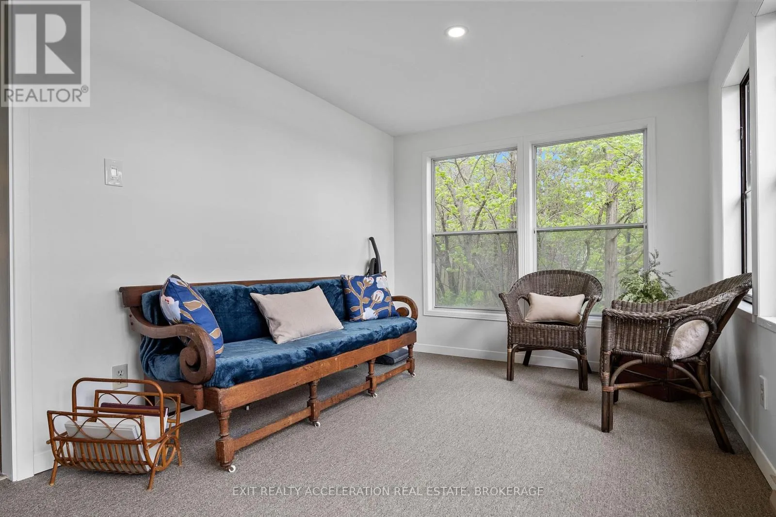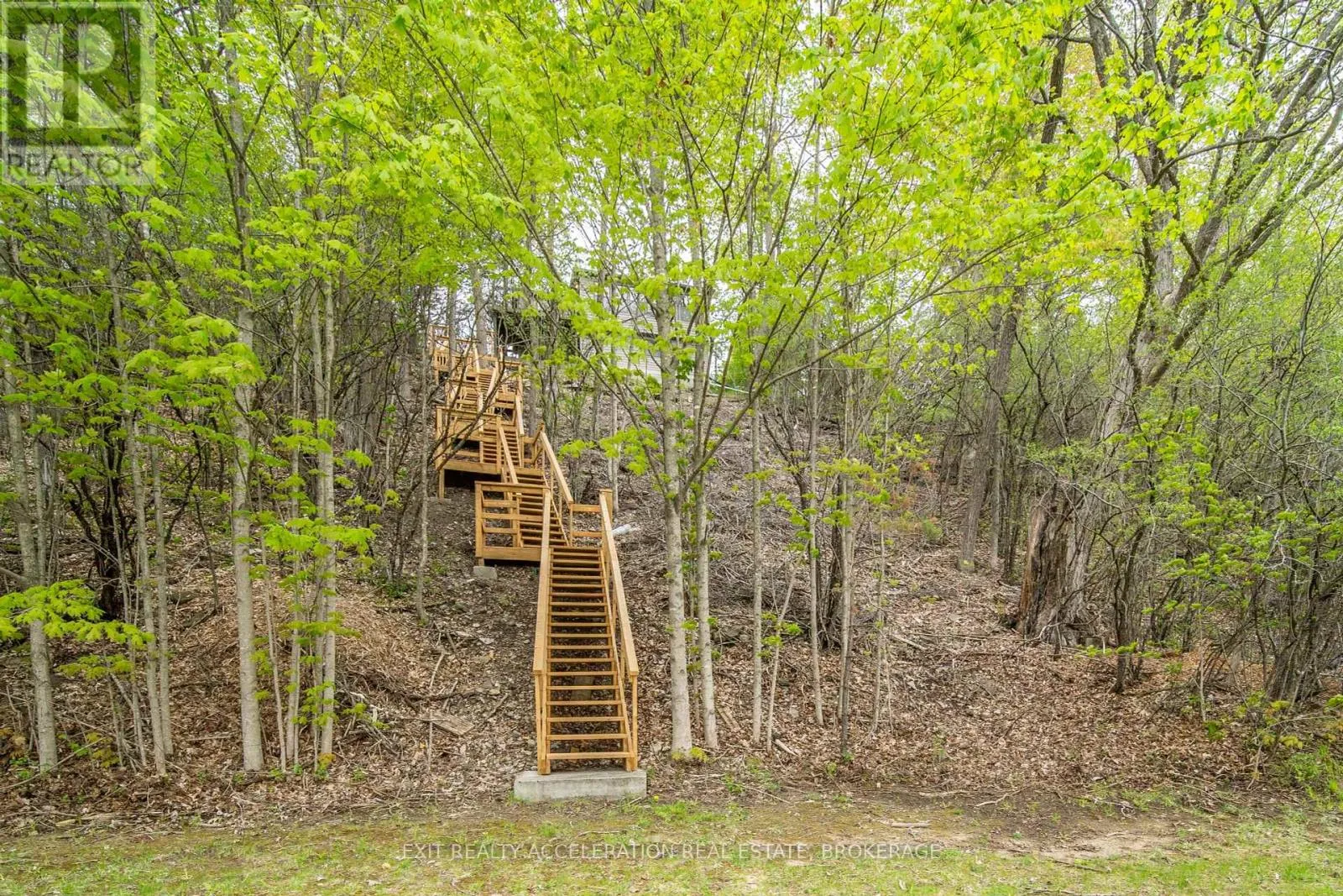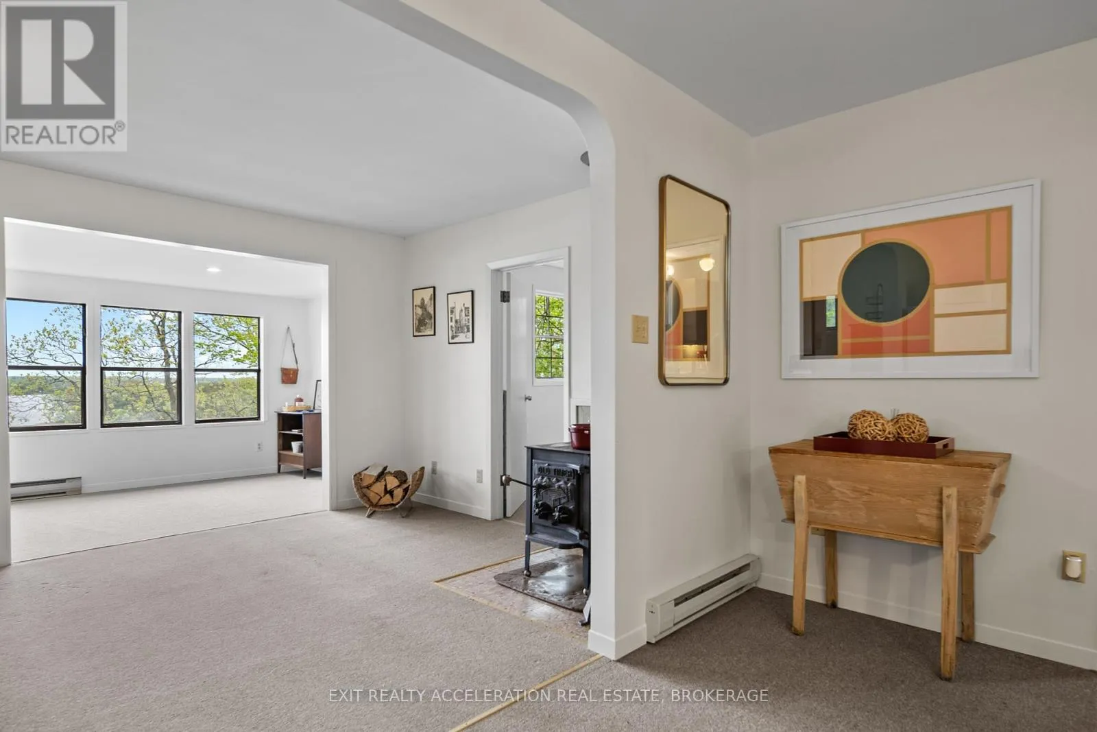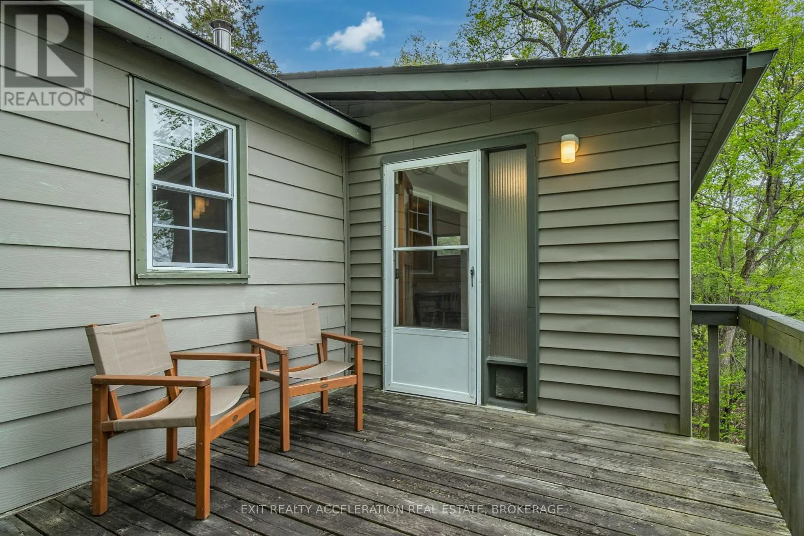 Cross Streets: Abrams Rd. ** Directions: County Rd 8 south of Napanee to County Rd 9 to Abrams Rd to County Rd 9. A rare opportunity to own two separately deeded waterfront properties together on the shores of Hay Bay. Tucked among the trees, the cozy two-bedroom, one-bathroom home offers peaceful views and a sense of privacy with nature all around. Whether you're enjoying morning coffee on the deck or taking in the scenery from the bright sunroom, the beauty of the bay is always in sight. A wood stove keeps the home warm and welcoming on cooler evenings, while the detached single garage offers room to store your gear or outdoor essentials. The second parcel, a vacant lot, adds to the appeal - giving you flexibility, added privacy, or space for future plans. Head down the stairs or take the gently sloping laneway across the vacant property to access the water, perfect for casting a line or other water activities. Together, the two properties span 2.5 acres and provide approximately 590 feet of waterfront, making this a special spot for anyone who appreciates the outdoors and life by the water. All easements expire in 2035 and there can be a creation of two extra lots for Shoreline residential at 30m wide. (id:27476)