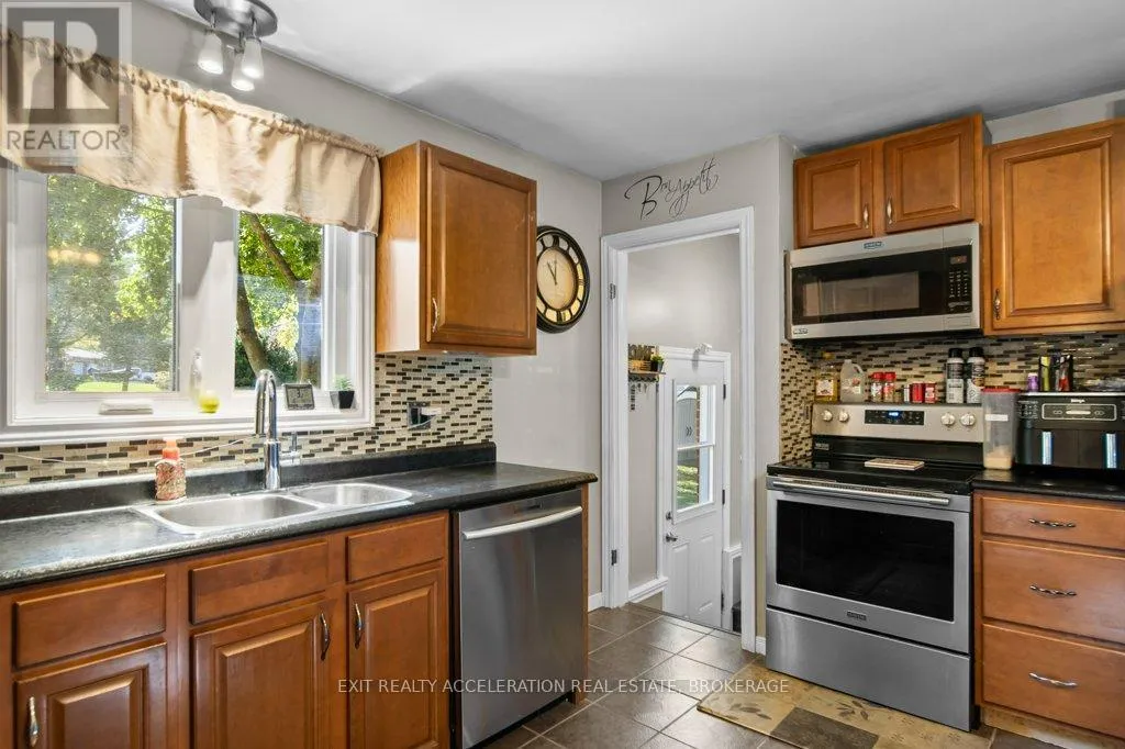 Cross Streets: Southcrest Dr or Edgewood Dr. ** Directions: County Rd 8 to River Rd. This well-kept all brick bungalow offers the perfect blend of comfort, convenience, and charm, located just steps from downtown Napanee. Sitting on just under half an acre, this inviting home features four bedrooms and two and a half bathrooms, providing plenty of space for family and guests. The main level is bright and welcoming, with three of the bedrooms and a cozy living room complete with a gas fireplace for those cooler evenings. The lower level adds wonderful flexibility with a second kitchen and walk-up access, creating the potential for an in-law suite or additional living space. Recent updates include a new furnace in 2023, along with most of the windows and the front door replaced the same year, offering peace of mind for years to come. The attached two-car garage provides convenient parking and storage. Enjoy being within walking distance to the library, playground, and splash pad, while nearby amenities such as major retailers and recreation facilities make everyday living easy and enjoyable. This is a lovely opportunity to enjoy small-town living with all the conveniences close at hand. (id:27476)
