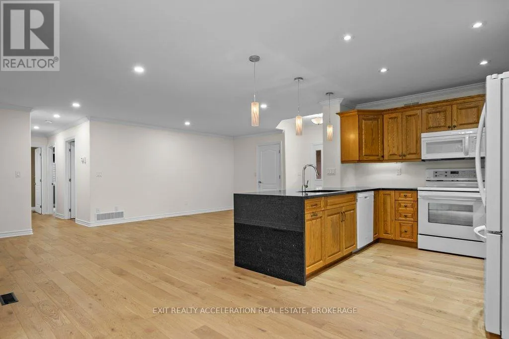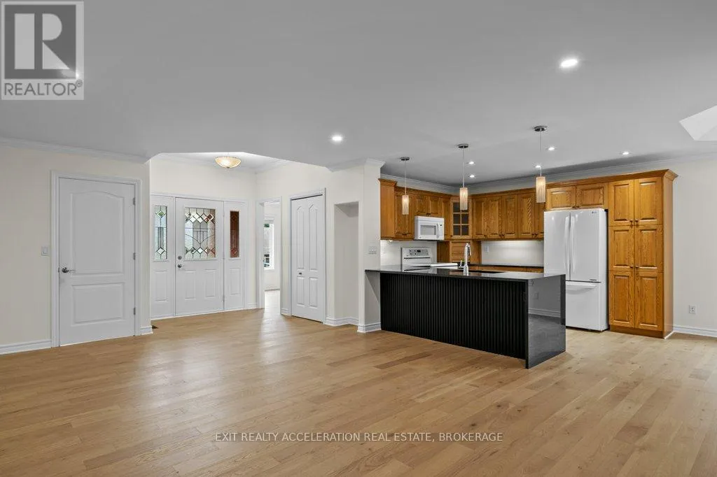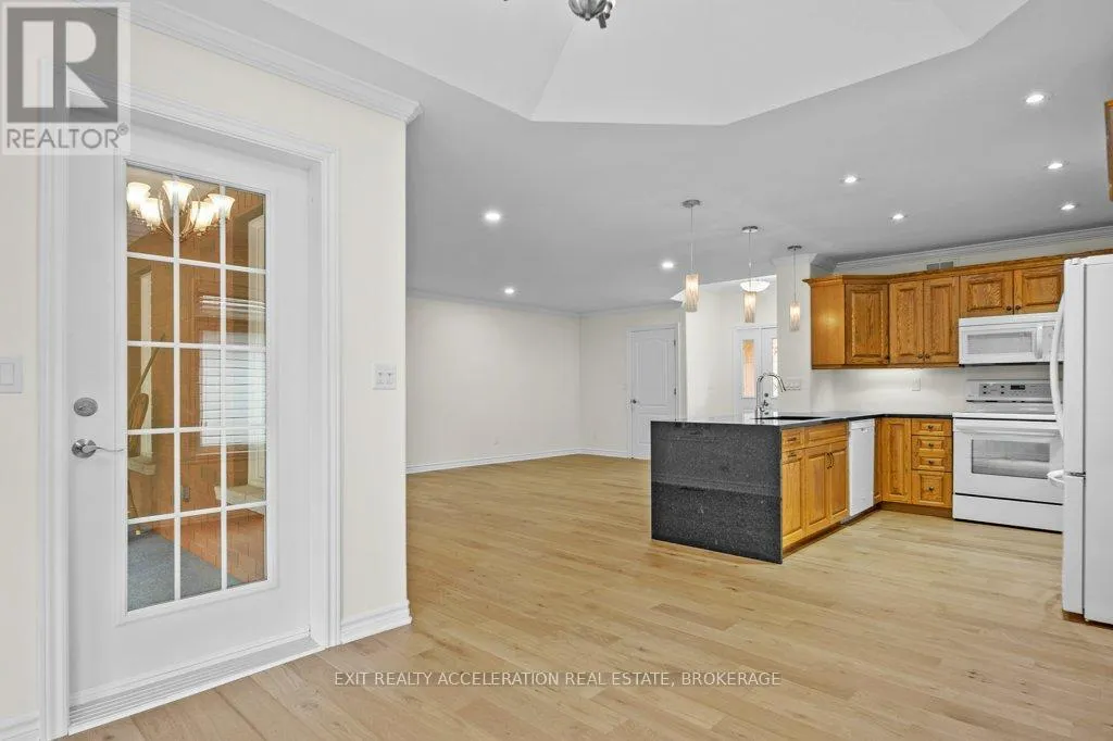 County Rd 8 to McCabe St This charming all-brick bungalow, located on a cul-de-sac street, offers the perfect blend of comfort & convenience. Boasting 4 bedrooms & 3 bathrooms, this residence is sure to impress even the most discerning buyer. As you step inside, you'll be greeted by new hardwood floors. The kitchen, overlooking the living and dining areas, features ample cupboards and quartz countertop. Adjacent to the dining room is a cozy sunroom, offering a space where you can relax and unwind. Step outside onto the deck, overlooking the fully fenced backyard, providing the ideal setting for outdoor gatherings. Convenience is key with main floor laundry accessible from both inside the house and the attached 2-car garage, ensuring practicality for everyday living. The generously sized primary bedroom boasts an ensuite bathroom and a walk-in closet, offering a retreat at the end of the day. Head downstairs to the recently completed fully finished basement. Located within walking distance to an elementary school and the golf course, and just a short 2-minute drive from downtown shopping, the library, and a large playground with a splash pad, this home offers the perfect balance. Don't miss out on this rare opportunity to own a newly refreshed bungalow in Napanee. Schedule your private viewing today and make this your forever home! (id:27476)