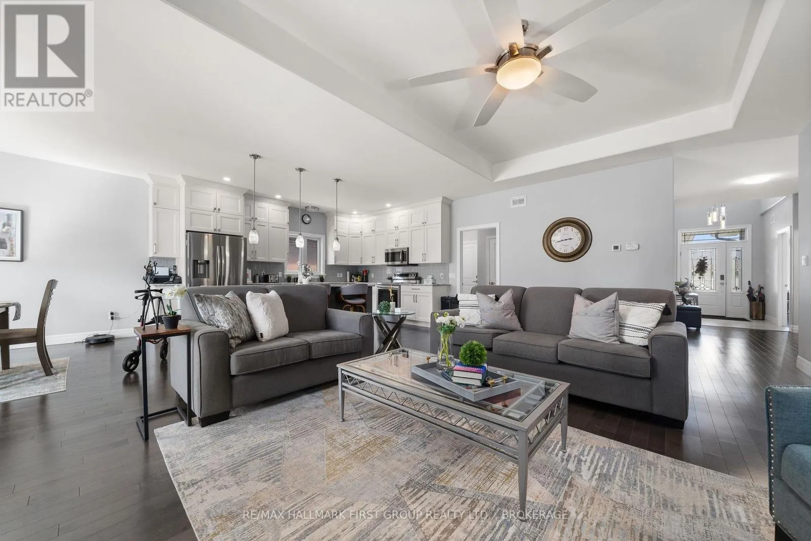 Cross Streets: Cherrywood & Dundas. ** Directions: Dundas Street West, North on Cherrywood Parkway. Stunning 5-year-old bungalow in one of Napanee's most sought-after subdivisions, West Bridge Estates. Built by Stakios Homes, known for superior quality and craftsmanship, this upgraded Linden model offers over 1,900 sq. ft. on the main level with 2 bedrooms plus an in-law suite in the fully finished basement. Features include vaulted ceilings, a custom kitchen with stacked cabinetry and quartz counters, formal dining, an electric fireplace in the living room, a large primary with a walk-in closet and ensuite with double sinks, quartz, and a glass/tile shower. Heated floors in all baths. Main-level laundry with pantry and ample storage. The lower level adds a bedroom, a bonus room, and a rec room with cabinetry and a sink. All-brick exterior, composite deck with covered area. Steps to Cherrywood Parklands trail & playground, close to amenities, and minutes to hospital and wellness complex. Far from a base model this home is loaded with upgrades! Be sure to click on the brochure link for additional information and media to see the full video tour or request the recent home inspection on file. (id:27476)