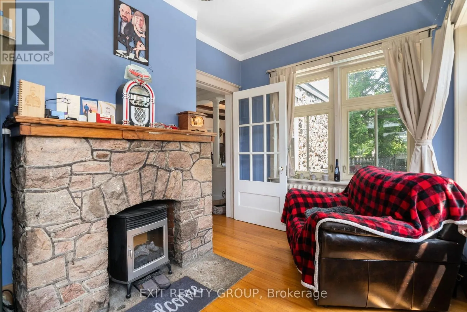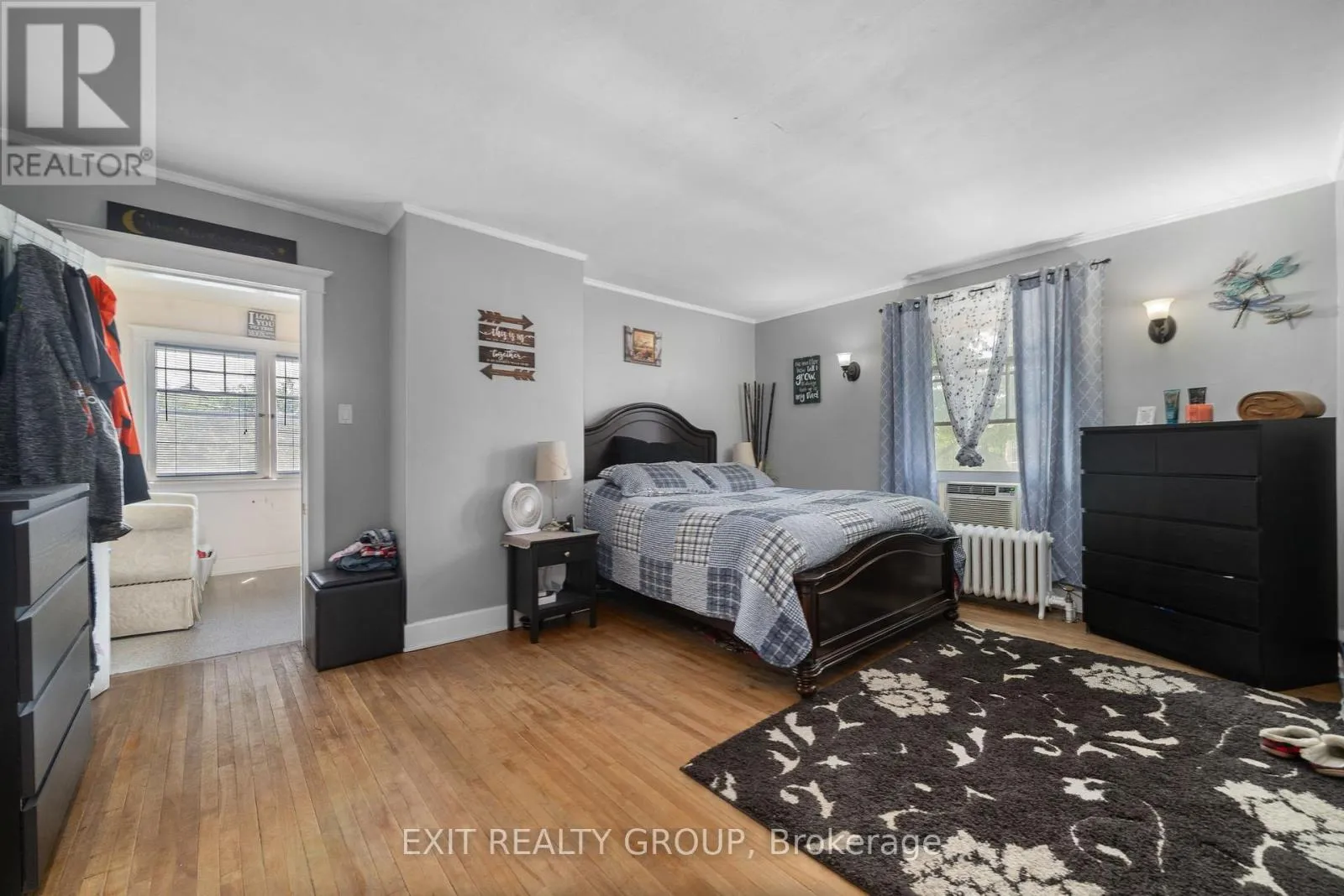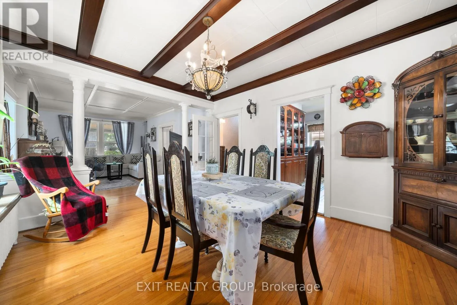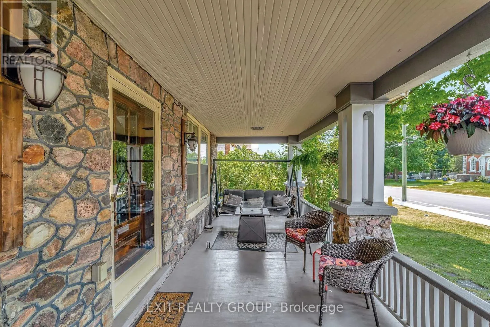 Cross Streets: Bridge St E and East St. ** Directions: Turn North off Bridge Street East to East Street to 219 on right. Welcome to this captivating 1920's 2-storey, 5 bed 1 bath with potential for 2, with carriage house, brimming with vintage elegance and modern updates, ideally located on a large town lot backing onto the County Courthouse and Museum. Step onto the inviting covered porch and into a spacious foyer that sets the stage for this stunning property. Inside, original hardwood floors, wood beam ceilings, and classic cast iron radiators exude historic charm, while thoughtful updates provide comfort and style. The U-shaped kitchen boasts abundant storage, upgraded appliances, and direct access to a generous back deck - perfect for entertaining. A formal dining room with large windows flows into a grand living room highlighted by oversized windows and a cozy fireplace. French doors open to a bright sunroom featuring wraparound windows and a 2nd fireplace, ideal for relaxing or enjoying morning coffee. A main-floor bedroom doubles as a perfect home office with custom built-ins. Upstairs, discover 4 spacious bedrooms, including a primary suite with a large closet and private sitting area with a potential wet bar. 2 additional bedrooms offer generous closets and light-filled spaces, while the 4th bedroom features its own private deck overlooking the backyard. A 4-piece bath completes this level. Ascend to the third floor and enjoy extra living space in the converted attic, perfect for a kids hangout, studio, or hobby room. Outside, lounge on the expansive deck, or enjoy the fully fenced yard including a charming playhouse, fire pit, and plenty of room for kids and pets. A rare highlight is the separate carriage house/garage with vaulted ceilings and an original turntable floor - a unique nod to the home's historic past plus a single carport for added convenience. This extraordinary property is more than a home - it's a lifestyle. (id:27476)