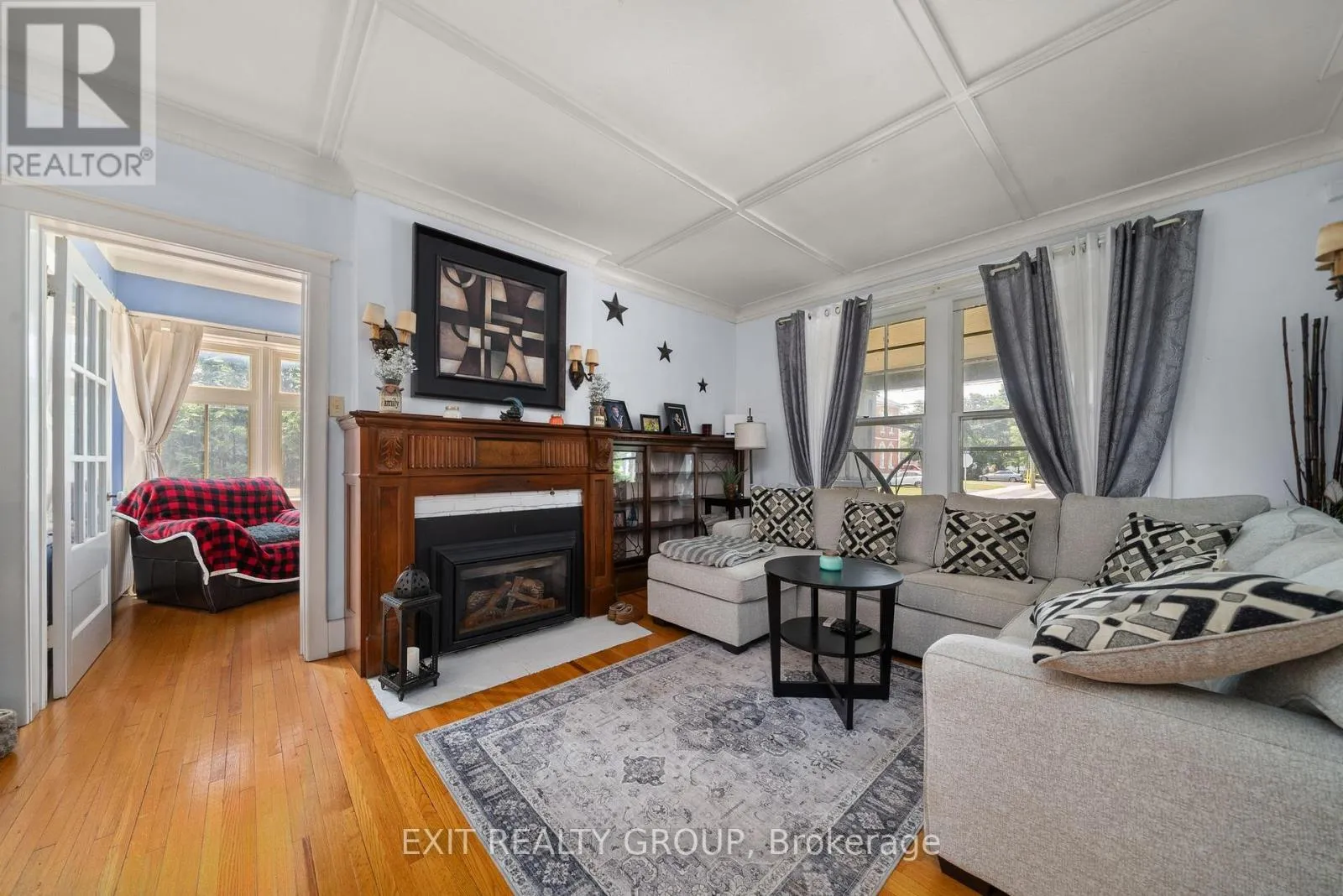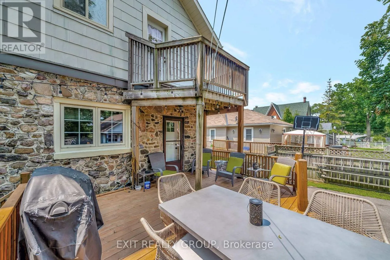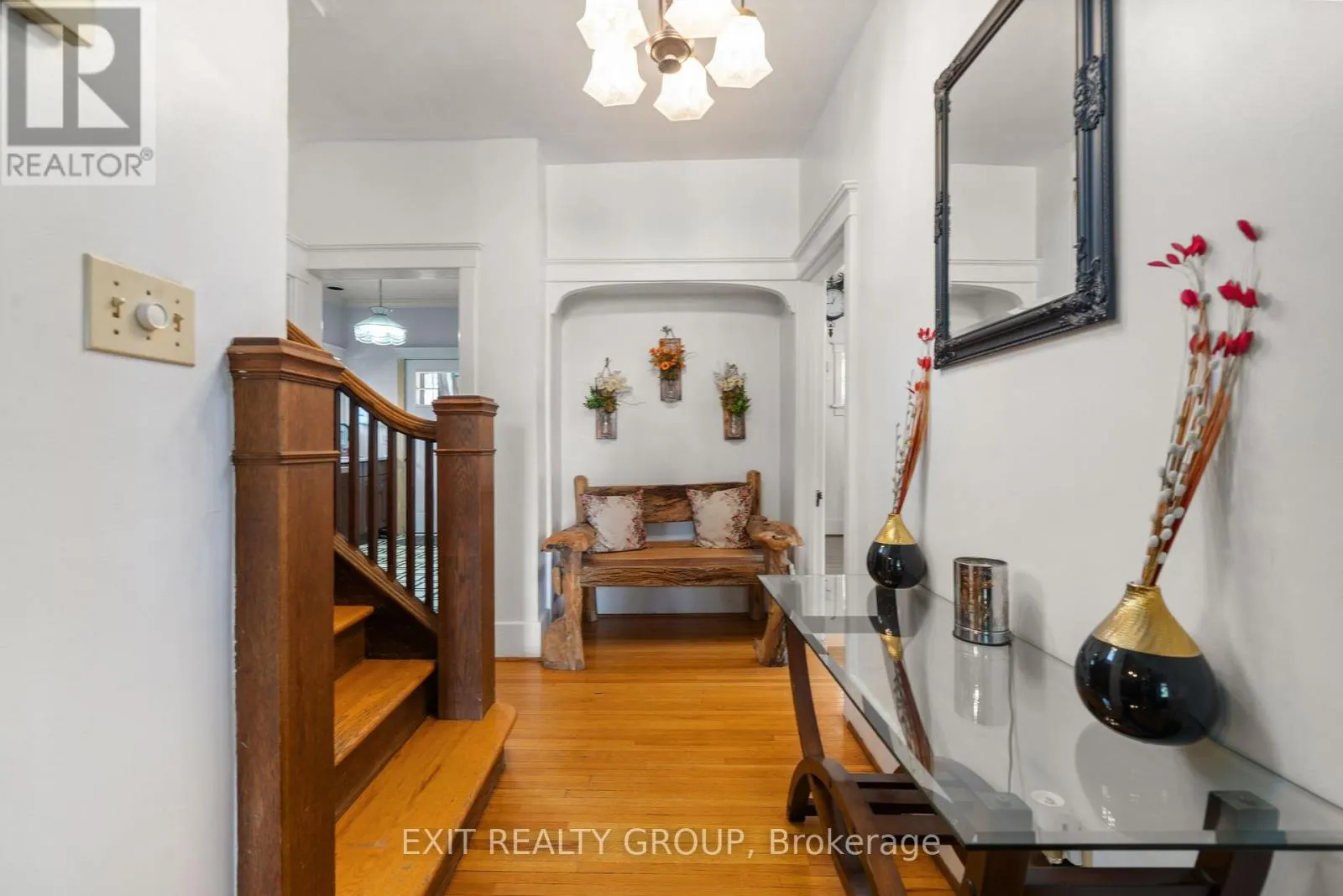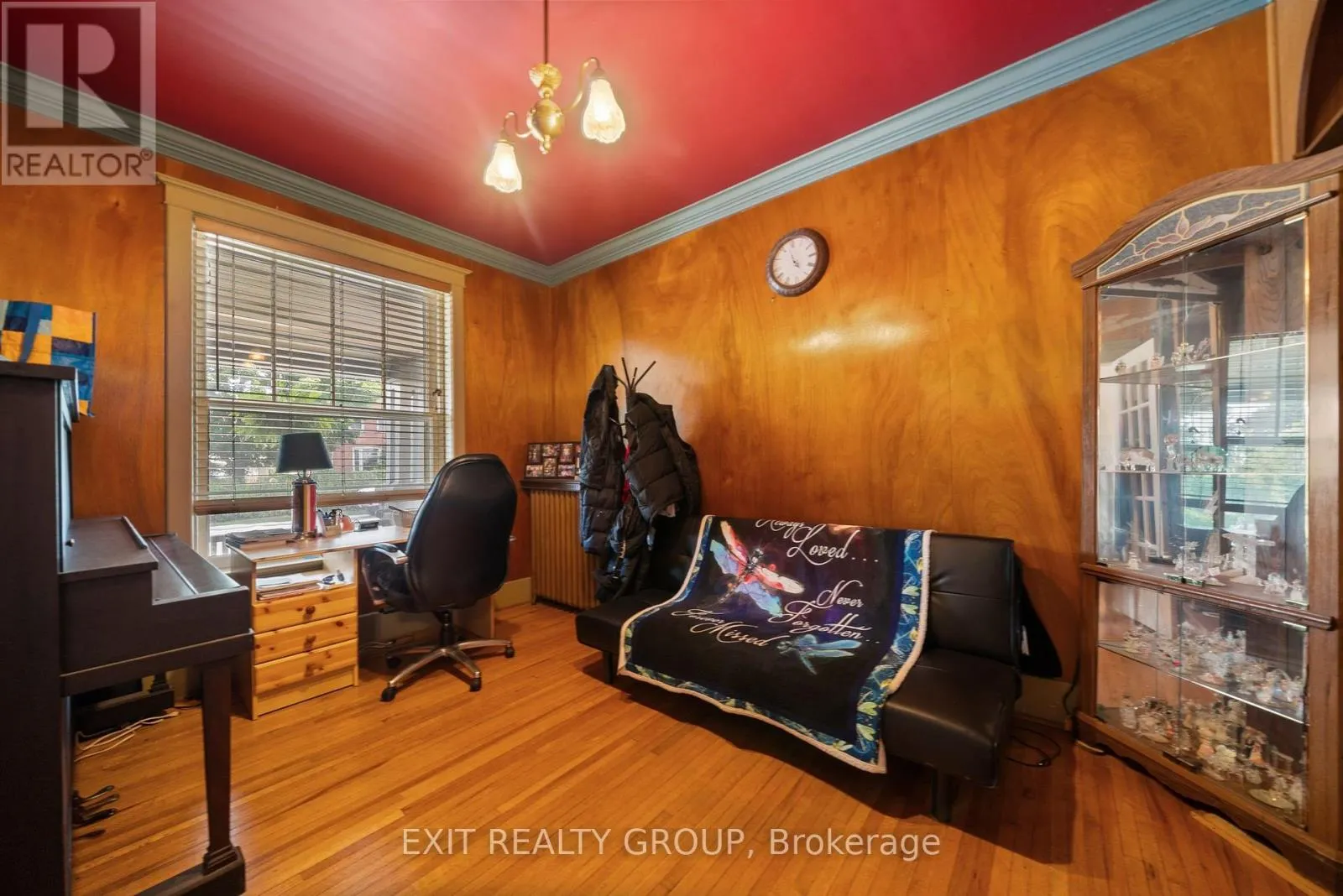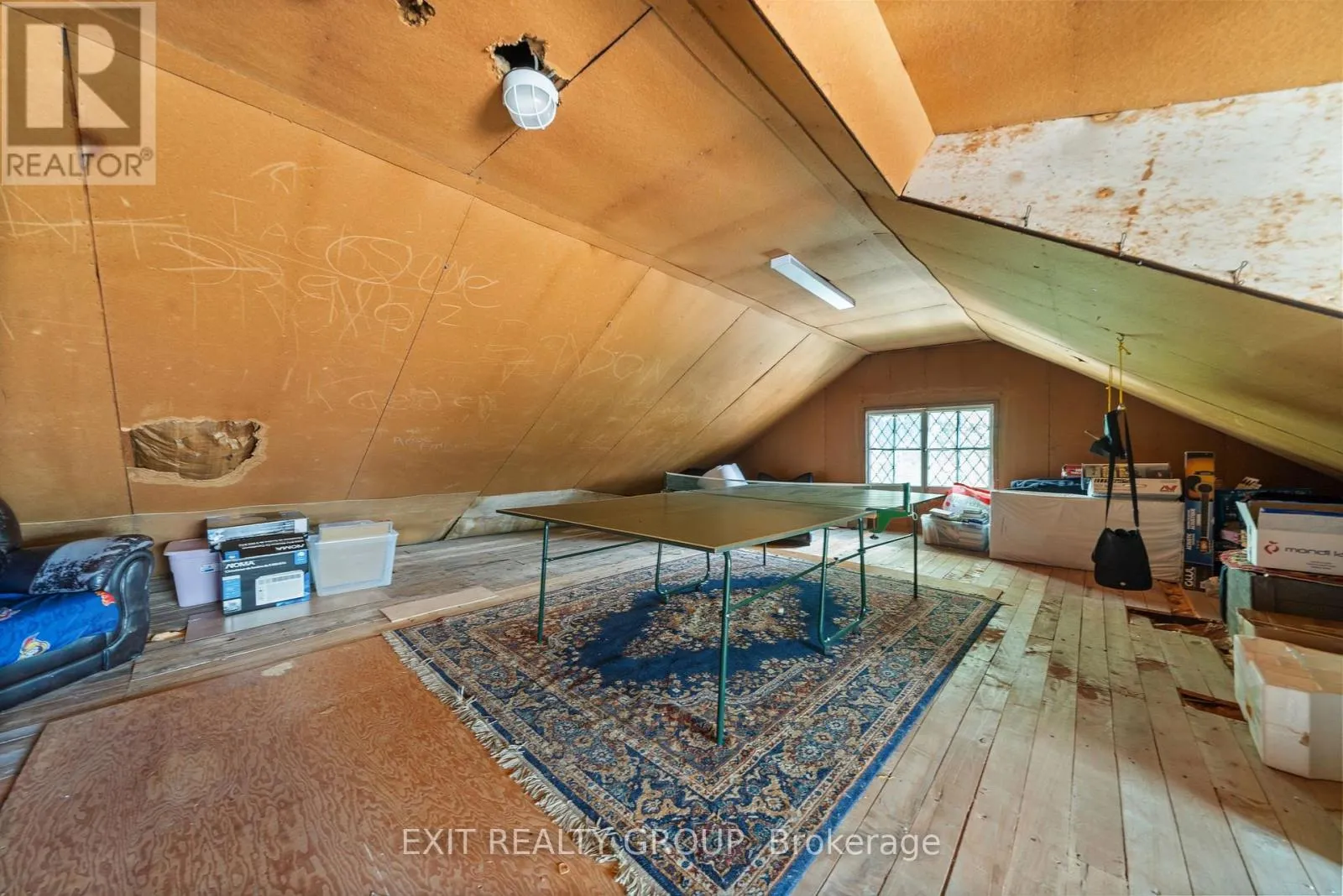 Cross Streets: Bridge St E and East St. ** Directions: Turn North off Bridge Street East to East Street to 219 on right. Welcome to this captivating 1920's 2-storey, 5 bed 1 bath with potential for 2, with carriage house, brimming with vintage elegance and modern updates, ideally located on a large town lot backing onto the County Courthouse and Museum. Step onto the inviting covered porch and into a spacious foyer that sets the stage for this stunning property. Inside, original hardwood floors, wood beam ceilings, and classic cast iron radiators exude historic charm, while thoughtful updates provide comfort and style. The U-shaped kitchen boasts abundant storage, upgraded appliances, and direct access to a generous back deck - perfect for entertaining. A formal dining room with large windows flows into a grand living room highlighted by oversized windows and a cozy fireplace. French doors open to a bright sunroom featuring wraparound windows and a 2nd fireplace, ideal for relaxing or enjoying morning coffee. A main-floor bedroom doubles as a perfect home office with custom built-ins. Upstairs, discover 4 spacious bedrooms, including a primary suite with a large closet and private sitting area with a potential wet bar. 2 additional bedrooms offer generous closets and light-filled spaces, while the 4th bedroom features its own private deck overlooking the backyard. A 4-piece bath completes this level. Ascend to the third floor and enjoy extra living space in the converted attic, perfect for a kids hangout, studio, or hobby room. Outside, lounge on the expansive deck, or enjoy the fully fenced yard including a charming playhouse, fire pit, and plenty of room for kids and pets. A rare highlight is the separate carriage house/garage with vaulted ceilings and an original turntable floor - a unique nod to the home's historic past plus a single carport for added convenience. This extraordinary property is more than a home - it's a lifestyle. (id:27476)