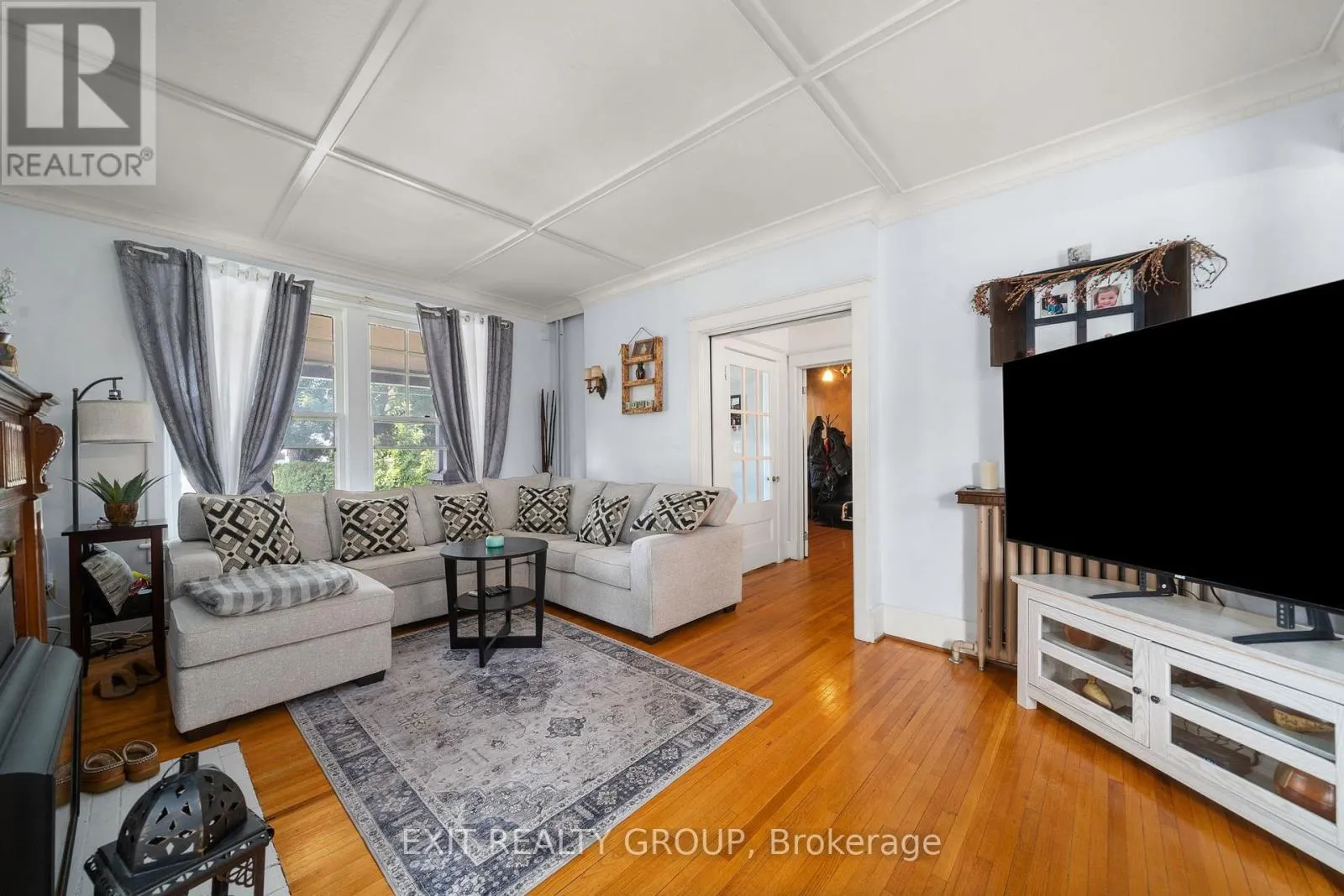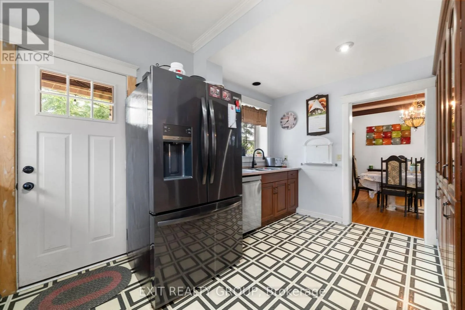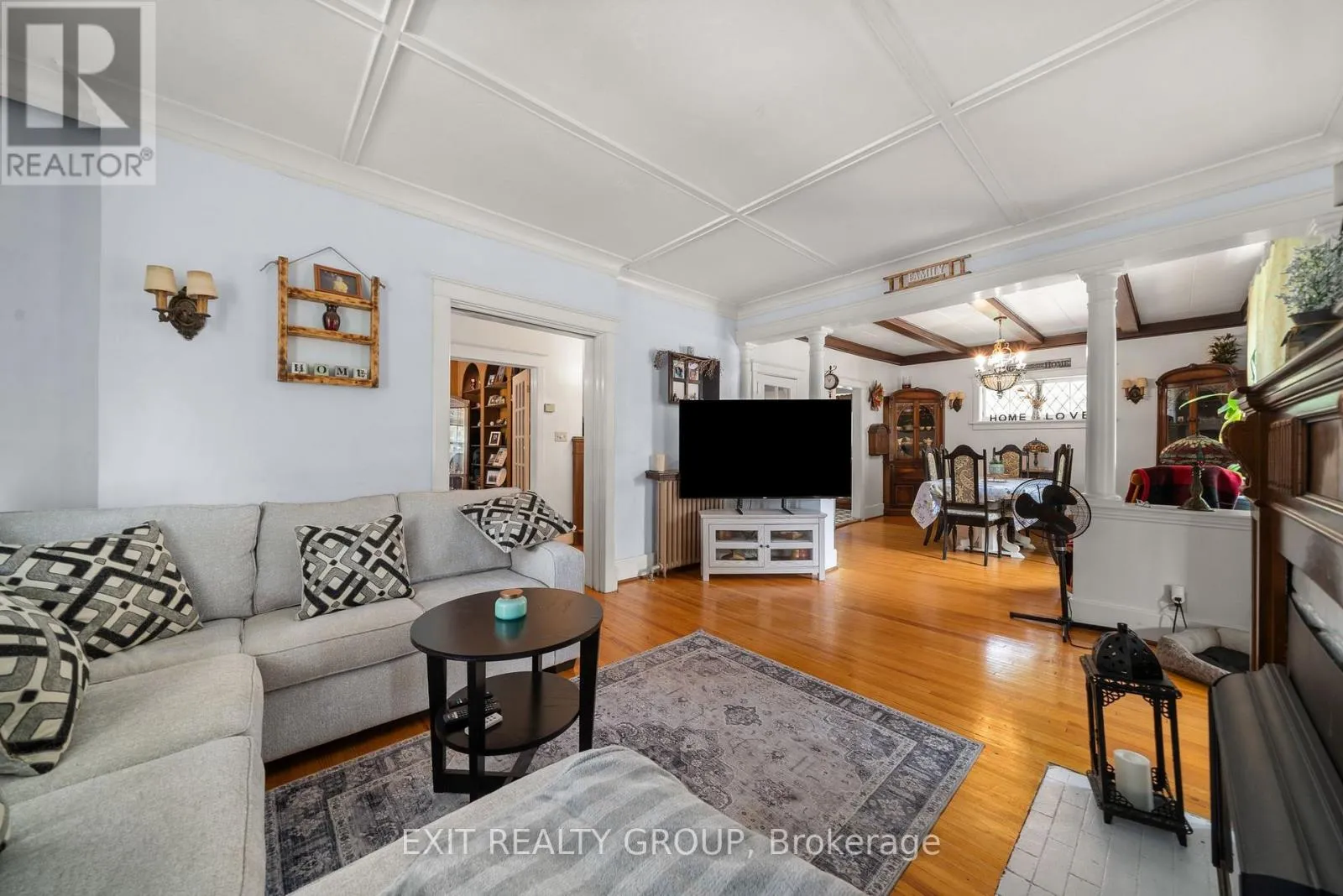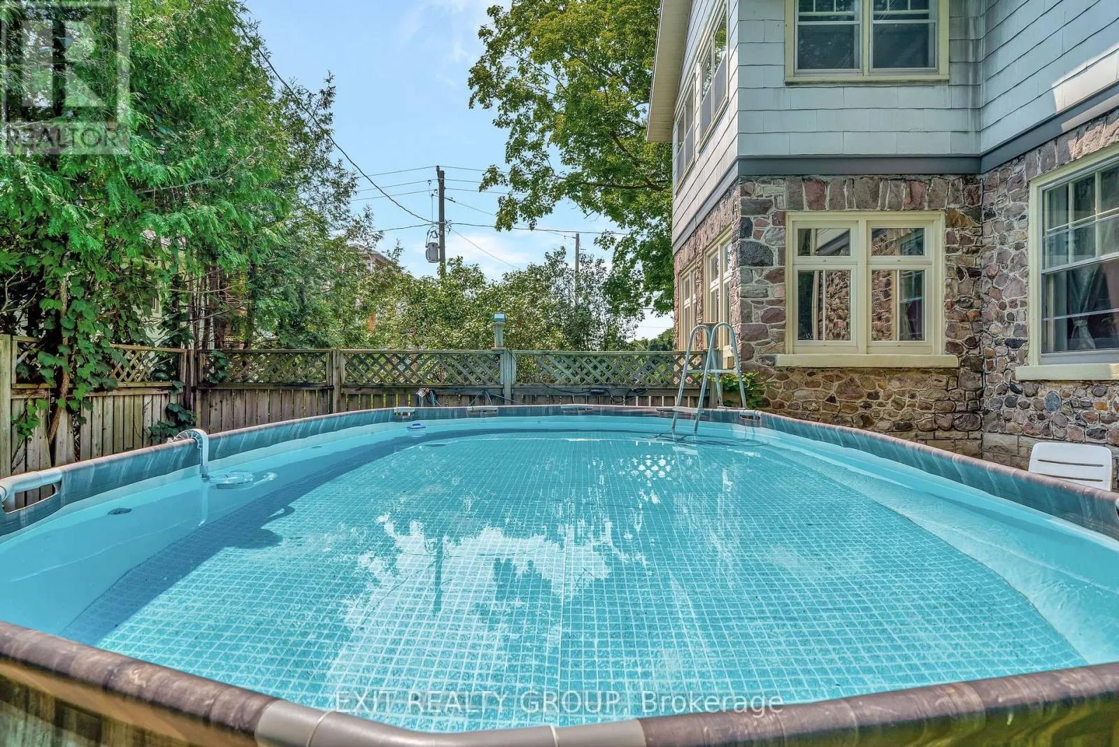 Cross Streets: Bridge St E and East St. ** Directions: Turn North off Bridge Street East to East Street to 219 on right. Welcome to this captivating 1920's 2-storey, 5 bed 1 bath with potential for 2, with carriage house, brimming with vintage elegance and modern updates, ideally located on a large town lot backing onto the County Courthouse and Museum. Step onto the inviting covered porch and into a spacious foyer that sets the stage for this stunning property. Inside, original hardwood floors, wood beam ceilings, and classic cast iron radiators exude historic charm, while thoughtful updates provide comfort and style. The U-shaped kitchen boasts abundant storage, upgraded appliances, and direct access to a generous back deck - perfect for entertaining. A formal dining room with large windows flows into a grand living room highlighted by oversized windows and a cozy fireplace. French doors open to a bright sunroom featuring wraparound windows and a 2nd fireplace, ideal for relaxing or enjoying morning coffee. A main-floor bedroom doubles as a perfect home office with custom built-ins. Upstairs, discover 4 spacious bedrooms, including a primary suite with a large closet and private sitting area with a potential wet bar. 2 additional bedrooms offer generous closets and light-filled spaces, while the 4th bedroom features its own private deck overlooking the backyard. A 4-piece bath completes this level. Ascend to the third floor and enjoy extra living space in the converted attic, perfect for a kids hangout, studio, or hobby room. Outside, lounge on the expansive deck, or enjoy the fully fenced yard including a charming playhouse, fire pit, and plenty of room for kids and pets. A rare highlight is the separate carriage house/garage with vaulted ceilings and an original turntable floor - a unique nod to the home's historic past plus a single carport for added convenience. This extraordinary property is more than a home - it's a lifestyle. (id:27476)