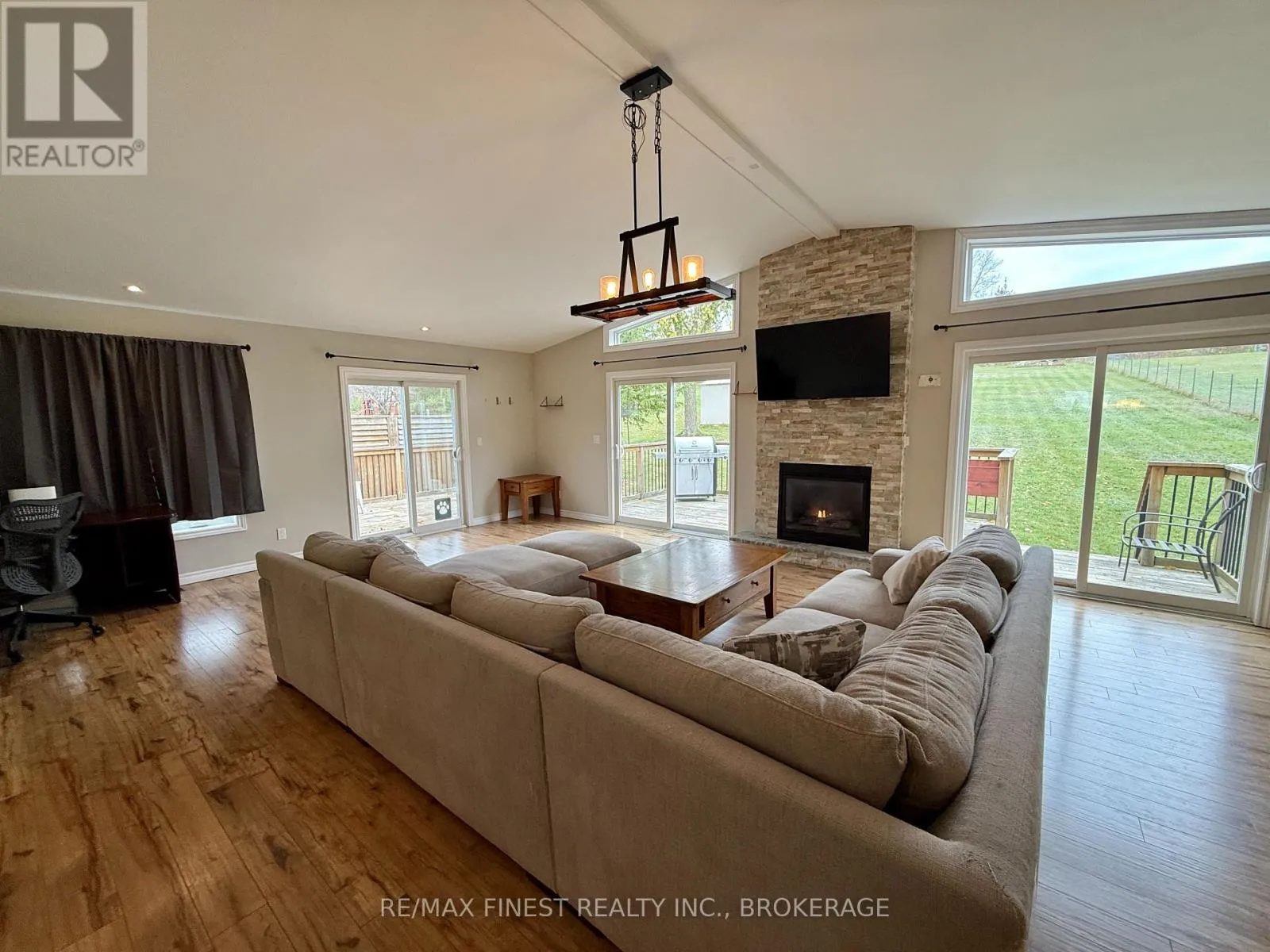 Cross Streets: County Rd 18. ** Directions: Take exit 582 for County Road 5 toward Palace Rd, right onto Palace Rd. This beautiful 3 bedroom 2 full bathroom home with IN-LAW SUITE POTENTIAL, Heated Garage and over 2500 SQ' of finished living space is set on a gorgeous 1 acre lot with super fast access into Napanee and Kingston just one minute from the 401 and features an incredible open design on the main level with hardwood floors, tons of natural light, a large living room, dining room, and a massive Great Room addition at the back with with vaulted ceilings, gas fireplace and 3 patio doors to loads of South Facing, sunny deck space, 2 bedrooms on the main level, plus a massive 3rd bedroom on the lower level with its own gas fireplace, laundry, another full-size bathroom and large rec room with room for more bedrooms and a second kitchen if desired! Don't Miss Out!! NEW ROOF 2022. (id:27476)