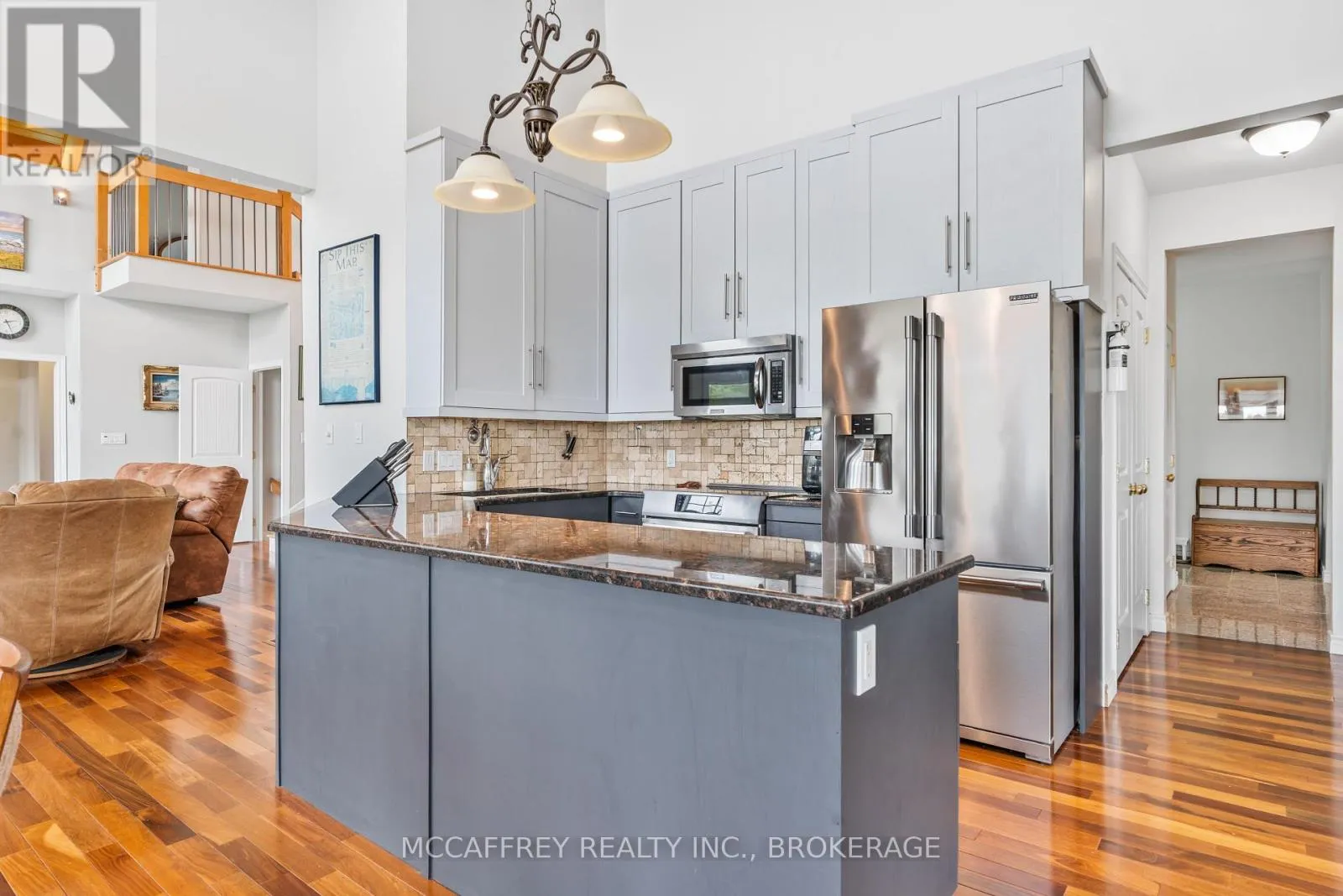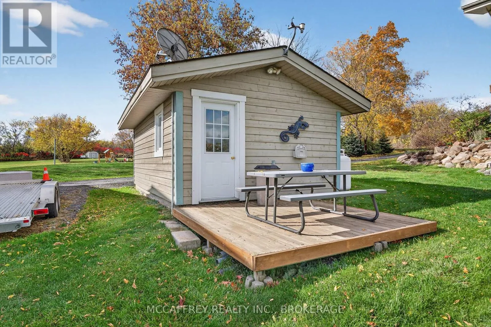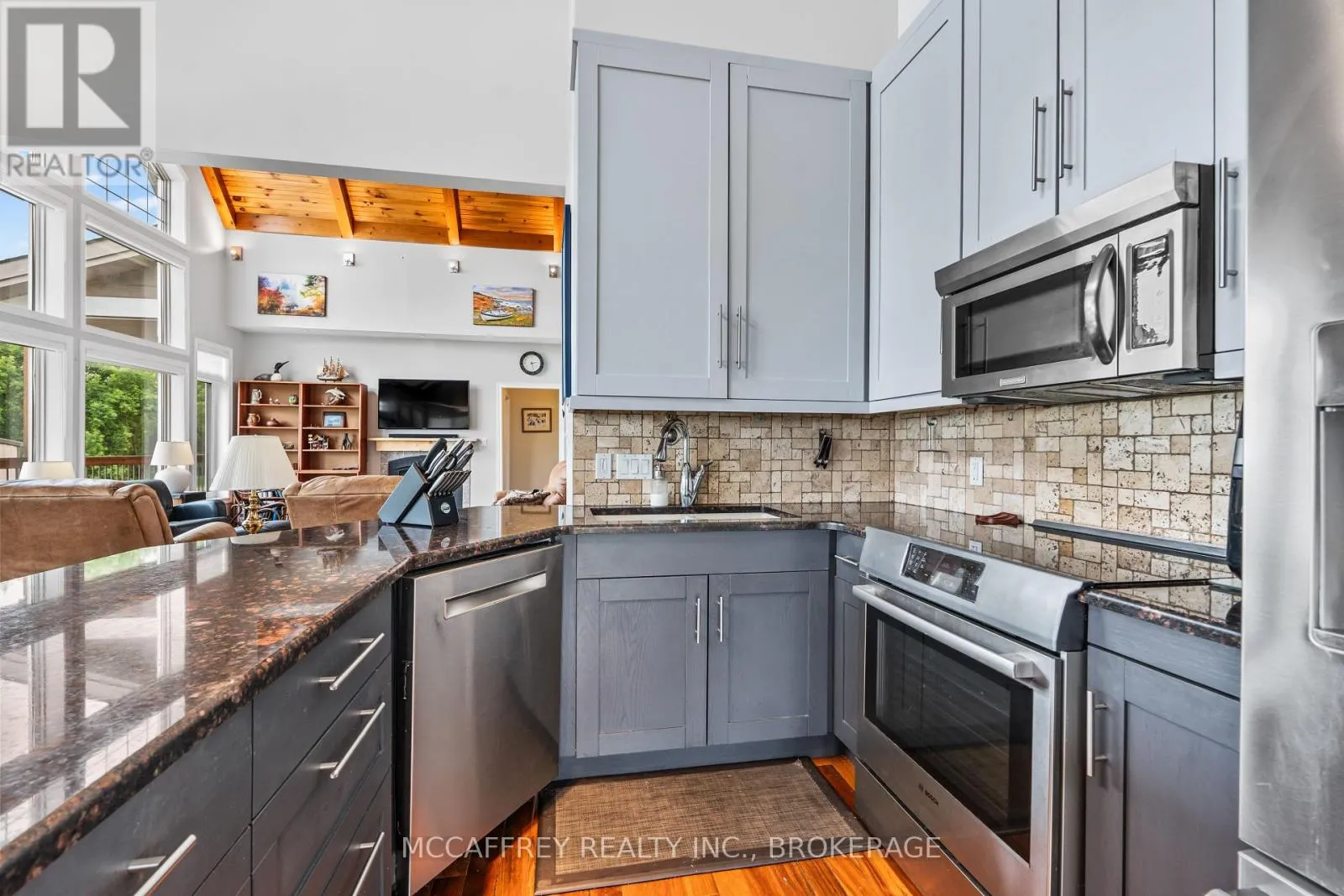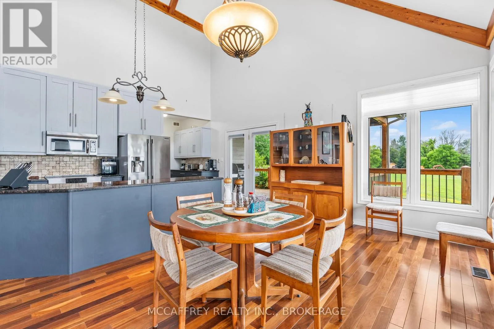 Cross Streets: County Rd 8/County Rd 9. ** Directions: Take County rd 8 south from Napanee, then turn right onto County Rd 9. Welcome to your dream home on the shores of Hay Bay! This custom-built two-story masterpiece, constructed in 2012, blends luxury, comfort, and scenic beauty. Set on a 1.72-acre lot with 202 ft of waterfront, it offers unparalleled living. As you arrive, a double wide paved driveway leads to an attached 2-car garage and a distinctive detached 40' x 58' garage, complete with hydro and oversized doors (12'x14' & 12'x12'), ideal for boats, RVs, or a workshop. Inside, the main level impresses with 28 ft high cathedral ceilings adorned with BC Fir wood beams. Expansive windows illuminate interiors and offer picturesque views of the landscaped backyard and sparkling waters. This level includes a cozy living room with a gas fireplace, an office/den, and a gourmet kitchen with granite countertops, oak cabinetry, and a breakfast bar. The dining room and easy deck access enhance indoor-outdoor living, as well as entrances from the laundry room, and connections to the garage. Two spacious bedrooms, one with deck access, plus a 3 pc and a 4 pc bath, complete this level. Ascend the beautiful wooden staircase to discover the private sanctuary of the Primary suite. Here, you'll find a spacious bedroom complemented by two walk-in closets and a 4 pc ensuite, providing the ultimate retreat. The finished lower level enhances the home's entertainment and storage capabilities. The rec room features a wet bar, 2 pc bath, cold cellar, substantial storage room, and a utility room. Additionally, a semi-finished bedroom with walk-out offers flexibility for your needs. The outdoor space is nothing short of spectacular, with meticulously designed flower gardens and a 10'x24' floating dock invites you to embrace the waterfront lifestyle. Located just minutes from downtown Napanee, this home provides the perfect combination of convenient access to amenities and the privacy and tranquility of waterfront living. (id:27476)