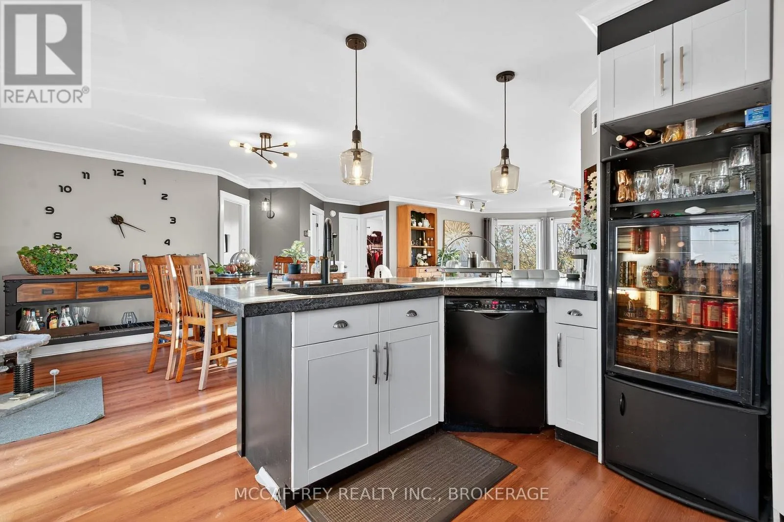 Cross Streets: Huron St/County Rd 1. ** Directions: From County Rd 1 turn onto Huron st, then stay right. Welcome to this one-of-a-kind, custom-designed home built with care by a Napanee couple, nestled in a welcoming subdivision perfect for peaceful living. Step into a bright, open-concept interior where generous windows and thoughtful design flood every space with natural light. The upper level features a delightful kitchen with a striking concrete countertop, recently enhanced by a granite section paired with a modern convection oven, plus newer refrigerator and dishwasher. Off the kitchen, step onto your private deck-ideal for enjoying morning sunshine with your coffee or for summer barbecues looking out over a large, landscaped lot with endless gardening potential. With two bedrooms upstairs and two more downstairs, there's space for everyone. The primary bedroom is conveniently located on the lower level next to a lovely reading nook, laundry, and a fully renovated three-piece bath. Elegant ceramic tiles with cozy in-floor heating run throughout the basement, offering year-round comfort. Recent upgrades provide added value and peace of mind, including a new steel roof, conversion from oil to efficient natural gas, a brand-new exterior well pump, and an advanced water softening system. You'll appreciate the central vacuum, cleverly equipped with a hidden floor dustpan, and the totally updated upper bathroom featuring a granite countertop and skylight. The extra-large garage includes a versatile loft with its own entrance and parking. Imagine a guest suite, home office, or Airbnb rental! Outside, enjoy a friendly neighborhood with a park, hockey rink, soccer field, and nearby river for canoes, kayaks or sit by the water to read. All within easy reach of Highway 401, halfway between Belleville and Kingston. Experience the charm, function, and opportunity of this truly special Napanee home. (id:27476)
