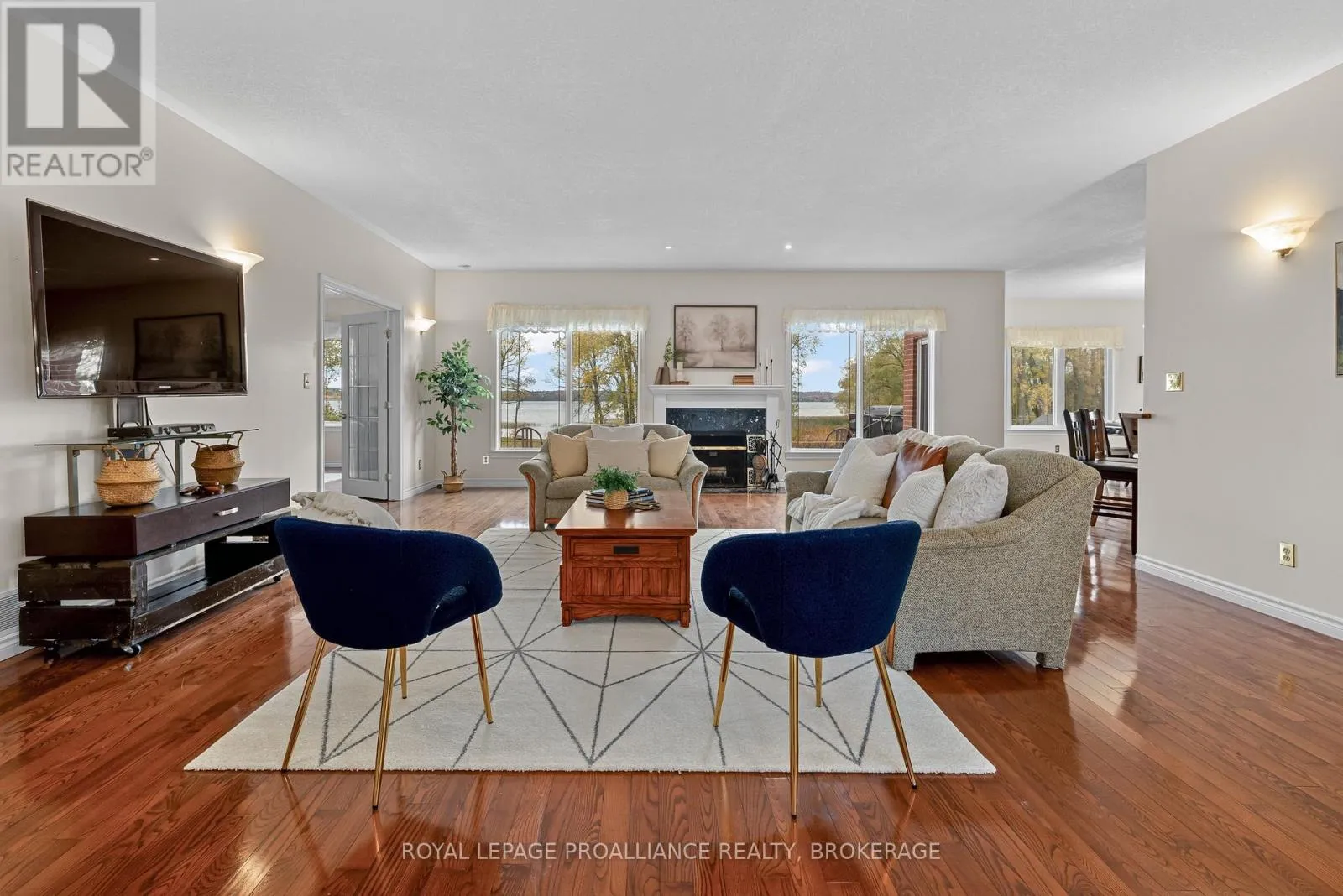Cross Streets: Applewood Cove. ** Directions: Loyalist Parkway (hwy 33) to Bayshore, to Applewood Cove, to Schenk, last home on the left. Set on a double lot at the end of a quiet cul-de-sac, this all-brick bungalow offers an exceptional blend of privacy, space, and natural beauty. With over 2.8 acres of level land and more than 300 feet of natural waterfront, this executive property is part of a sought-after community of custom homes-just a short commute to Napanee or Bath, or take the ferry to Picton and explore all that Prince Edward County has to offer. Offering over 4,000 square feet of finished living space, the home features an open-concept main floor with a bright and spacious living, dining, and kitchen area-perfect for entertaining or simply taking in the views. The main level offers three generous bedrooms, including a primary suite with French doors, a massive walk-in closet, and a large ensuite bathroom. The finished lower level extends the living space with a walkout to the waterfront, a third full bathroom, multiple flexible rooms, and in-floor heating throughout. Updated mechanicals include a new furnace, boiler, and well equipment for added comfort and efficiency. An extra-deep double attached garage provides plenty of room for vehicles, storage, or a workshop. With its serene setting,impressive frontage, and beautifully maintained home, this property offers a rare opportunity to enjoy waterfront living in a truly private and picturesque location. (id:27476)