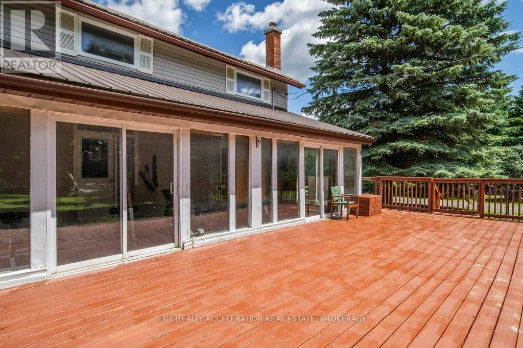 Cross Streets: Switzerville Rd. ** Directions: HIGHWAY #2 EAST OF NAPANEE. Nestled on one end of a 53-acre lot, this 2,031 sq ft home offers a perfect blend of tranquility and modern living. This charming 2-storey, 4-bedroom, 2-bathroom home invites you to experience the beauty of country living while enjoying all the comforts we know and love. As you step into this inviting abode, you're greeted by a spacious and thoughtfully laid-out floor plan. The heart of the home is adorned with a well-appointed kitchen and a comfortable living room, creating an ideal space for both family gatherings and entertaining friends. Adding to the allure of the interior is a strategically placed bathroom on each level, ensuring convenience for all residents. Sun-soaked and inviting, the sunroom opens to a large wooden deck - a perfect spot for soaking in the sunshine or hosting summer get-togethers. The property is further enhanced by two barns, with the green barn spanning an impressive 60 feet x 120 feet. This versatile structure offers ample space for storage or the potential for indoor horse riding, catering to a variety of interests and needs. Outside, the land tells its own story. With 20 acres of workable land, possibilities abound for agricultural endeavors or landscaping ventures. The remaining 33 acres is bush, creating a natural boundary that enhances both privacy and the overall appeal of this countryside haven. This property is not just a residence; it's an opportunity to embrace a lifestyle surrounded by nature's beauty. Whether you're seeking a peaceful retreat or envisioning a space for equestrian pursuits, this estate beckons you to make it your own. Come and explore the endless possibilities that await in this home a place where comfort, style, and the great outdoors seamlessly converge. (id:27476)
