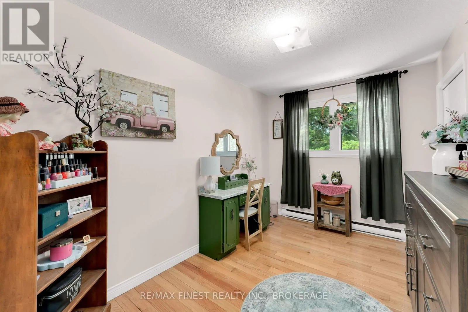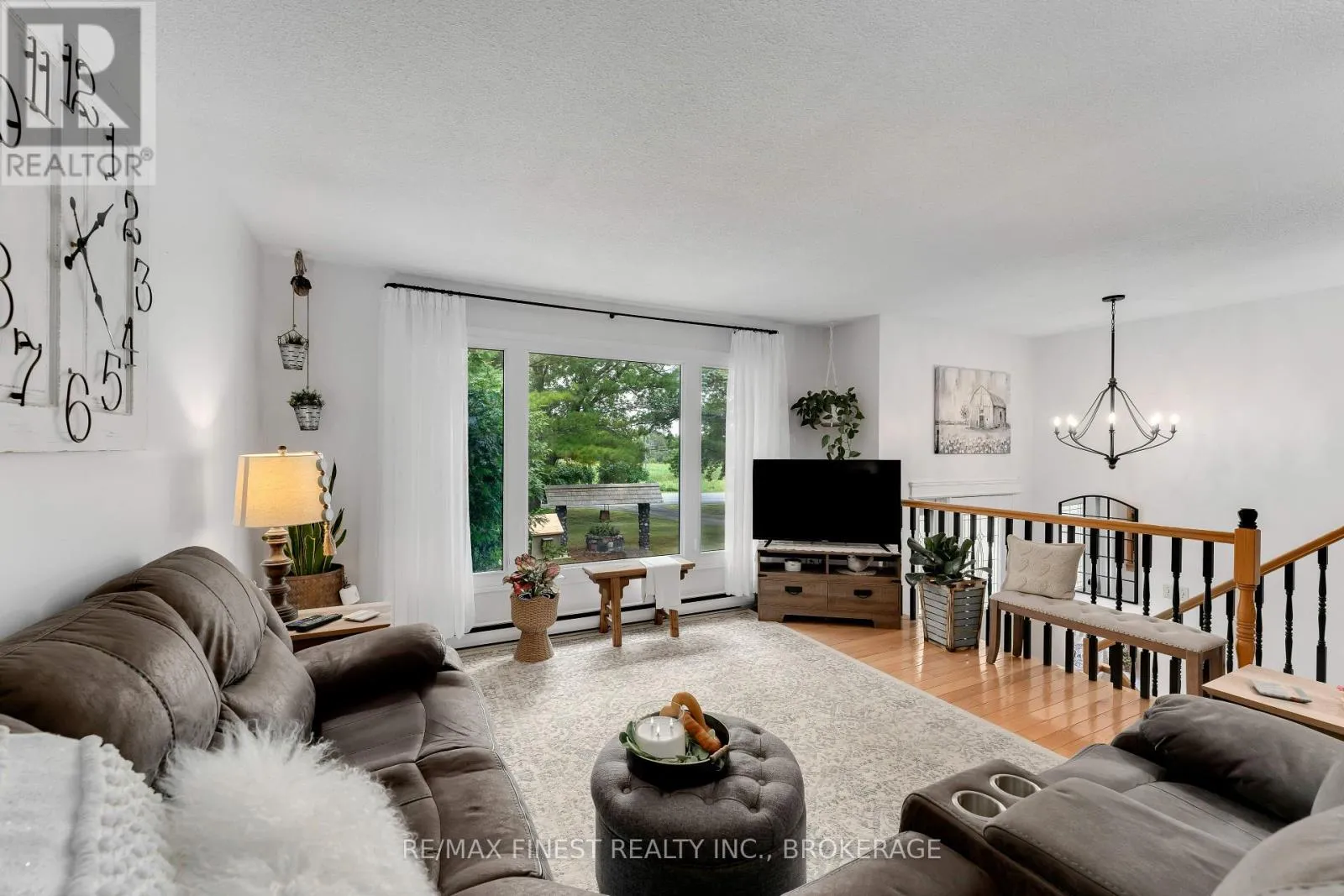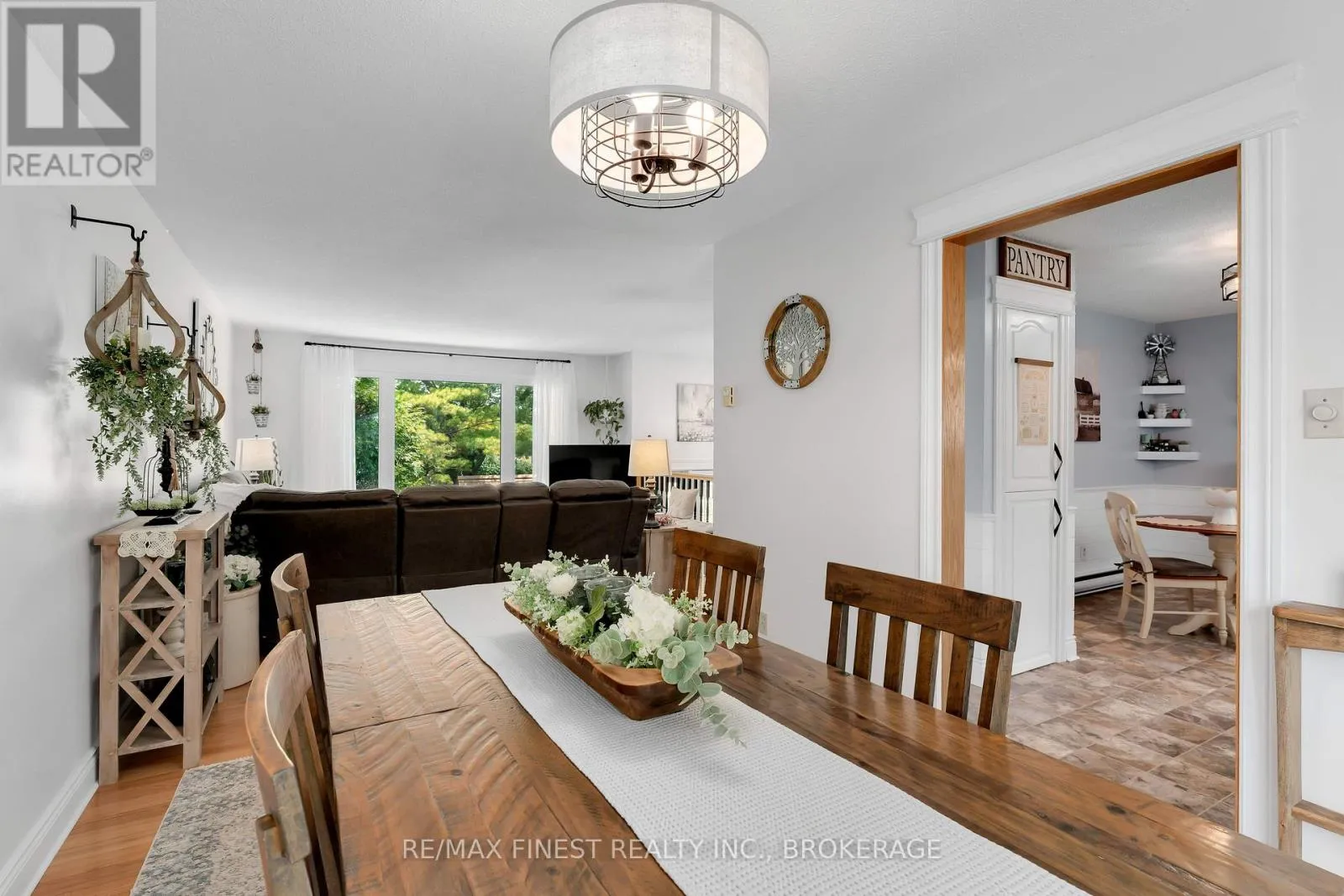Cross Streets: Hambly Road. ** Directions: Centre St to River Road, River Road turns into County Road 9. Discover the best of both worlds with this charming 3+1 bedroom, 1 Full Bath home, offering 1,200 +/- sq ft of comfortable living space on just under an acre. Enjoy the tranquility of country living while being only a short 7-minute drive to town. Step inside to warm hardwood floors and an updated kitchen that flows into the dining area, where patio doors lead out to a spacious deck overlooking your peaceful, tree-lined backyard, an ideal spot for relaxing or entertaining. The home features a generous rec room in the basement, perfect for a family space, home office, or gym. You'll also find a large storage/laundry room downstairs, offering plenty of functionality and organization options. An attached 1.5-car insulated garage includes inside entry and a convenient walk-up from the basement, adding both comfort and practicality to your everyday living. (id:27476)