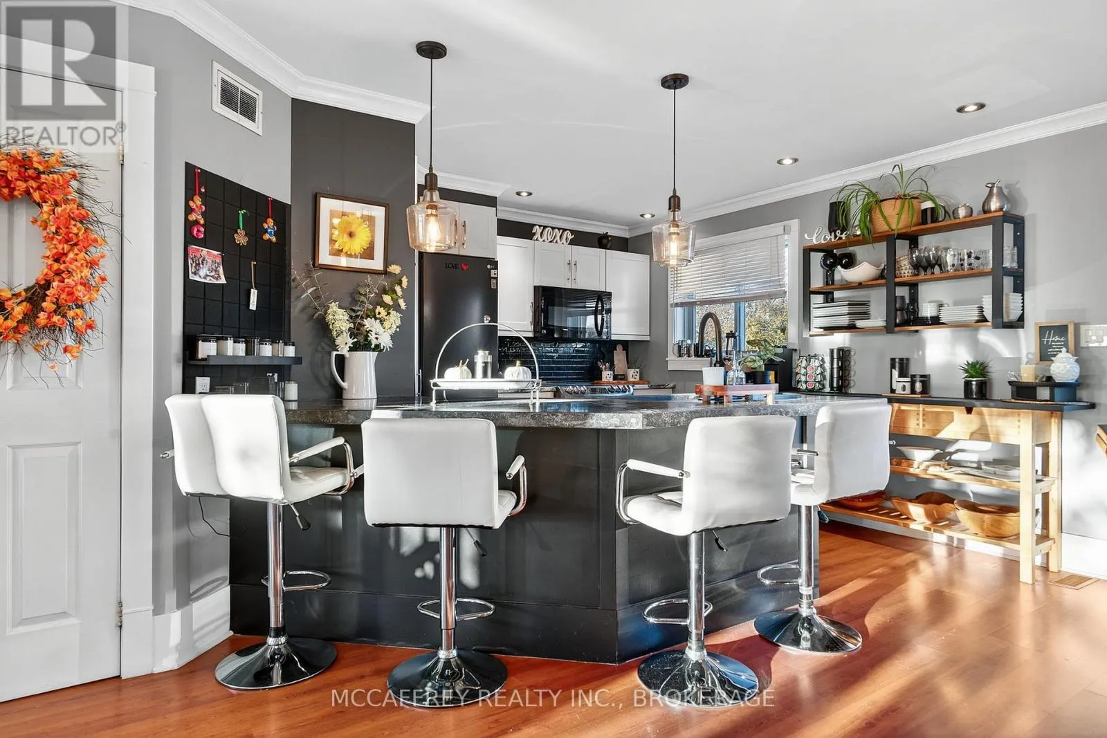 Cross Streets: Huron St/County Rd 1. ** Directions: From County Rd 1 turn onto Huron st, then stay right. Welcome to this one-of-a-kind, custom-designed home built with care by a Napanee couple, nestled in a welcoming subdivision perfect for peaceful living. Step into a bright, open-concept interior where generous windows and thoughtful design flood every space with natural light. The upper level features a delightful kitchen with a striking concrete countertop, recently enhanced by a granite section paired with a modern convection oven, plus newer refrigerator and dishwasher. Off the kitchen, step onto your private deck-ideal for enjoying morning sunshine with your coffee or for summer barbecues looking out over a large, landscaped lot with endless gardening potential. With two bedrooms upstairs and two more downstairs, there's space for everyone. The primary bedroom is conveniently located on the lower level next to a lovely reading nook, laundry, and a fully renovated three-piece bath. Elegant ceramic tiles with cozy in-floor heating run throughout the basement, offering year-round comfort. Recent upgrades provide added value and peace of mind, including a new steel roof, conversion from oil to efficient natural gas, a brand-new exterior well pump, and an advanced water softening system. You'll appreciate the central vacuum, cleverly equipped with a hidden floor dustpan, and the totally updated upper bathroom featuring a granite countertop and skylight. The extra-large garage includes a versatile loft with its own entrance and parking. Imagine a guest suite, home office, or Airbnb rental! Outside, enjoy a friendly neighborhood with a park, hockey rink, soccer field, and nearby river for canoes, kayaks or sit by the water to read. All within easy reach of Highway 401, halfway between Belleville and Kingston. Experience the charm, function, and opportunity of this truly special Napanee home. (id:27476)