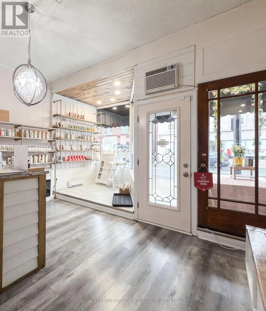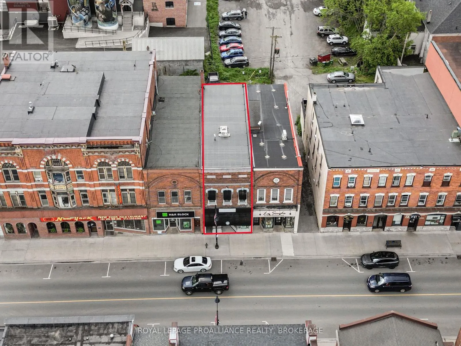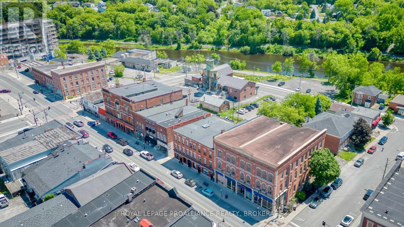 Cross Streets: Dundas Street East (#48) between East Street and John Street. ** Directions: Highway #2 turns into Dundas Street in Napanee - #48 Dundas Street East. Prime Mixed Use Investment - 48 Dundas Street East, Downtown Napanee A strong mixed use income property in the heart of Napanee's revitalized downtown, featuring 2 residential units, 1 commercial unit, and 2 storage units. All spaces are fully leased, generating a current gross income of $55,647/year, with upside to $61,047/year once the 900 sq. ft. storage unit is leased. The commercial tenant is secured until August 2027, providing stable long term cash flow. The main floor commercial space offers 1,300 sq. ft., quality finishes, two bathrooms, dedicated laundry, a new furnace, and a rubber membrane roof installed in 2020. Upstairs are two well designed apartments: a bright modern studio with a heat pump, and a spacious one bedroom with open concept living and a private balcony. Shared laundry is located in the common hallway. Additional income includes one storage unit at $100/month and a second with potential for $450/month. With an NOI of $42,193 (or $47,593 with storage leased), this property delivers strong returns in a growing market. Located steps from the rapidly expanding Gibbards District, the property benefits from increasing population density and customer traffic. Financials are available upon request - a rare opportunity to secure a stable, diversified asset in a thriving downtown corridor. (id:27476)