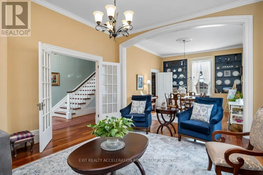 Cross Streets: Between Napier & Raglan St. ** Directions: County Rd 41 (Centre St), turn west on Dundas St West, Napanee. Welcome to your dream Victorian home in the heart of Napanee, Ontario! This exquisite 5-bedroom, 4-bathroom residence seamlessly blends the timeless elegance of the past with modern conveniences, offering a unique and enchanting living experience. Known as the "Hooper House" and constructed in 1864 during the infancy of Canada, you step into a world of charm as you enter this lovingly restored residence. Meticulous attention to detail is evident in every corner, from the intricate woodwork to the ornate period features that transport you to a bygone era. Immerse yourself in the warmth of hardwood floors, high ceilings, and the character-filled ambiance that defines this historic gem. The house sits on the original lot with large mature trees. A new high-efficiency boiler system provides a pleasant heat throughout the home - in floor heated bathrooms and bedrooms located upstairs (walls are 3 brick thick and are spray-foam insulated for low operating costs) as well as in floor heating in the mudroom. Some of the upgrades include: Upstairs efficiency suite with newly professionally installed kitchenette with new appliances, new screened in porch, new kitchen flooring, a new 2 piece bathroom on main level off kitchen (2023), 200 amp electric services with new wiring throughout the home, new second driveway/parking area. All plumbing has been replaced, there is a natural gas powered fully managed 24KW standby generator (2020), steel roof with lifetime warranty (2000), windows have been replaced to match original windows, chimneys rebuilt to match original chimneys. (id:27476)
