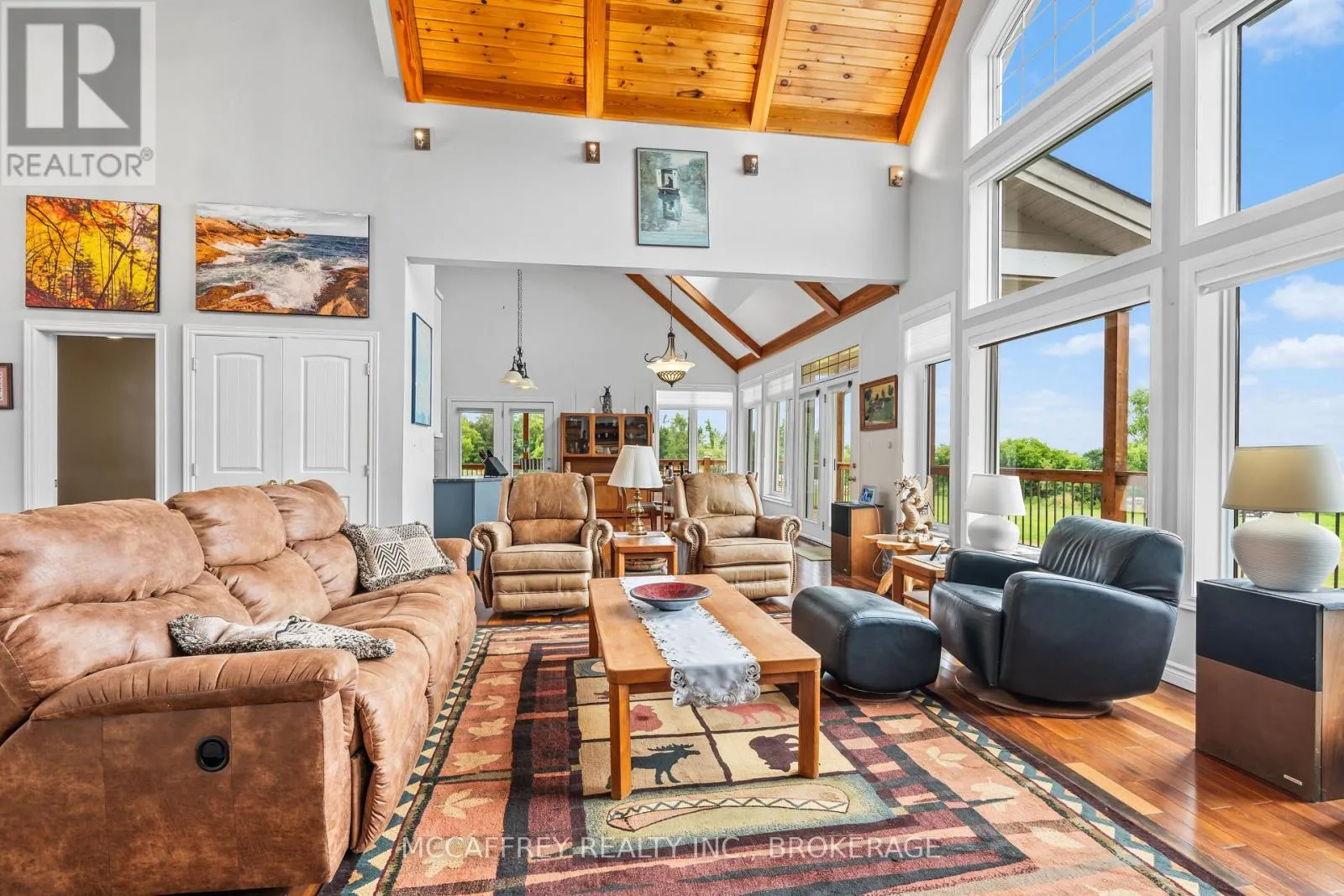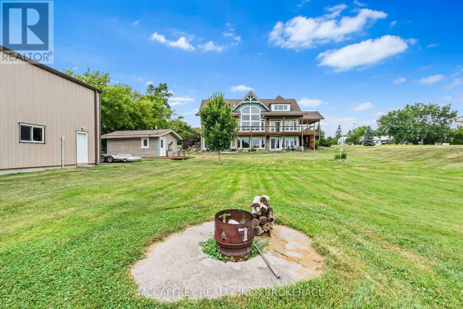 Cross Streets: County Rd 8/County Rd 9. ** Directions: Take County rd 8 south from Napanee, then turn right onto County Rd 9. Welcome to your dream home on the shores of Hay Bay! This custom-built two-story masterpiece, constructed in 2012, blends luxury, comfort, and scenic beauty. Set on a 1.72-acre lot with 202 ft of waterfront, it offers unparalleled living. As you arrive, a double wide paved driveway leads to an attached 2-car garage and a distinctive detached 40' x 58' garage, complete with hydro and oversized doors (12'x14' & 12'x12'), ideal for boats, RVs, or a workshop. Inside, the main level impresses with 28 ft high cathedral ceilings adorned with BC Fir wood beams. Expansive windows illuminate interiors and offer picturesque views of the landscaped backyard and sparkling waters. This level includes a cozy living room with a gas fireplace, an office/den, and a gourmet kitchen with granite countertops, oak cabinetry, and a breakfast bar. The dining room and easy deck access enhance indoor-outdoor living, as well as entrances from the laundry room, and connections to the garage. Two spacious bedrooms, one with deck access, plus a 3 pc and a 4 pc bath, complete this level. Ascend the beautiful wooden staircase to discover the private sanctuary of the Primary suite. Here, you'll find a spacious bedroom complemented by two walk-in closets and a 4 pc ensuite, providing the ultimate retreat. The finished lower level enhances the home's entertainment and storage capabilities. The rec room features a wet bar, 2 pc bath, cold cellar, substantial storage room, and a utility room. Additionally, a semi-finished bedroom with walk-out offers flexibility for your needs. The outdoor space is nothing short of spectacular, with meticulously designed flower gardens and a 10'x24' floating dock invites you to embrace the waterfront lifestyle. Located just minutes from downtown Napanee, this home provides the perfect combination of convenient access to amenities and the privacy and tranquility of waterfront living. (id:27476)