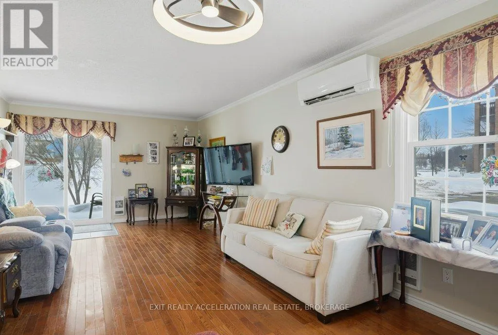 Cross Streets: Palace Rd or Pearl St. ** Directions: Centre St S, south of the Napanee River. Welcome to Vyas Villa, one of Napanee's most sought-after condominium communities. This well-maintained 2 bedroom, 2 bathroom main-level apartment offers comfortable, low-maintenance living just steps from the scenic banks of the Napanee River. Bright and inviting, the unit features north and west-facing windows that fill the space with natural light throughout the day. The thoughtful layout includes a spacious primary bedroom complete with a private 3-piece ensuite, while the second bedroom provides flexibility for guests, a home office, or additional family space. In-suite laundry adds everyday convenience. Enjoy the ease of main-floor living with direct access to your own walk-out terrace-perfect for morning coffee or unwinding in the evening. The location is ideal, within walking distance to downtown shopping, restaurants, the library, and the splash pad, and only a short drive to the Napanee Golf & Country Club. Whether you're looking to downsize, invest, or enjoy a relaxed lifestyle in a prime location, this lovely condo at Vyas Villa is ready to welcome you home. (id:27476)