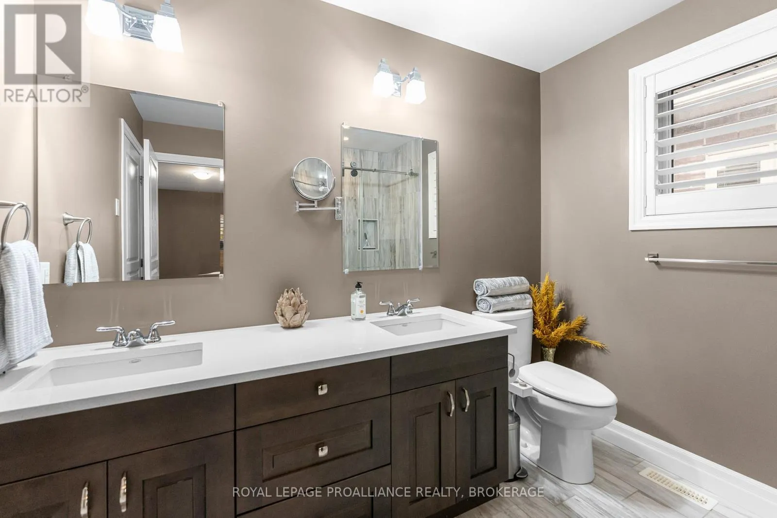 Cross Streets: Bridge St Napanee/Cherrywood Parkway. ** Directions: Bridge St Napanee to Cherrywood Parkway to Hartwood Crescent. Welcome to 89 Hartwood Crescent, a solid, 2014 built brick bungalow in the sought-after Staikos subdivision-known for its quiet, family-friendly streets and quality homes. This home offers 4 large bedrooms and 3 full bathrooms, with a bright, open-concept layout designed for both everyday living and entertaining. High-quality finishes are evident throughout, including quartz countertops and a clean, modern aesthetic that feels both comfortable and refined. The main living space is spacious and filled with natural light, creating a warm and inviting atmosphere from the moment you step inside. The fully finished walk-out basement adds exceptional versatility-ideal for a growing family, guests, additional living space, or as an in-law suite. Backing onto a ravine, you'll enjoy privacy with no direct rear neighbours and a peaceful combination that's hard to find. A $5000 decorating bonus will be payable to the buyer on close. Act quickly-opportunities like this won't last, make this home yours! (id:27476)